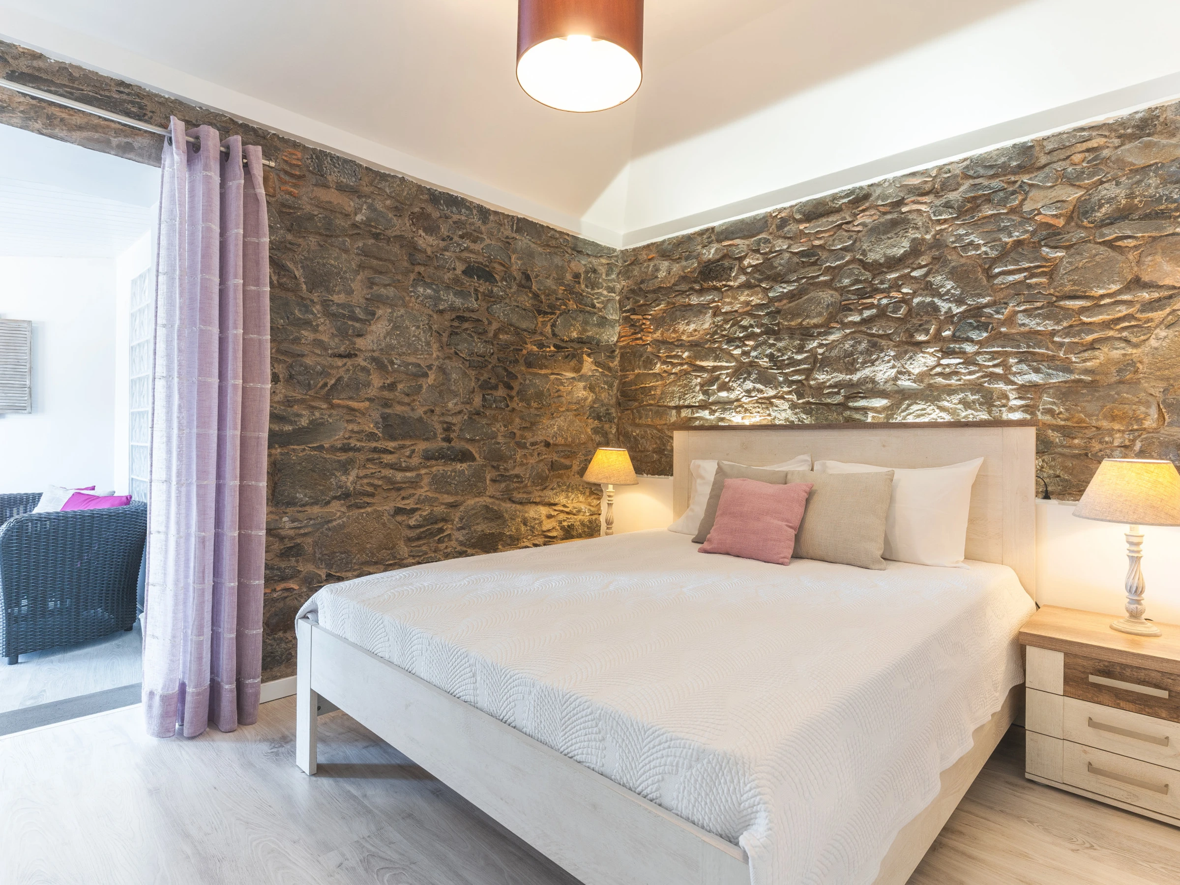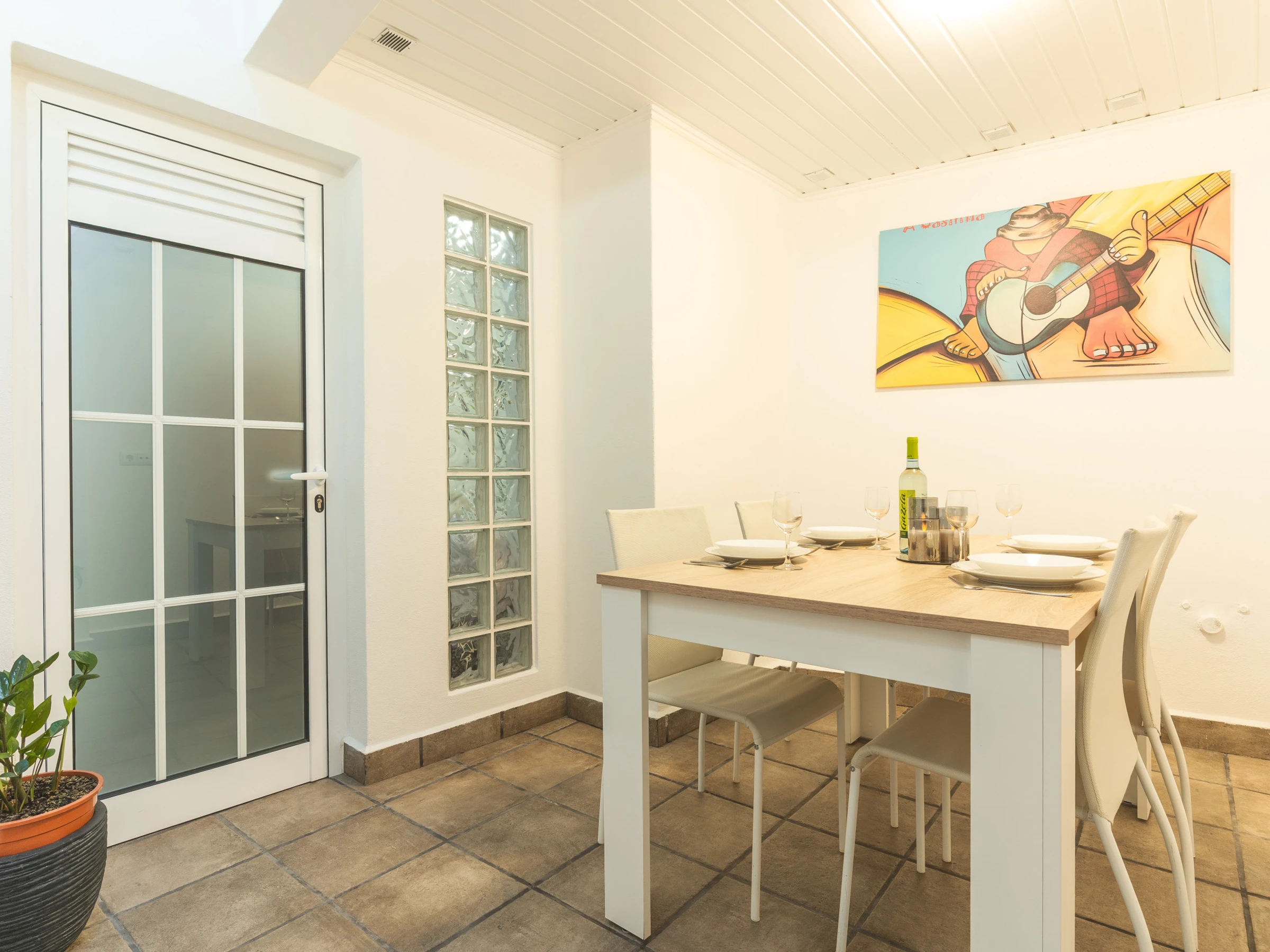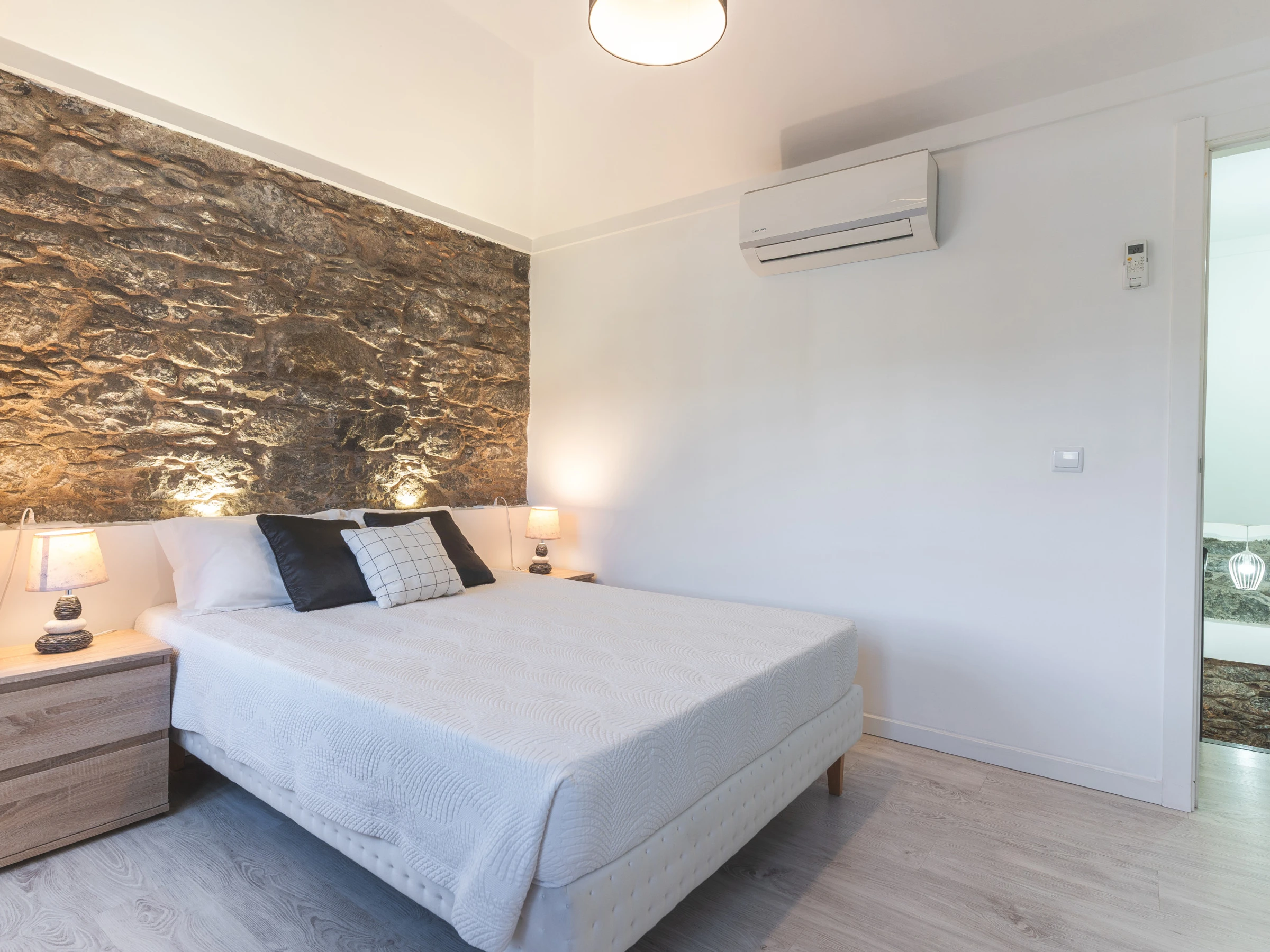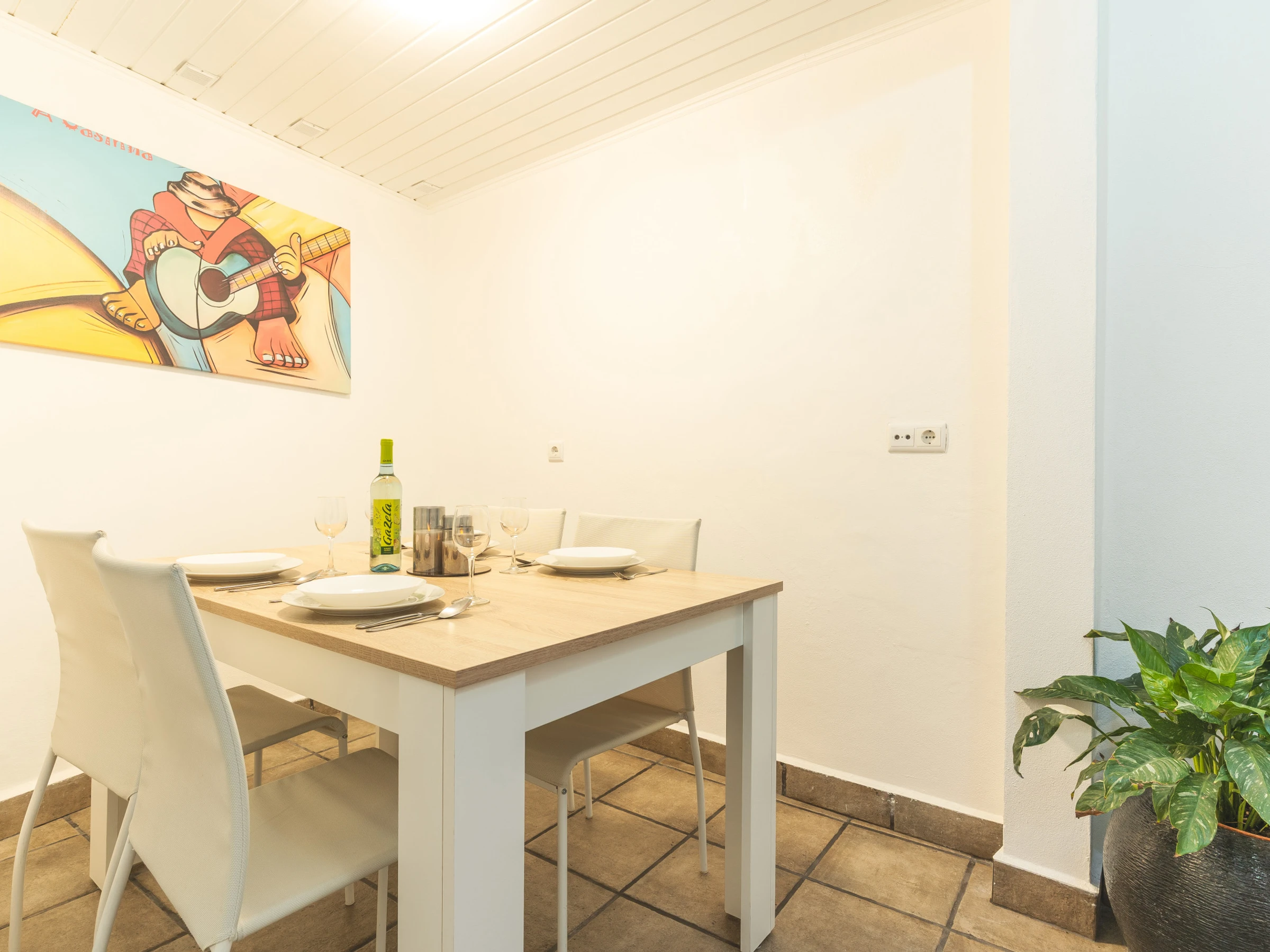 Les invités ont accès à un garage privé couvert avec un emplacement de stationnement. Un lave-linge et un sèche-linge sont disponibles, ainsi qu'un sèche-cheveux pour plus de commodité. L'espace de vie comprend une Smart TV avec boîtier et la climatisation, créant un environnement agréable pour se détendre après une journée d'exploration de l'île. Un lit de bébé et une chaise haute sont disponibles sur demande, ce qui rend la maison adaptée aux familles voyageant avec de jeunes enfants.