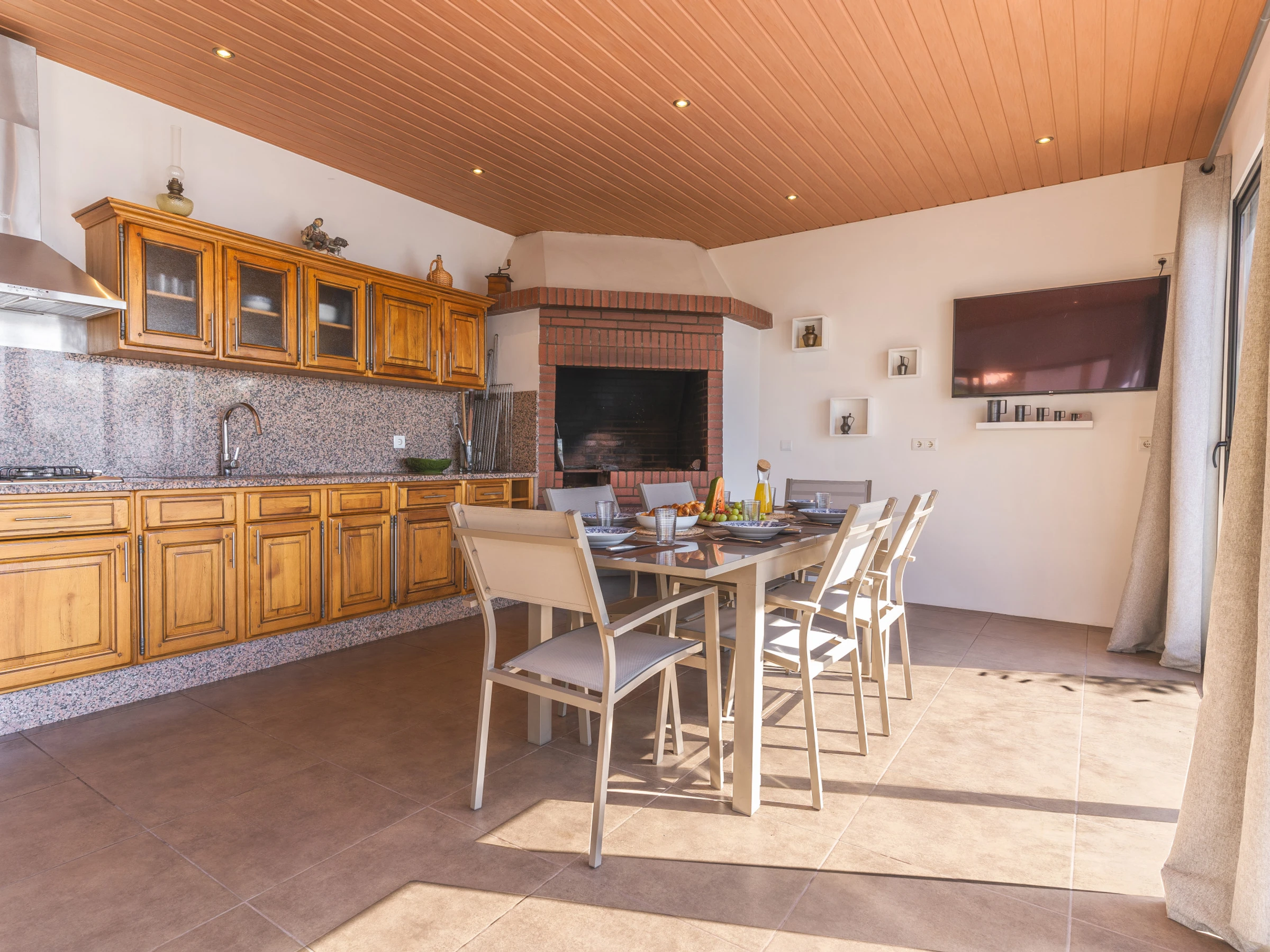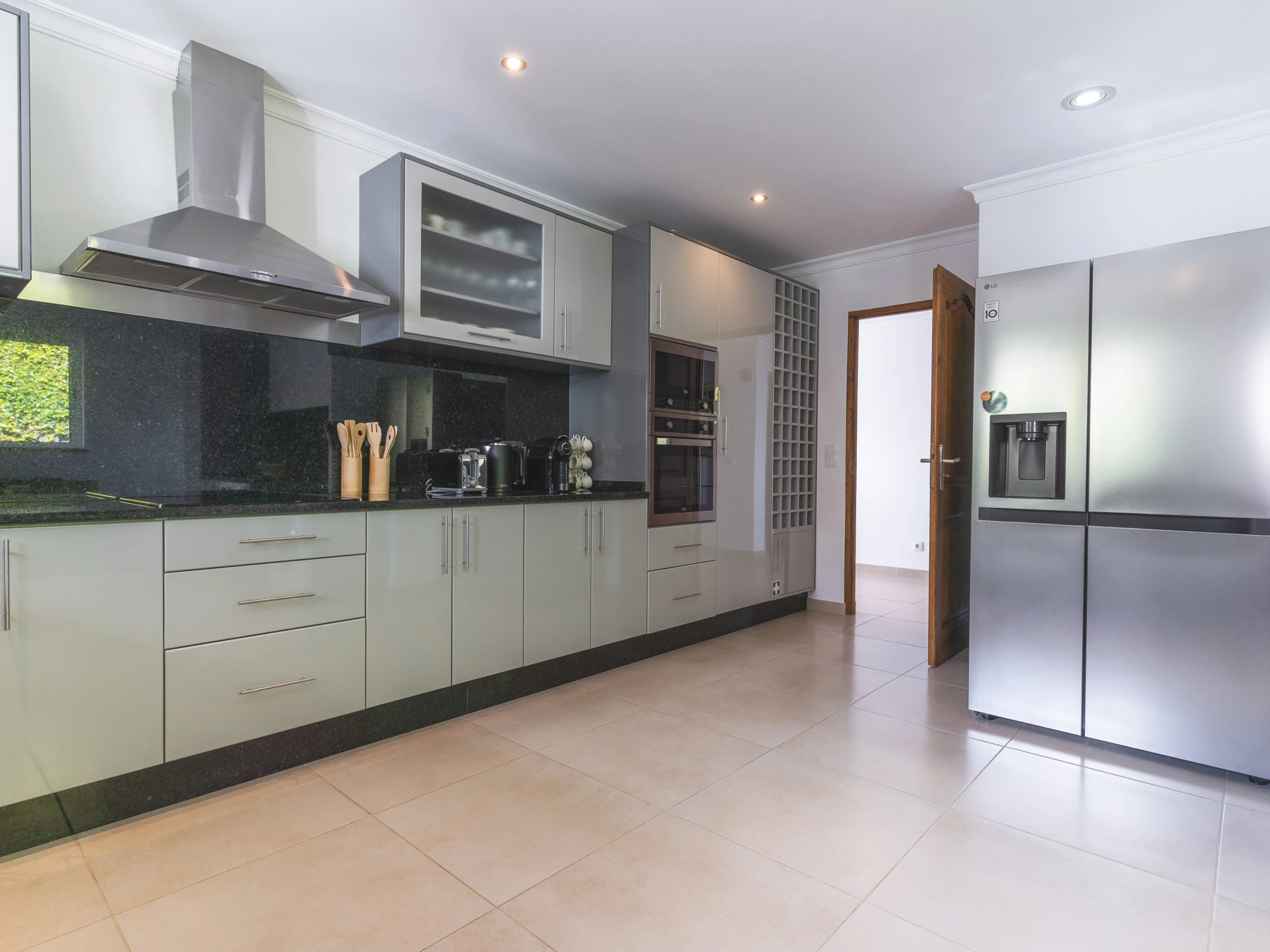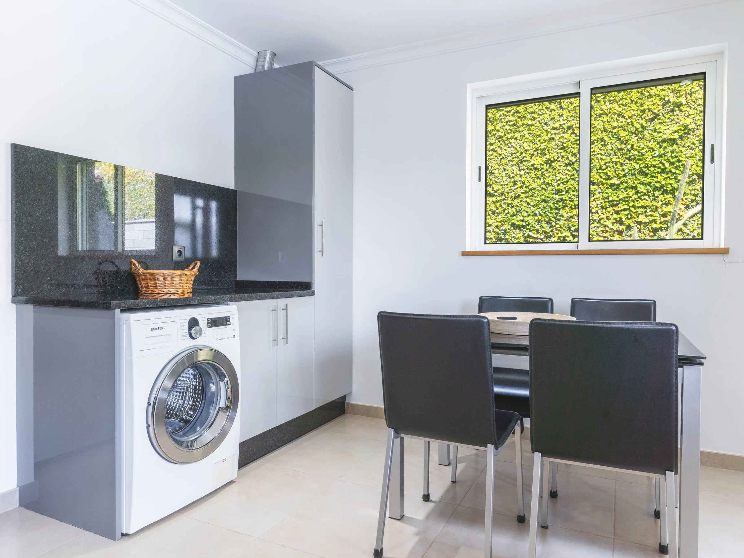 La cuisine entièrement équipée comprend un réfrigérateur, un congélateur, un four, un micro-ondes, une plaque de cuisson, des couverts, des assiettes et tous les ustensiles nécessaires à la cuisine. La maison dispose également d'une TV intelligente avec box, d'un sèche-cheveux et d'un lave-linge. Les familles avec de jeunes enfants peuvent demander un lit bébé et une chaise haute.