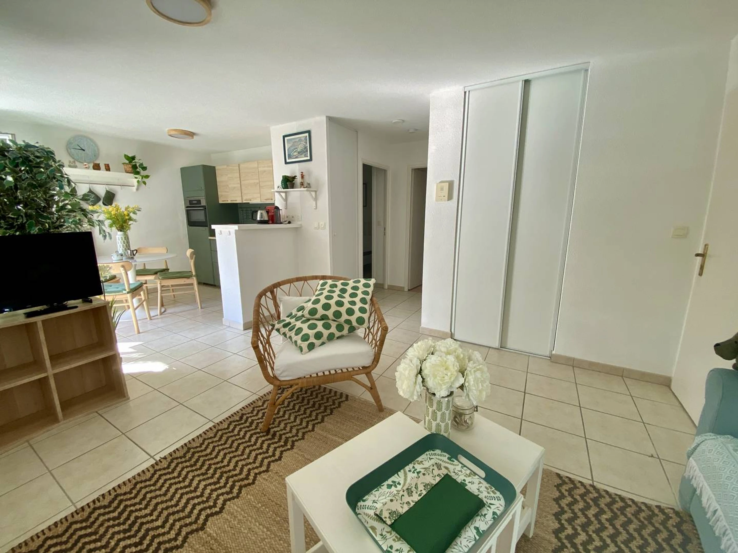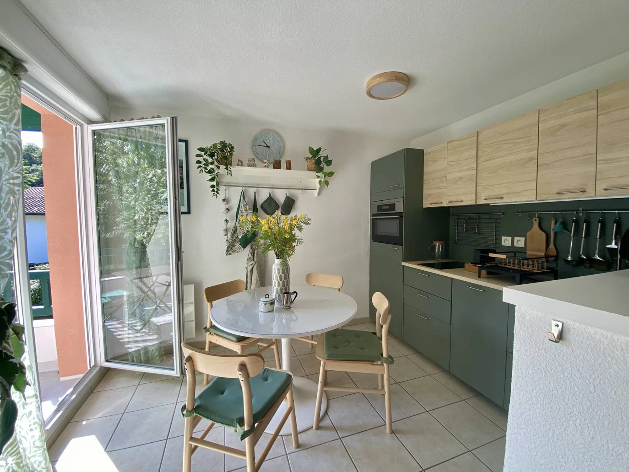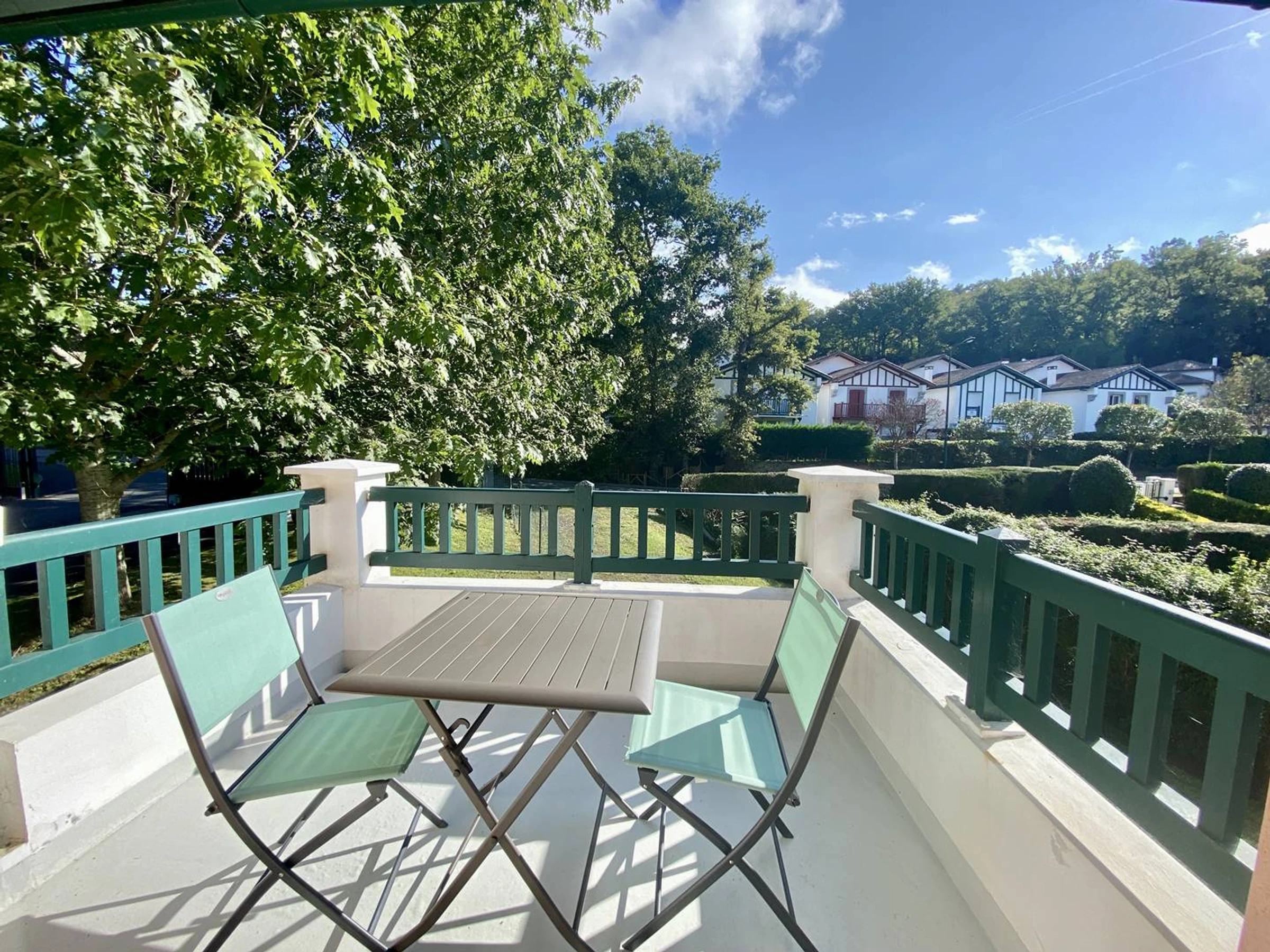 CAMBO, C251 : Résidence sécurisée avec piscine*, ce charmant T2, rénové avec goût, se situe au 1er étage de la résidence sans ascenseur. La pièce principale offre un espace salon (canapé non convertible, TV, Wifi, fauteuils). L'espace cuisine équipée dispose d'une table et de 4 chaises (plaque 2 feux, combiné four/micro-ondes, frigo avec compartiment congélateur, hotte, petit électroménager, lave-vaisselle ...). La chambre est équipée d'un lit en 160 x 200 et d'un placard intégré. Salle de bain (baignoire) avec lave-linge. WC indépendant. Le balcon est équipé d'une table avec chaises de jardin.