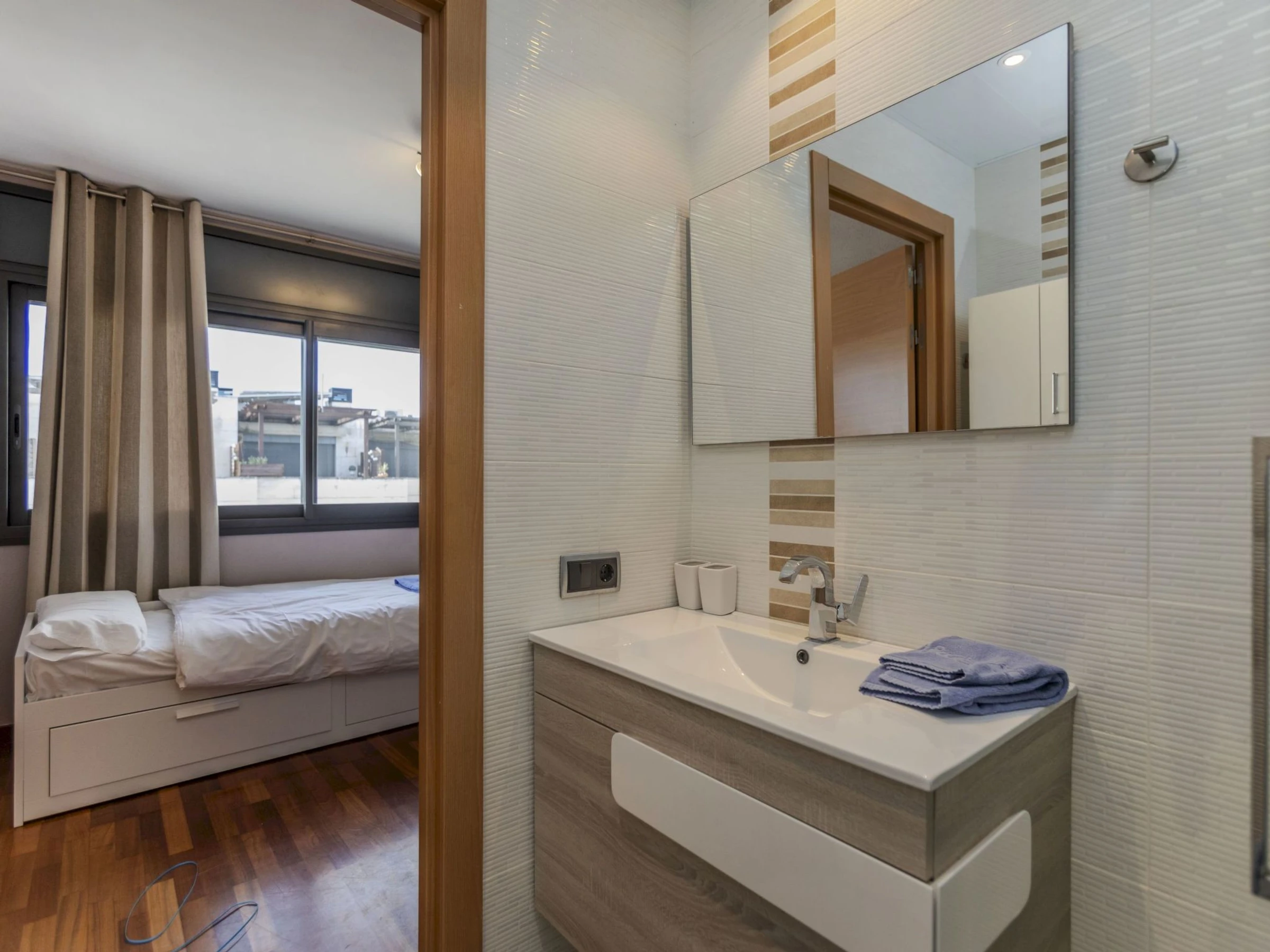"Sol Cambrils Park 28", maison mitoyenne 5 pièces 110 m2 sur 3 niveaux. Logement idéal pour 7 adultes + 3 enfants. Aménagement fonctionnel et moderne: séjour/salle à manger avec Télévision numérique, écran plat et ventilateur. Sortie sur la terrasse avec WC séparés, air-conditionné, ventilateur, chauffage à air chaud et volet roulant électrique. Cuisine (4 plaques de cuisson, four, lave-vaisselle, grille-pain, bouilloire électrique, micro-ondes, cafetière électrique). À l'étage supérieur: 1 chambre avec 1 grand-lit (135 cm, longueur 190 cm), bain/bidet/WC, air-conditionné, ventilateur et chauffage à air chaud. 1 chambre avec 1 x 2 lits superposés (90 cm, longueur 170 cm), air-conditionné, ventilateur et chauffage à air chaud. 1 chambre avec 1 lit (70 cm, longueur 160 cm), 1 grand-lit (135 cm, longueur 190 cm), air-conditionné, ventilateur et chauffage à air chaud avec douche/WC, air-conditionné et chauffage à air chaud. 2ème étage: 1 chambre avec 1 lit (90 cm, longueur 190 cm), 1 grand-lit (135 cm, longueur 190 cm), douche/WC, air-conditionné, ventilateur et chauffage à air chaud. Sortie sur la terrasse. Terrasse. Meubles de terrasse, barbecue. Vue sur le jardin. A disposition: lave-linge, sèche-linge, fer à repasser, lit bébé, sèche-cheveux. Internet (Connexion WIFI). Place de parking No 29 (couvert). Veuillez noter: adapté(e) aux familles. Maison non-fumeur. [hidden]-27 // Reg. Nr.: ESFCTU00004303100040714300000000000000[hidden]-275