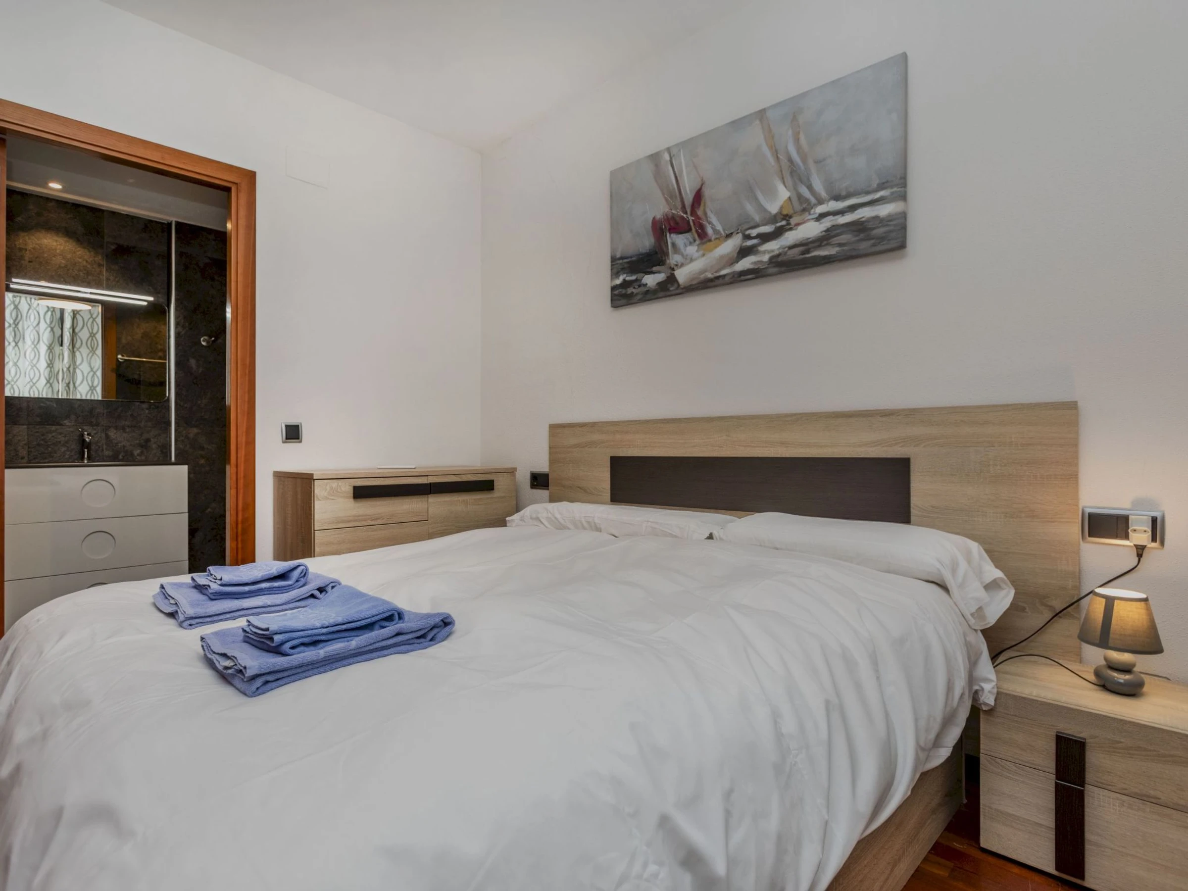 Beau complexe de vacances moderne "Sol Cambrils Park". Dans la localité, situation tranquille, ensoleillée, à 30 m de la mer, à 30 m de la plage, route à traverser. En commun: terrain 10'000 m2 (clôturé), grand, beau jardin entretenu avec pelouse, piscine, piscine couverte chauffée (22 x 65 m, profondeur 60 - 220 cm, disponibilité saisonnière: [hidden] - [hidden] horaires d'ouverture de la piscine: 10:00-23:00). Bassin pour les enfants, douche extérieure. Infrastructures de la Maison: sauna, salle fitness, bain à remous , ascenseur. Magasins, magasin d'alimentation, supermarché 600 m, centre commercial 12 km, restaurant, bar 200 m, boulangerie 600 m, café 200 m, location de bicyclettes 300 m, biergarten 200 m, arrêt de bus "Playa Cavet" 240 m. Port plaisance 3 km, marina 3 km, terrain de golf (18 trous) 6 km, ecole de surf 500 m, ecole de voile 3 km, centre équestre 8 km. Attractions à proximité: Port Aventura 8 km, Aquopolis 9 km, Aquum Spa 9 km. Région de randonnées: La Mussara 35 km. Le propriétaire n'accepte pas les groupes de jeunes. Veuillez noter: la propriété référencée ES9582.600.6 est située sur le même terrain. Environnement très sensible au bruit. Silence et bonne tenue exigés. Sur le terrain: emplacement pour football et basket, 2 petits courts de tennis, Beach-volley. (compris dans le prix).