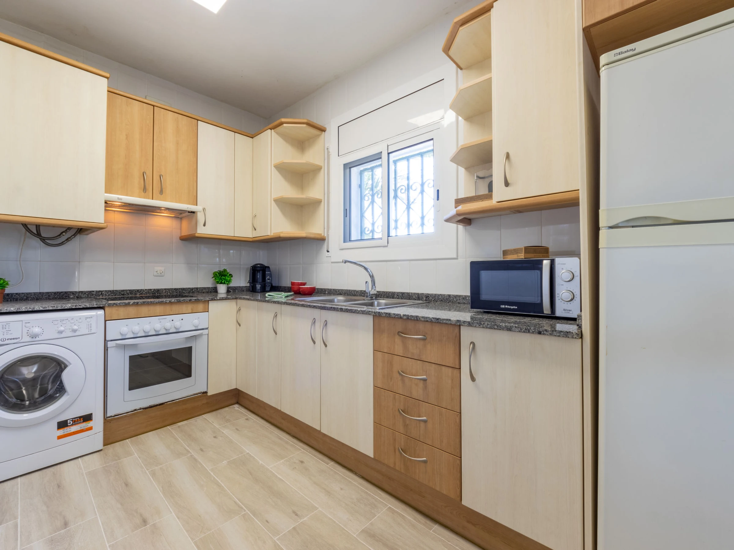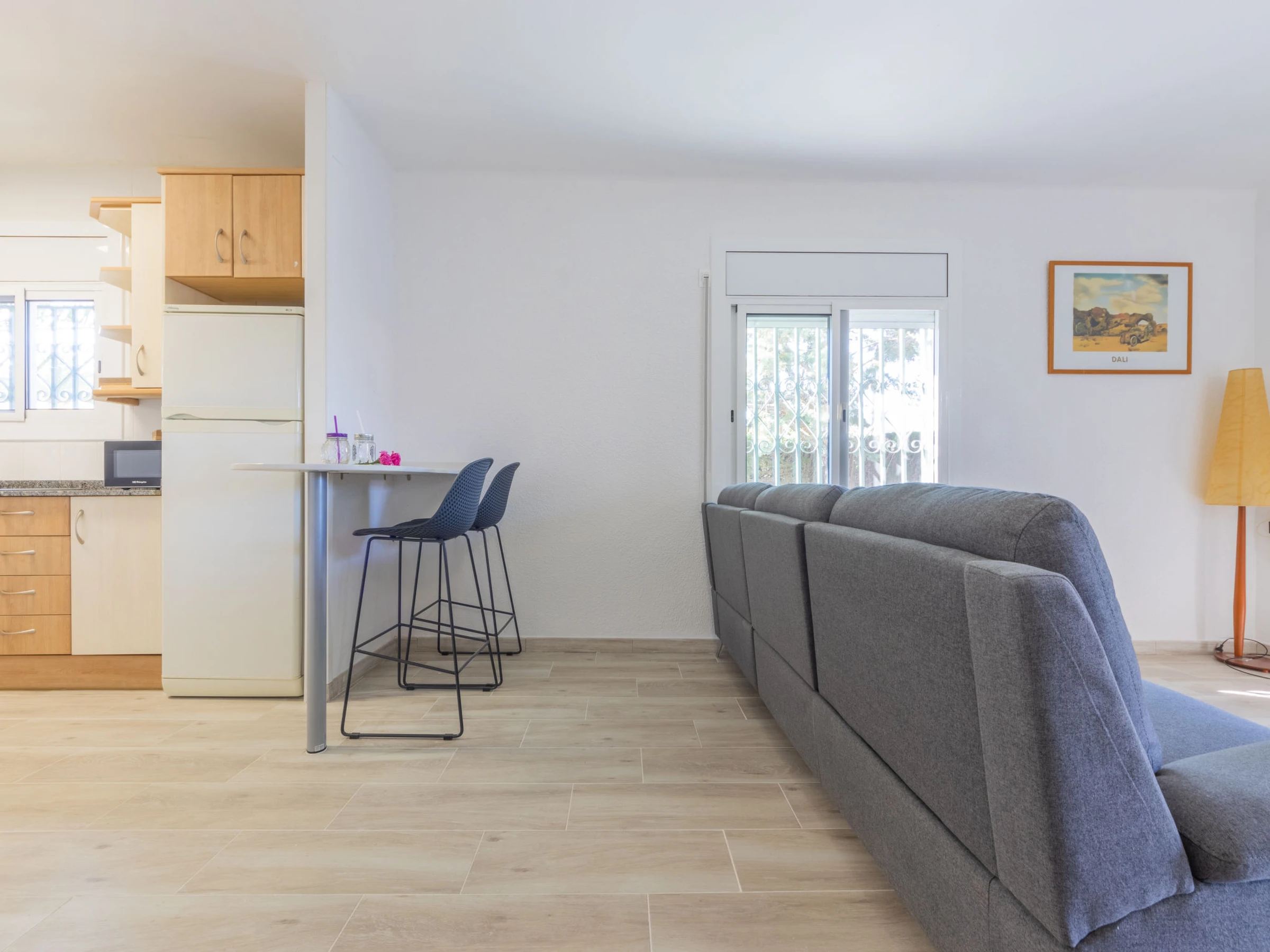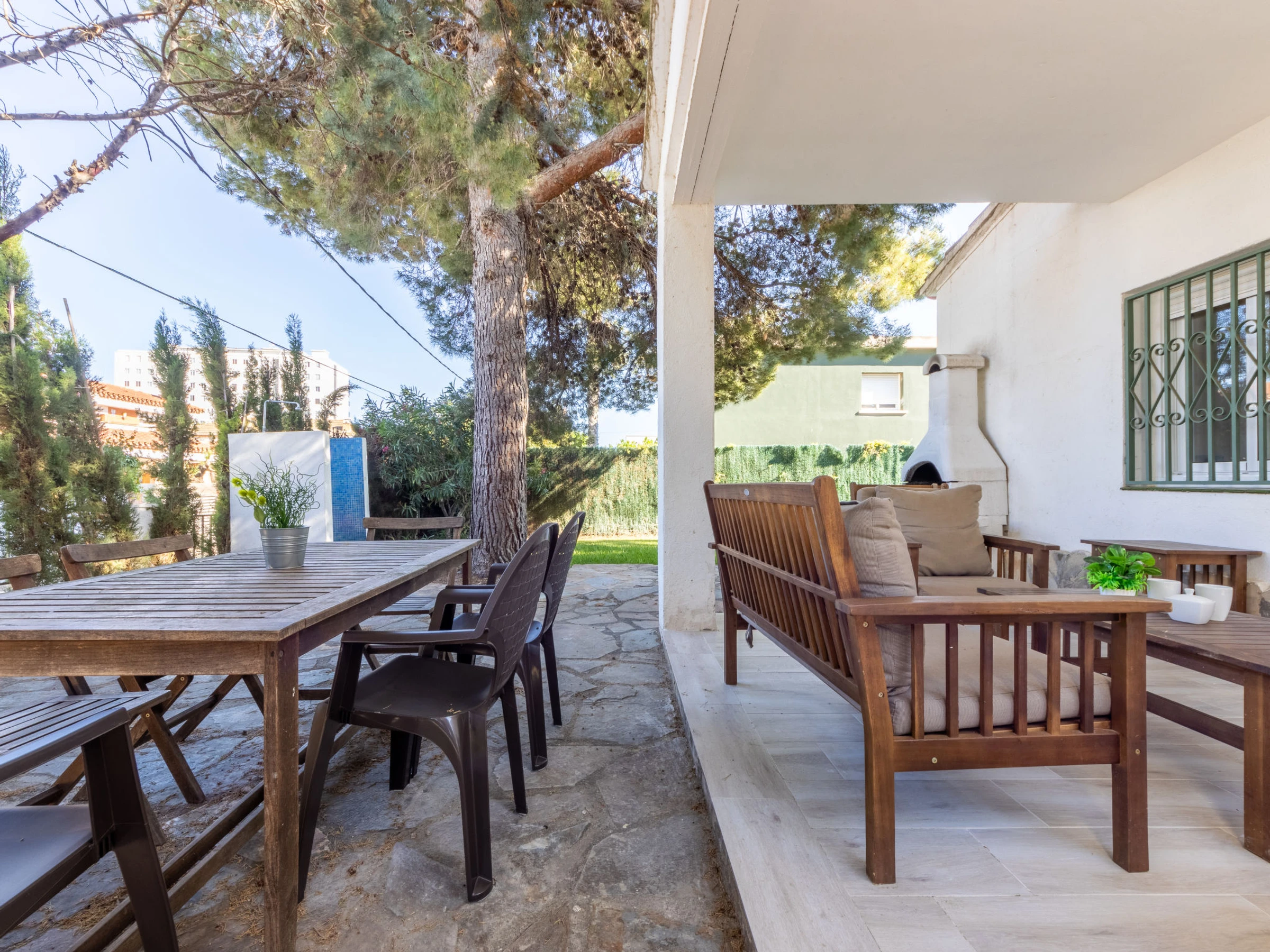 Urb Cambrils Mediterra: Maison confortable, individuelle "Cornelia Pucho". En-dehors de la localité, à 3 km du centre de Cambrils, à 600 m de la mer, à, de la plage, dans une rue. A usage privé: terrain 230 m2 (clôturé), jardin avec pelouse 65 m2 arbres. Tonnelle (7 m2), barbecue. Accès en voiture jusqu'à la maison. Sentier en escalier (6 marches) jusqu'à la maison. Place de parking près de la maison, garage individuel. Magasins 500 m, bar, arrêt de bus 3 km, gare ferroviaire 3 km. Terrain de golf (18 trous) 4 km. Attractions à proximité: Parque temático PORTAVENTURA 8 km, Parque aquático AQUOPOLIS 10 km, Spa AQUUM 10 km, Karting 7 km, Paintball 10 km. Veuillez noter: voiture recommandée. Voie ferrée 100 m de la maison.
