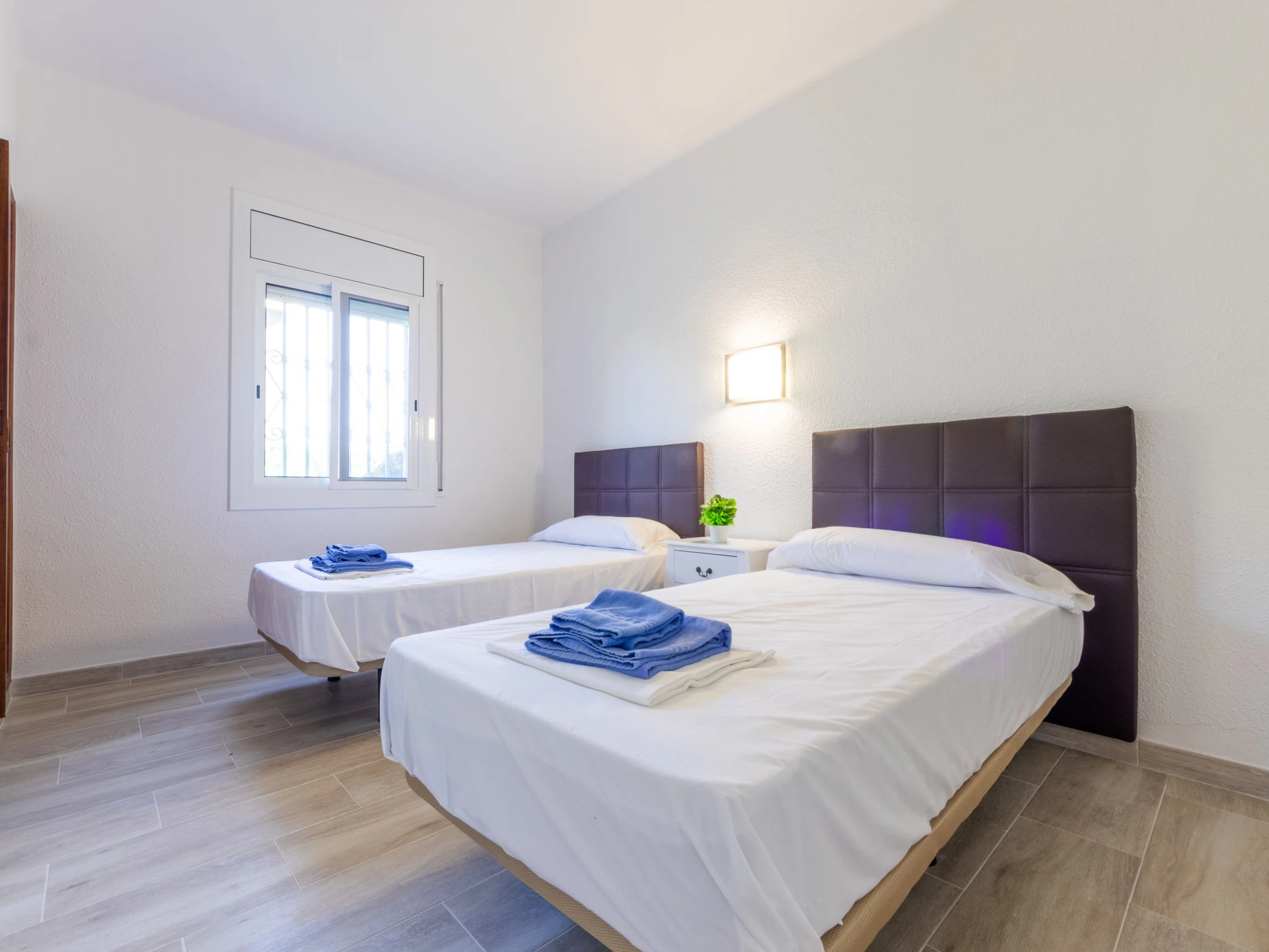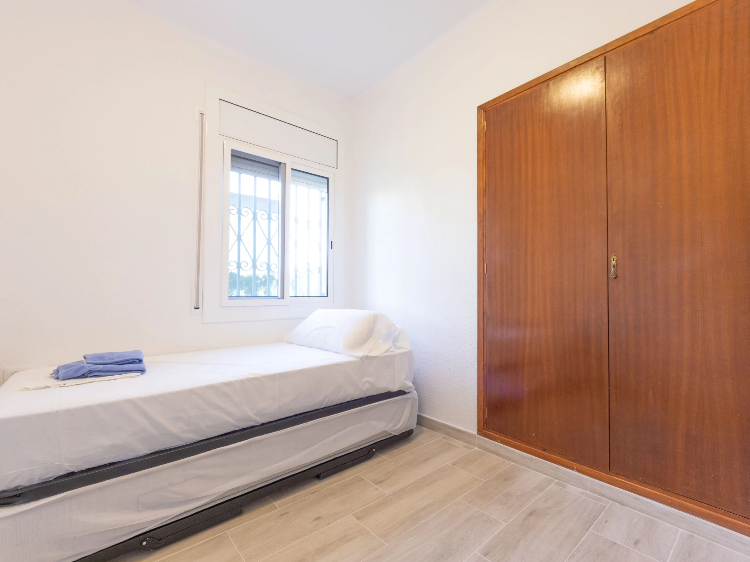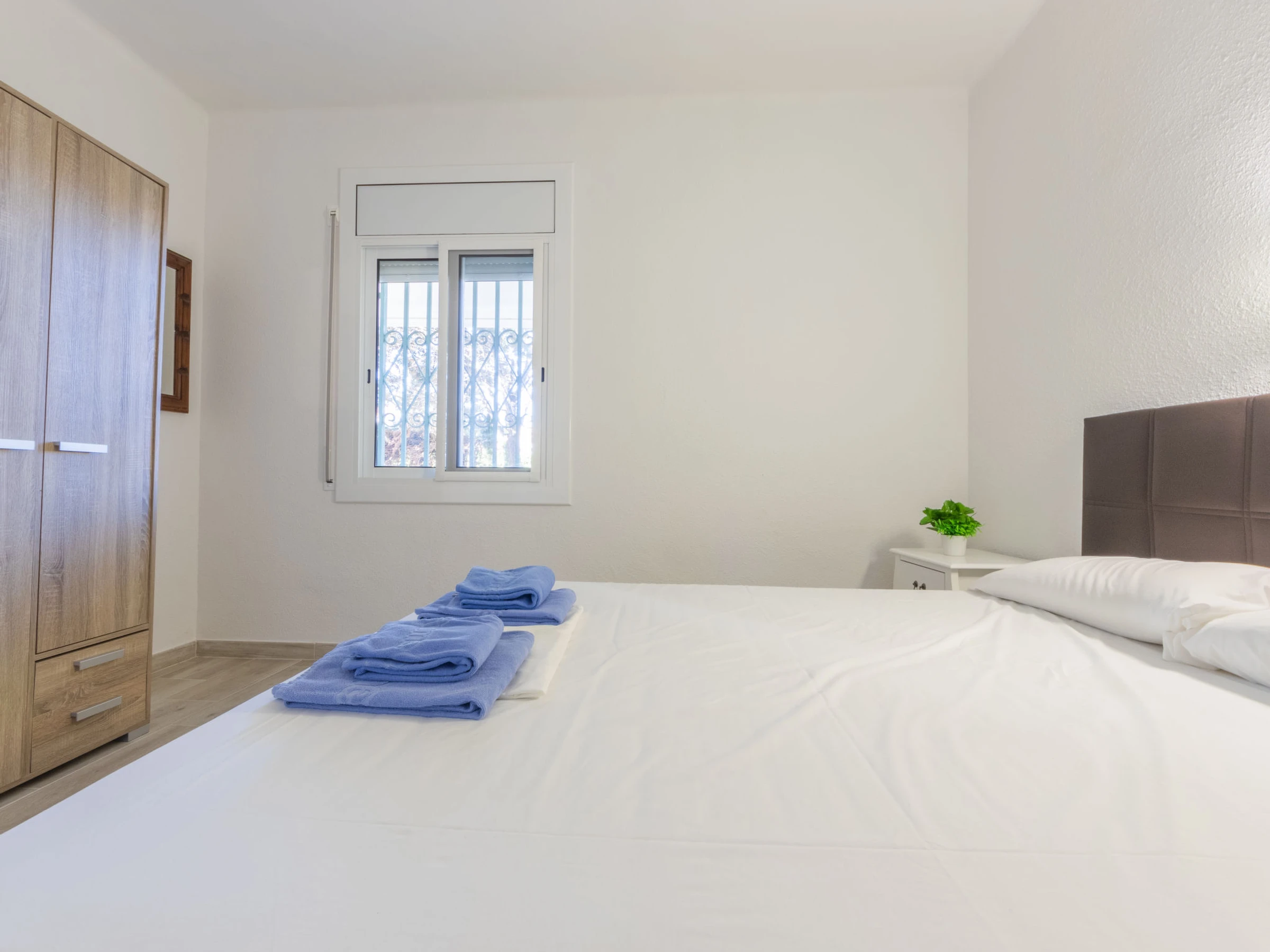 Maison 4 pièces 62 m2, au rez-de-chaussée. Aménagement fonctionnel: séjour/salle à manger 18 m2 avec TV (satellite), Télévision numérique et chaînes de TV internationales. Sortie sur le jardinet. 1 chambre 11 m2 avec 1 grand-lit (135 cm). 1 chambre 7 m2 avec 1 lit (80 cm). 1 chambre 9 m2 avec 2 lits (80 cm). Cuisine (4 plaques de cuisson, four, bouilloire électrique, micro-ondes, cafetière électrique) avec table pour les repas. Bain/bidet/WC. Pas de chauffage. Meubles de terrasse, barbecue. Vue sur le jardin. A disposition: lave-linge. Internet (Connexion WIFI, gratuit). Place de parking (cloturée). Maximum 2 animaux/ chiens autorisés. [hidden] // Reg. Nr.: ESFCTU00004303100001593500000000000000000[hidden]2