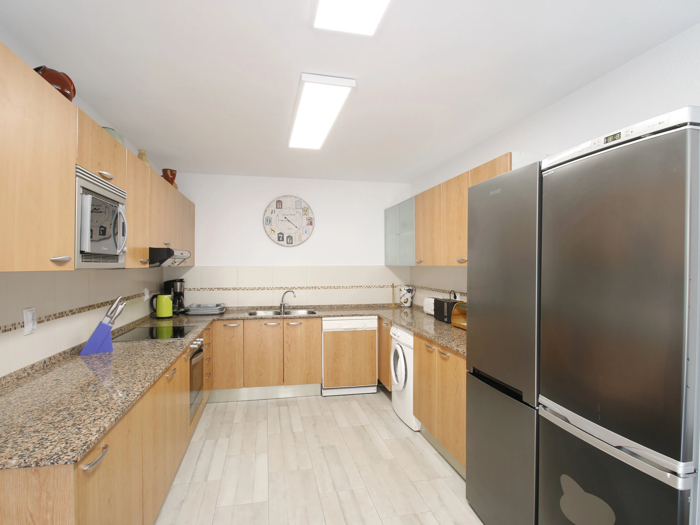 Le rez-de-chaussée offre un grand salon-salle à manger et un salon supplémentaire, également climatisés, une deuxième cuisine entièrement équipée, trois chambres doubles, une chambre triple, deux salles de bains avec douche et un accès direct à l'extérieur, où le jardin et la piscine deviennent les grands protagonistes.