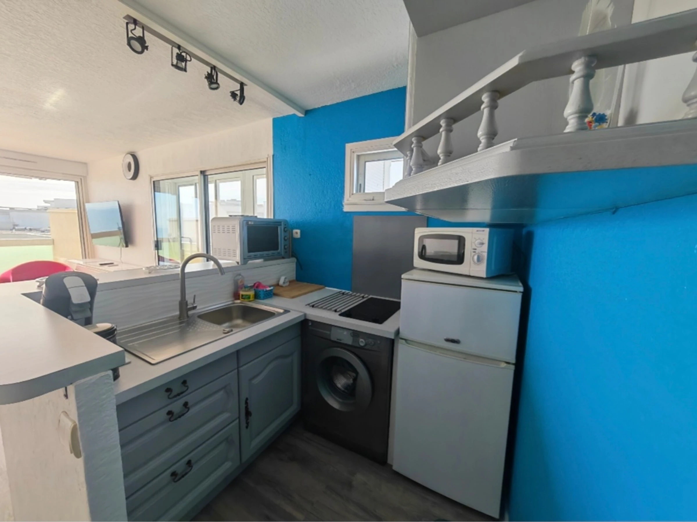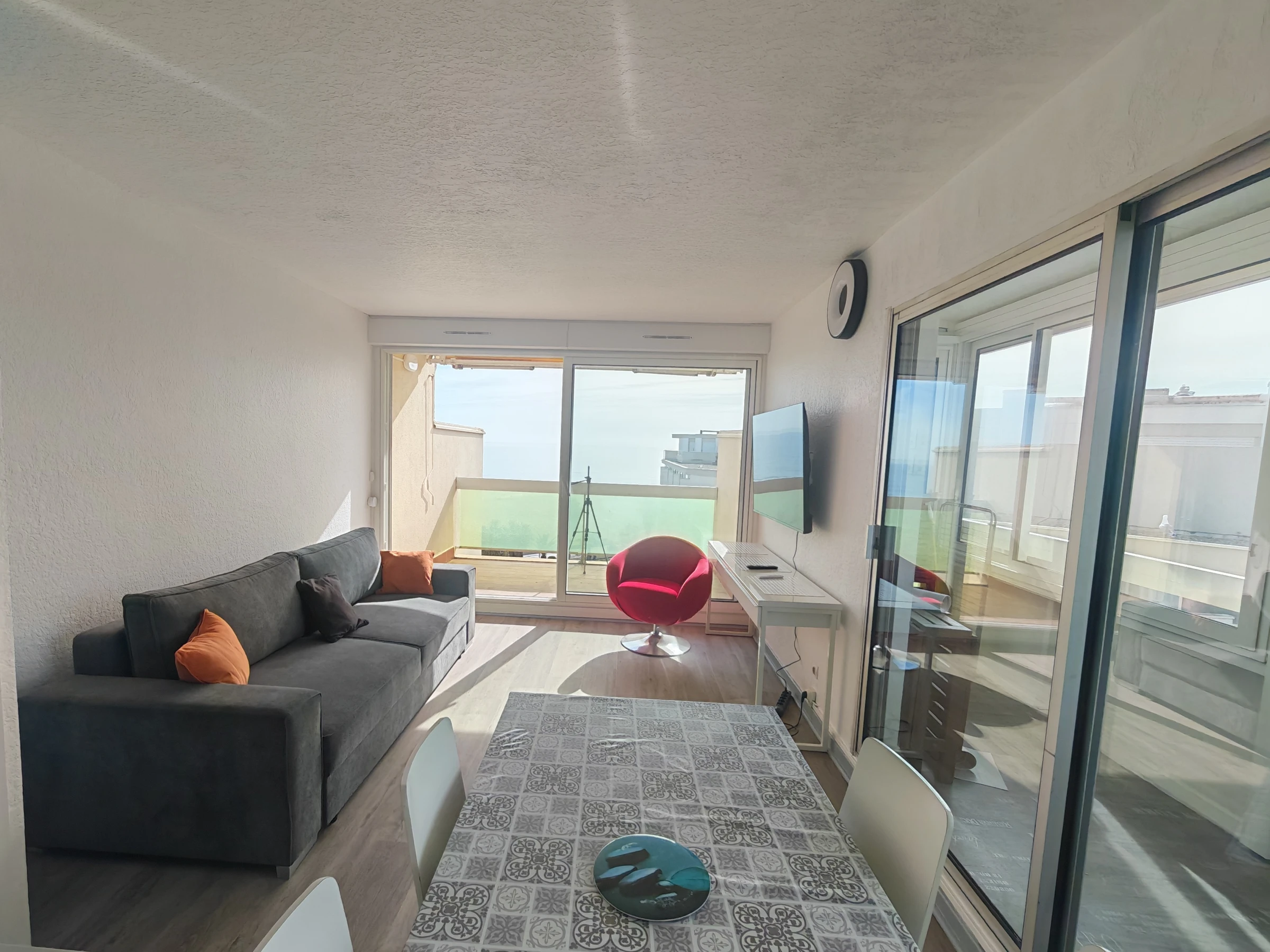 - Terrasse & loggia: Profitez d'une spacieuse terrasse de 15m² face à la mer pour vos repas, ainsi qu'une petite loggia exposée plein sud