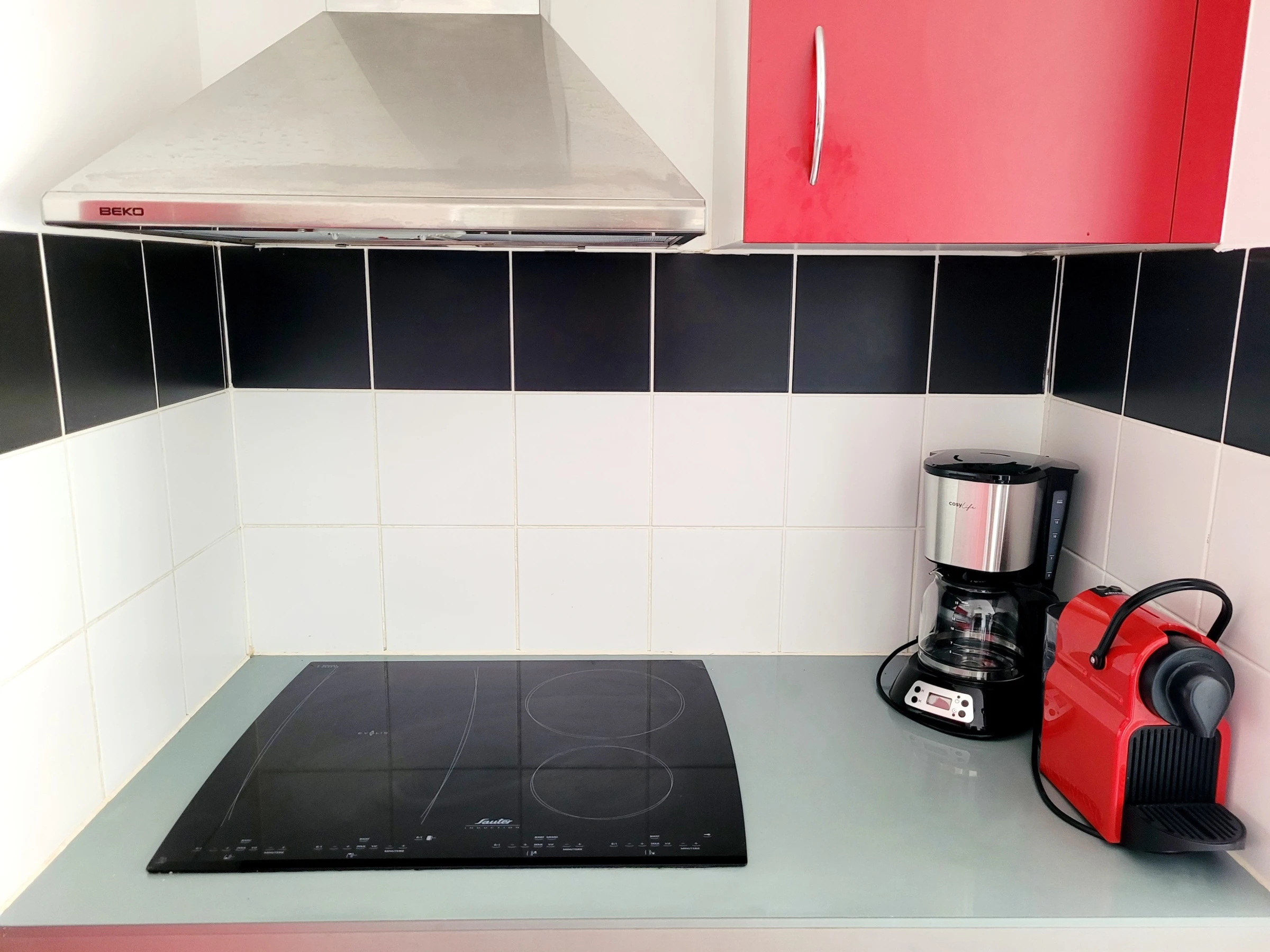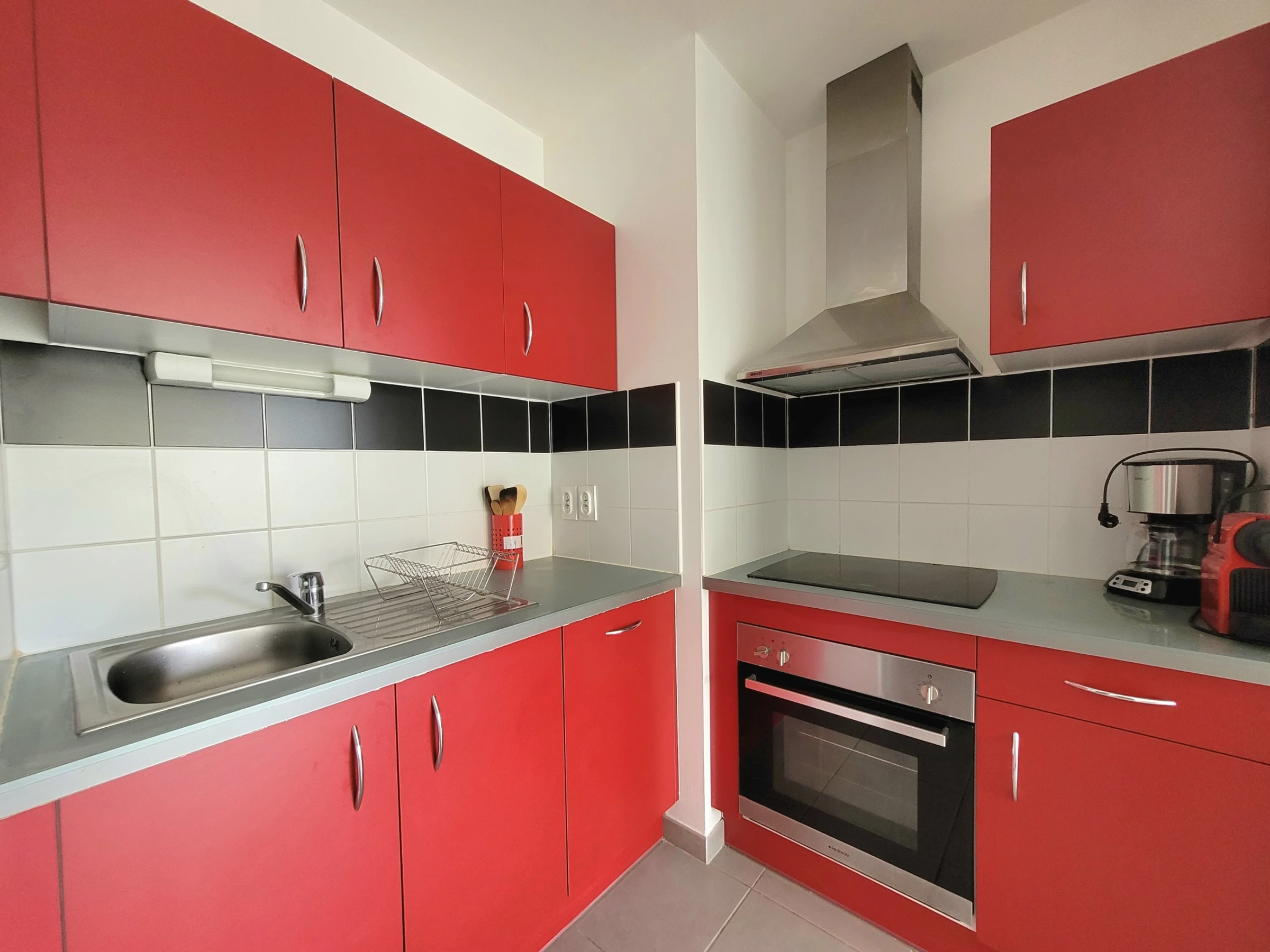 Coin cuisine équipé et aménagé.