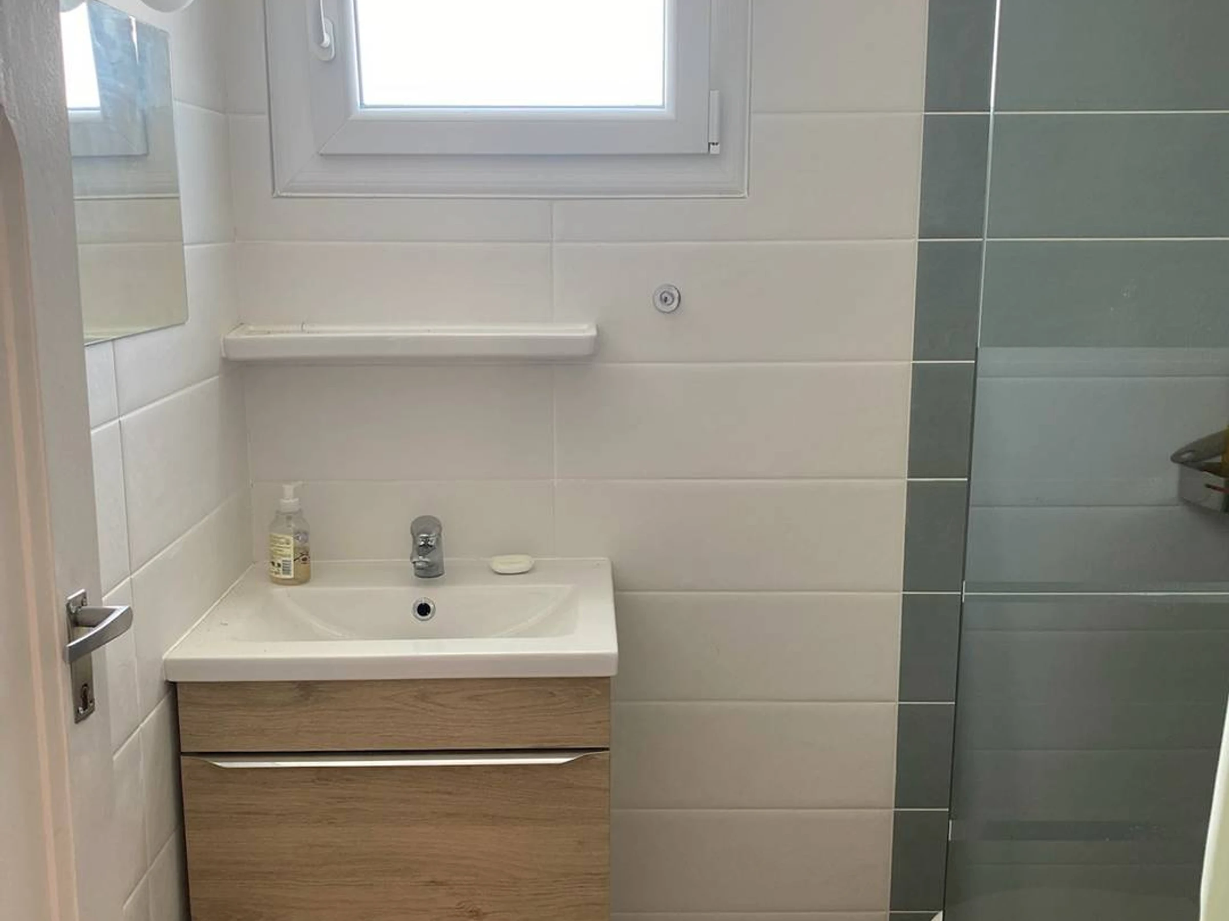 Le salon séjour spacieux comprend une grande table à manger pouvant accueillir jusqu'à 4 personnes, un canapé pour plus de confort, ainsi qu'une télévision et la climatisation pour des moments de détente. La salle d'eau est équipée d'une douche moderne et WC.