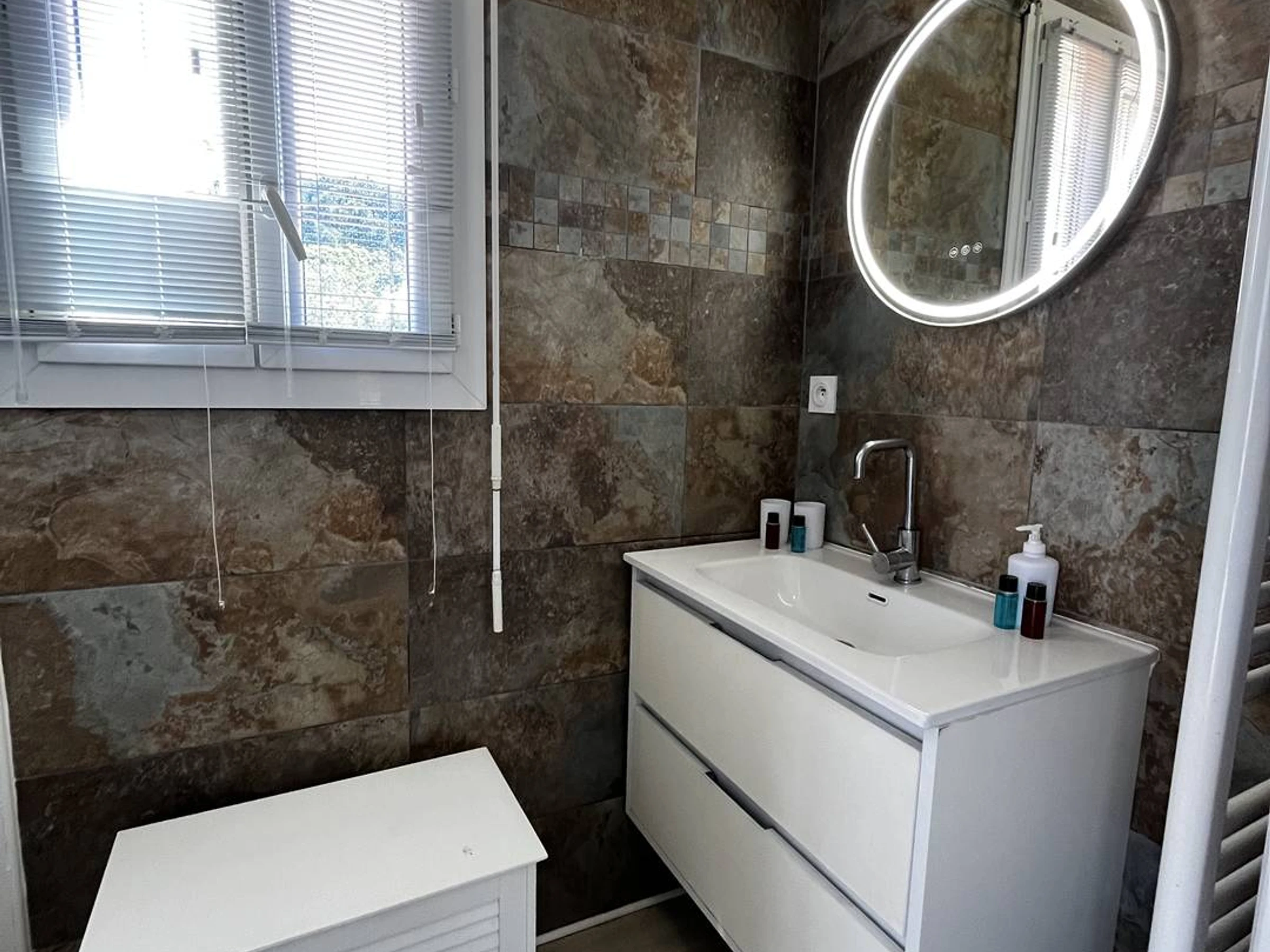 À l’étage, vous trouverez trois chambres climatisées ainsi qu’une salle d’eau moderne, pour un maximum de confort. Les deux grandes chambres sont équipées de lits en 160 cm, d’armoires et de fauteuils, offrant un bel espace de repos. La troisième chambre, dispose d’un lit simple en 90 cm et d’un lit d’appoint qui, une fois déplié, se transforme en un grand lit double confortable.