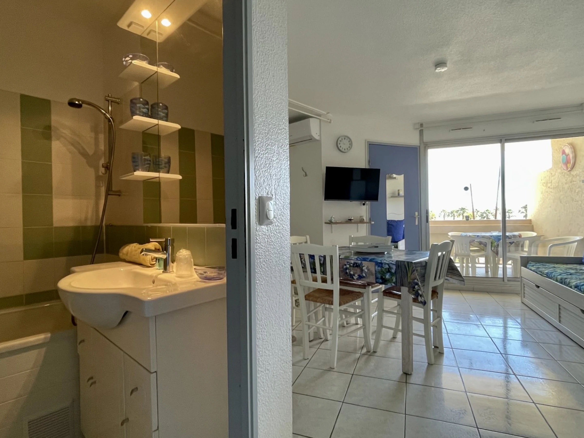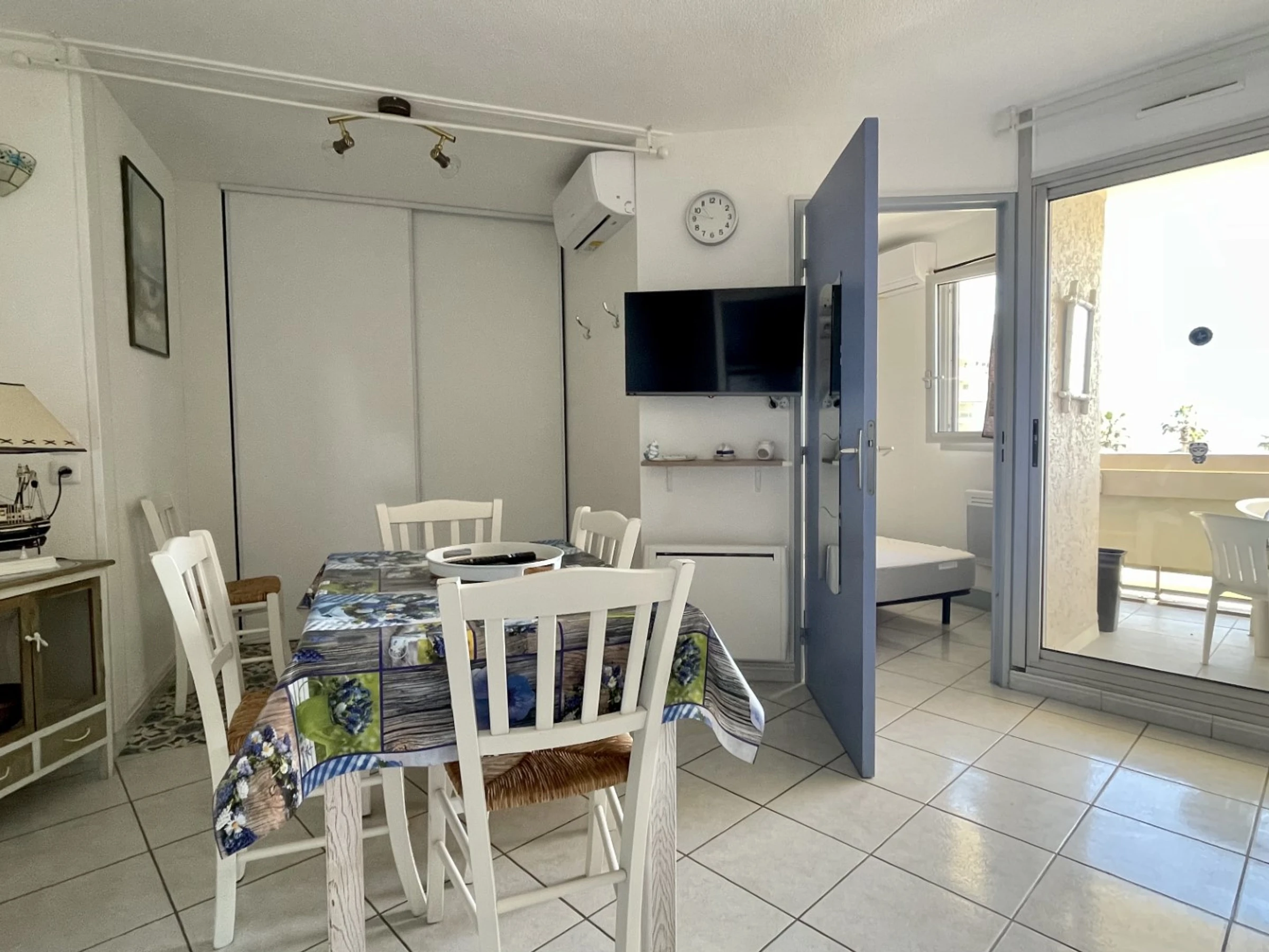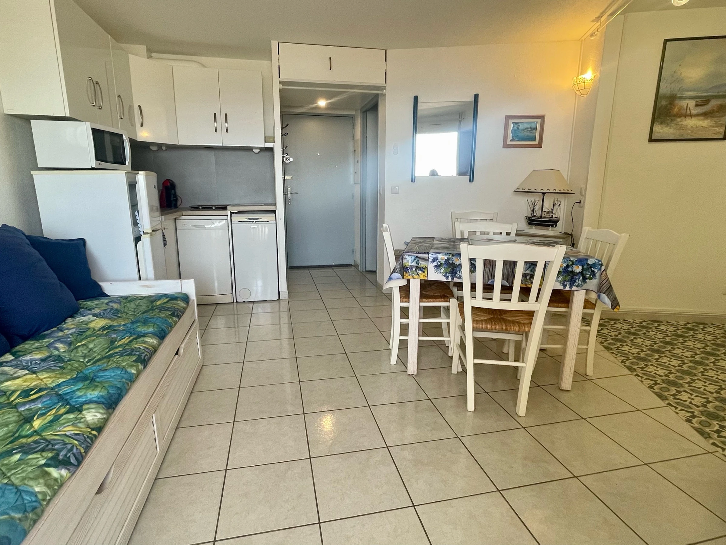 Bel appartement d'environ 28m² dans une résidence sécurisée avec ascenseur, gardien et piscine (ouverture de avril à septembre).