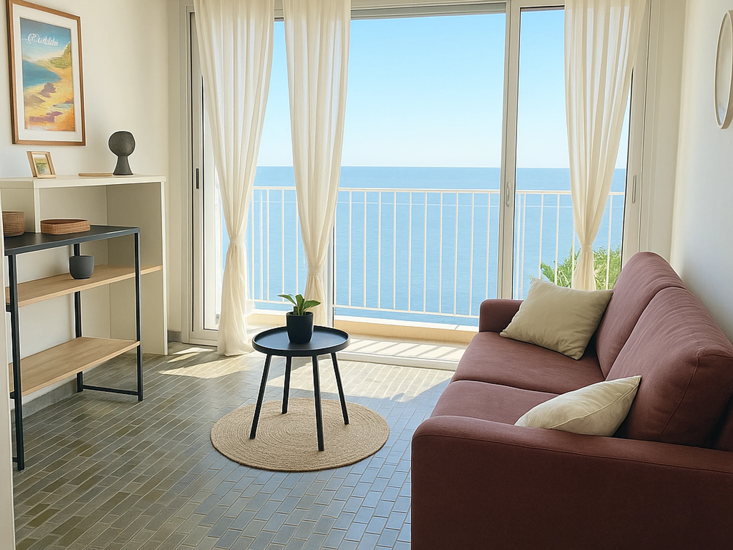 Un balcon avec une vue panoramique imprenable sur la mer, parfait pour vos petits-déjeuners au soleil ou vos soirées face au coucher du soleil.