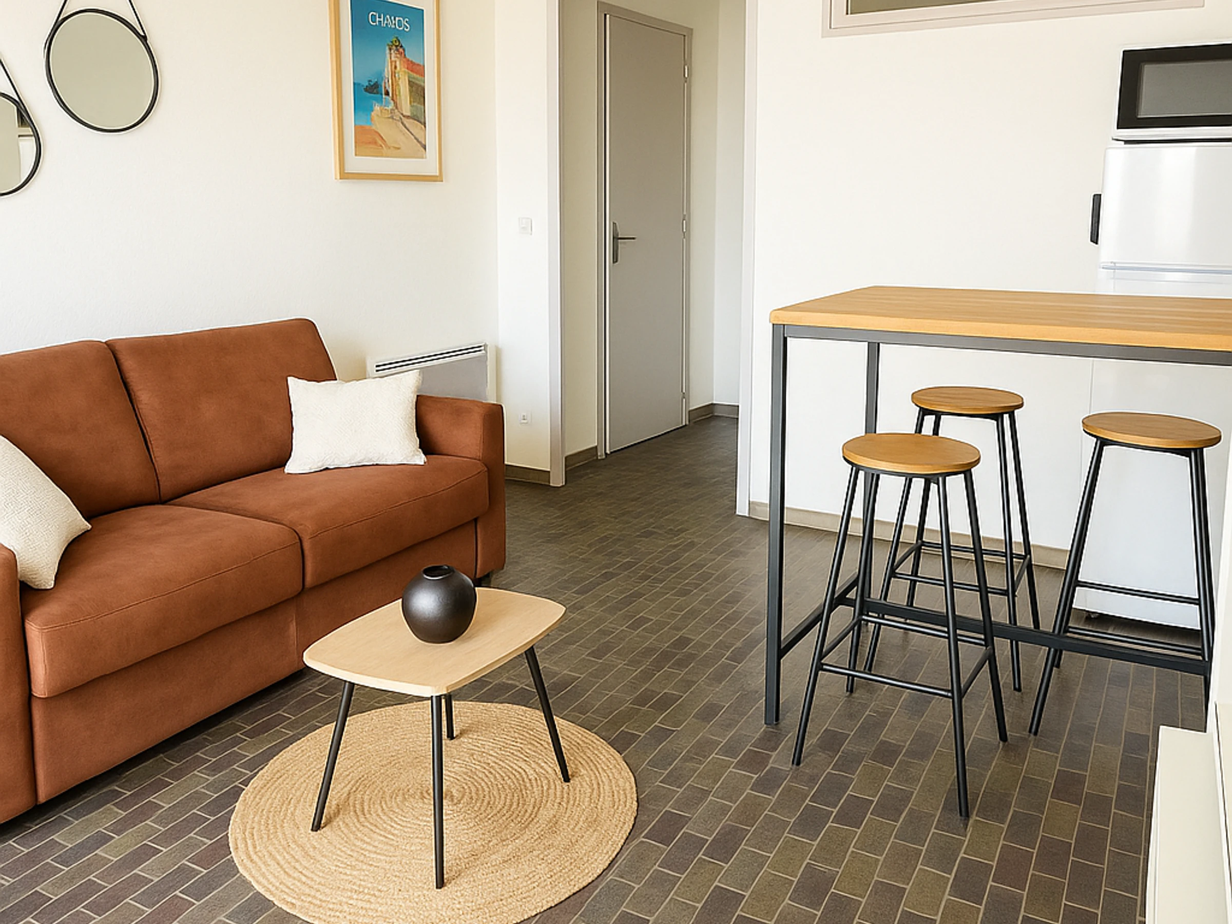 Une pièce de vie lumineuse avec un canapé convertible confortable
