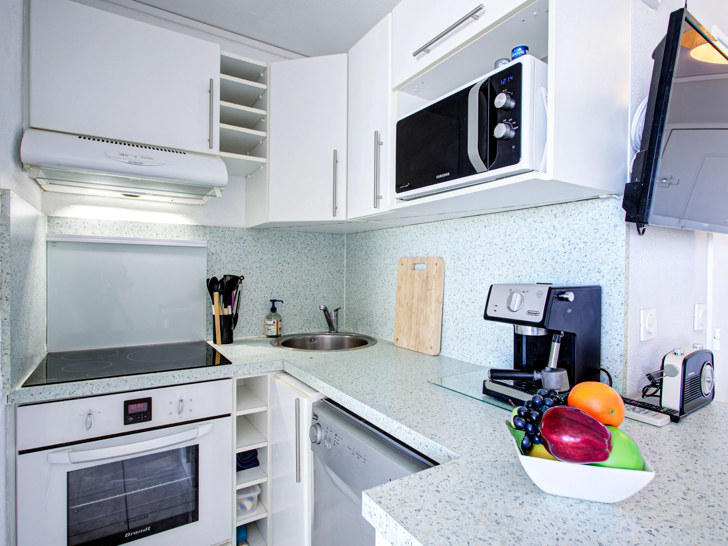 "Ipanema Sud", apt 2 pièces 32 m2 au 4ème étage, situation est. Aménagement agréable: séjour/salle à manger avec 1 divan-lit (140 cm, longueur 200 cm), table pour les repas, TV, écran plat et air-conditionné. Sortie sur la loggia. 1 chambre avec 1 grand-lit (1 x 140 cm, longueur 190 cm). Cuisine ouverte (four, lave-vaisselle, 3 plaques à induction, grille-pain, bouilloire électrique, micro-ondes, cafetière électrique, appareil à raclette). Douche, WC séparé. A disposition: lave-linge, fer à repasser, sèche-cheveux. Internet (Connexion WIFI, gratuit). Place de parking. Veuillez noter: maximum 1 animal/ chien de petite taille autorisé. Détecteur de fumée. Annonce d'un particulier (art 155, IV du CGI).