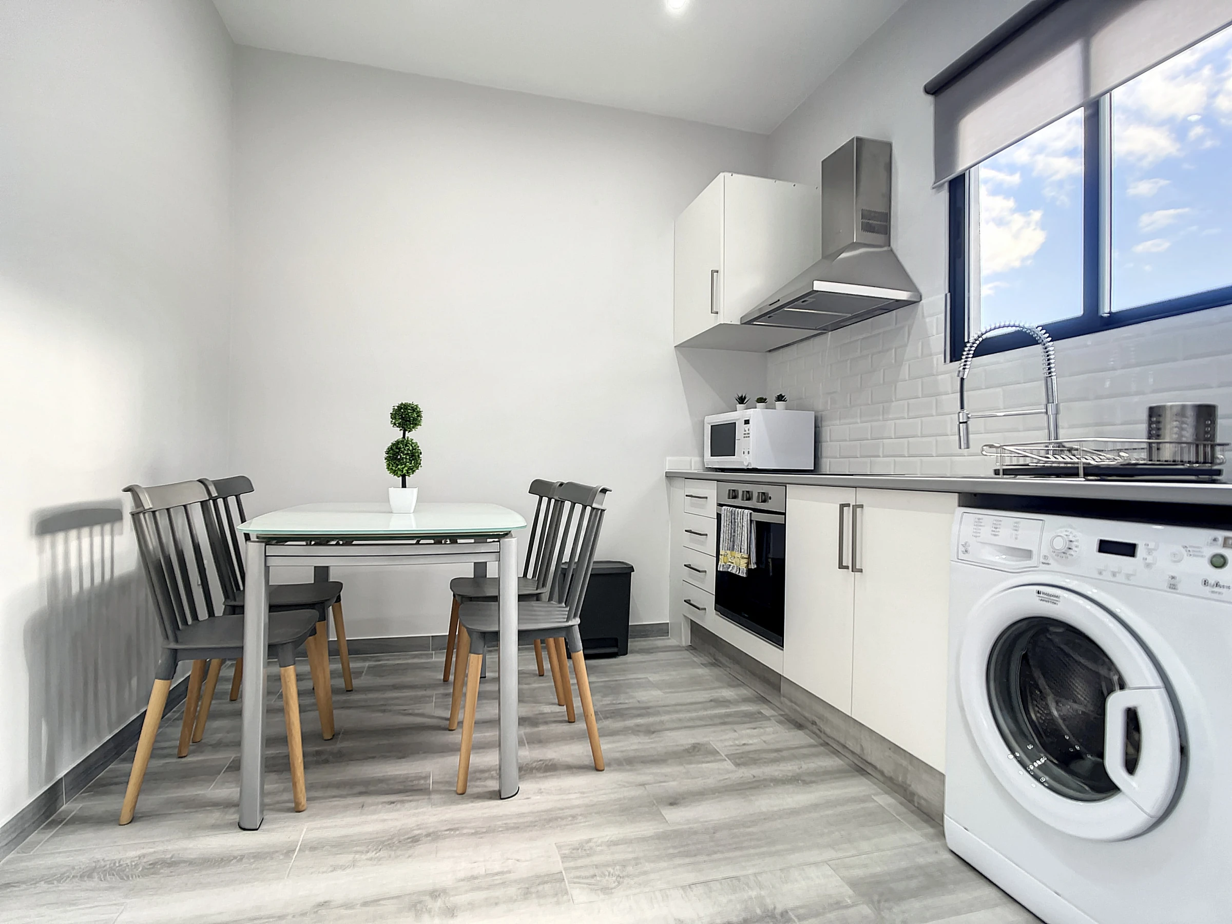 La cuisine est entièrement équipée avec réfrigérateur, congélateur, four, micro-ondes, plaque de cuisson, ainsi que tous les ustensiles nécessaires pour cuisiner. Le salon dispose d'une Smart TV avec box, et la connexion Wi-Fi est gratuite dans tout l’appartement. Un lave-linge et un sèche-cheveux sont également fournis.