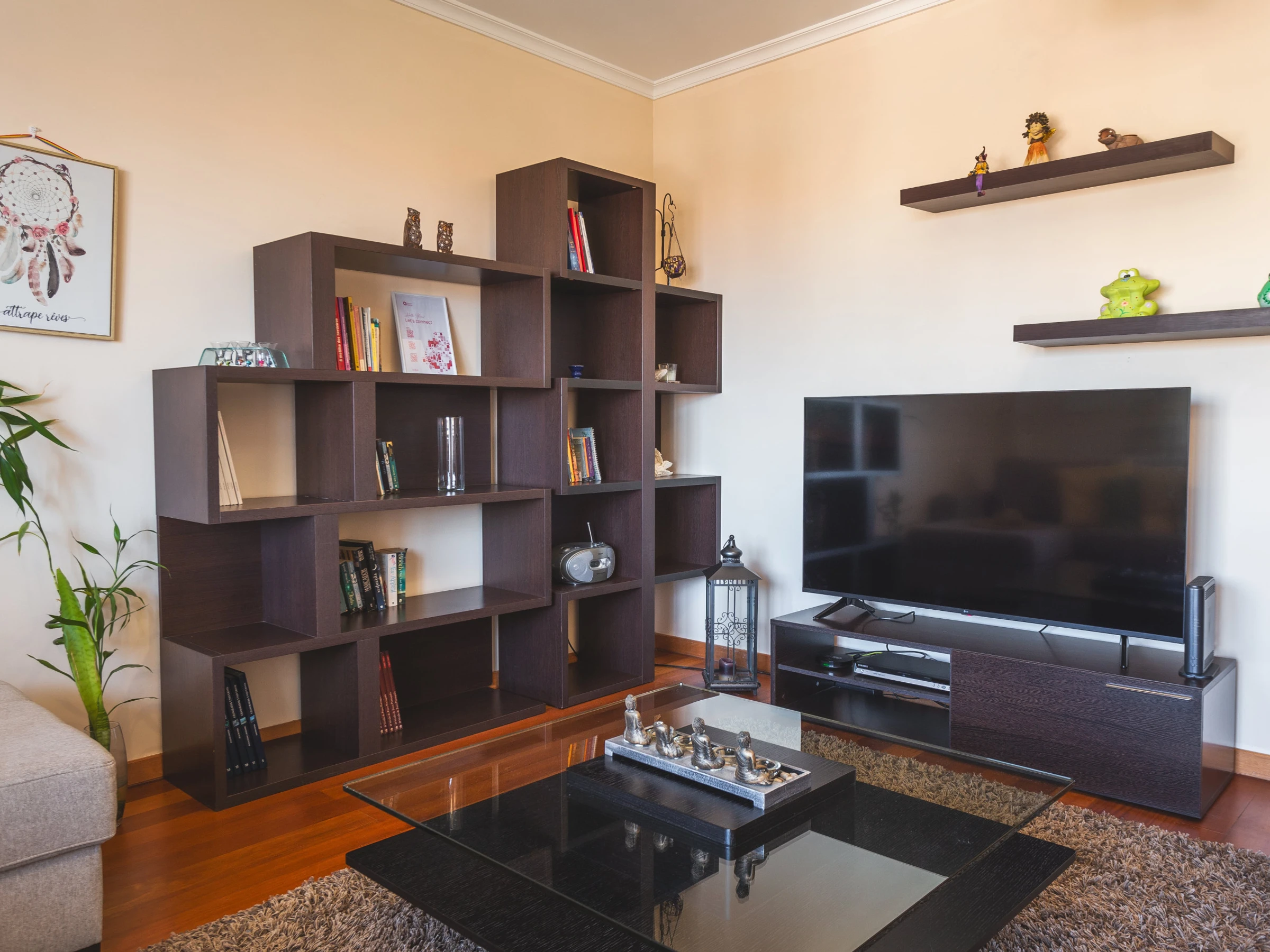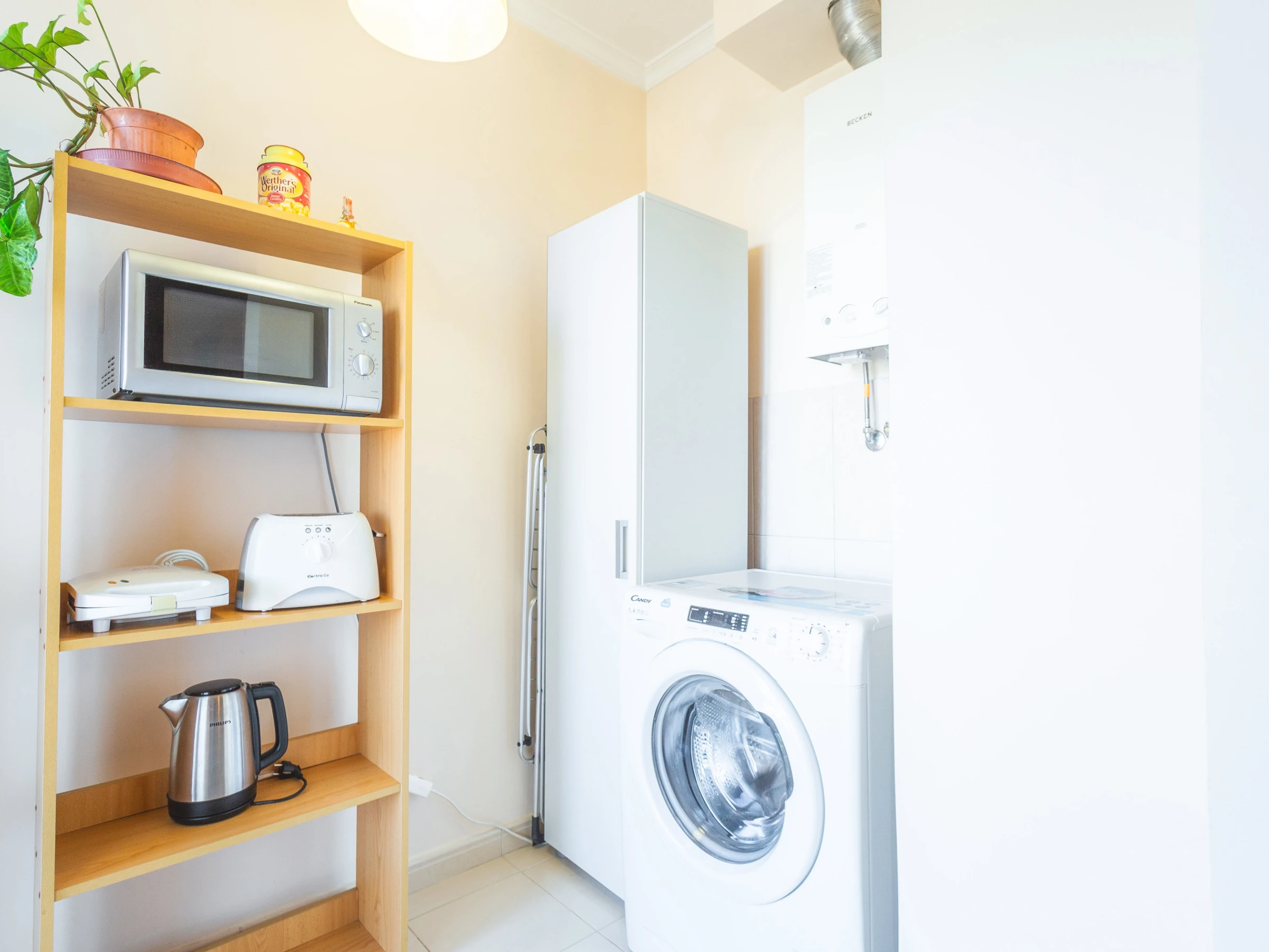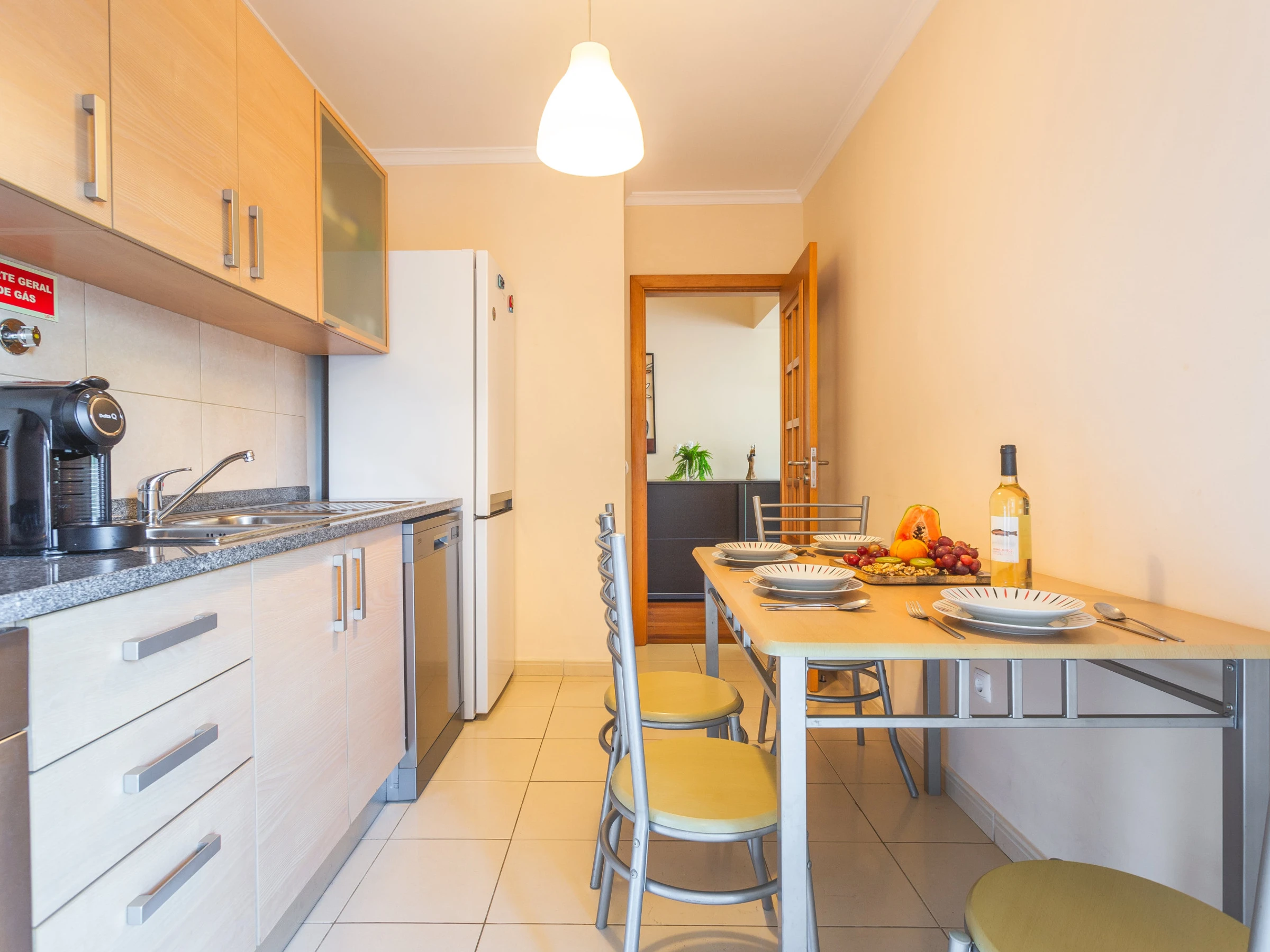 L'appartement dispose d'une chambre spacieuse avec un lit queen size et d'un canapé-lit individuel dans l'espace commun. Vous trouverez une salle de bain bien équipée avec douche, et la cuisine est entièrement équipée avec réfrigérateur, congélateur, four, micro-ondes, plaque de cuisson, couverts, assiettes et lave-vaisselle. Pour plus de commodité, une machine à laver, un sèche-cheveux et une machine à café sont également fournis.