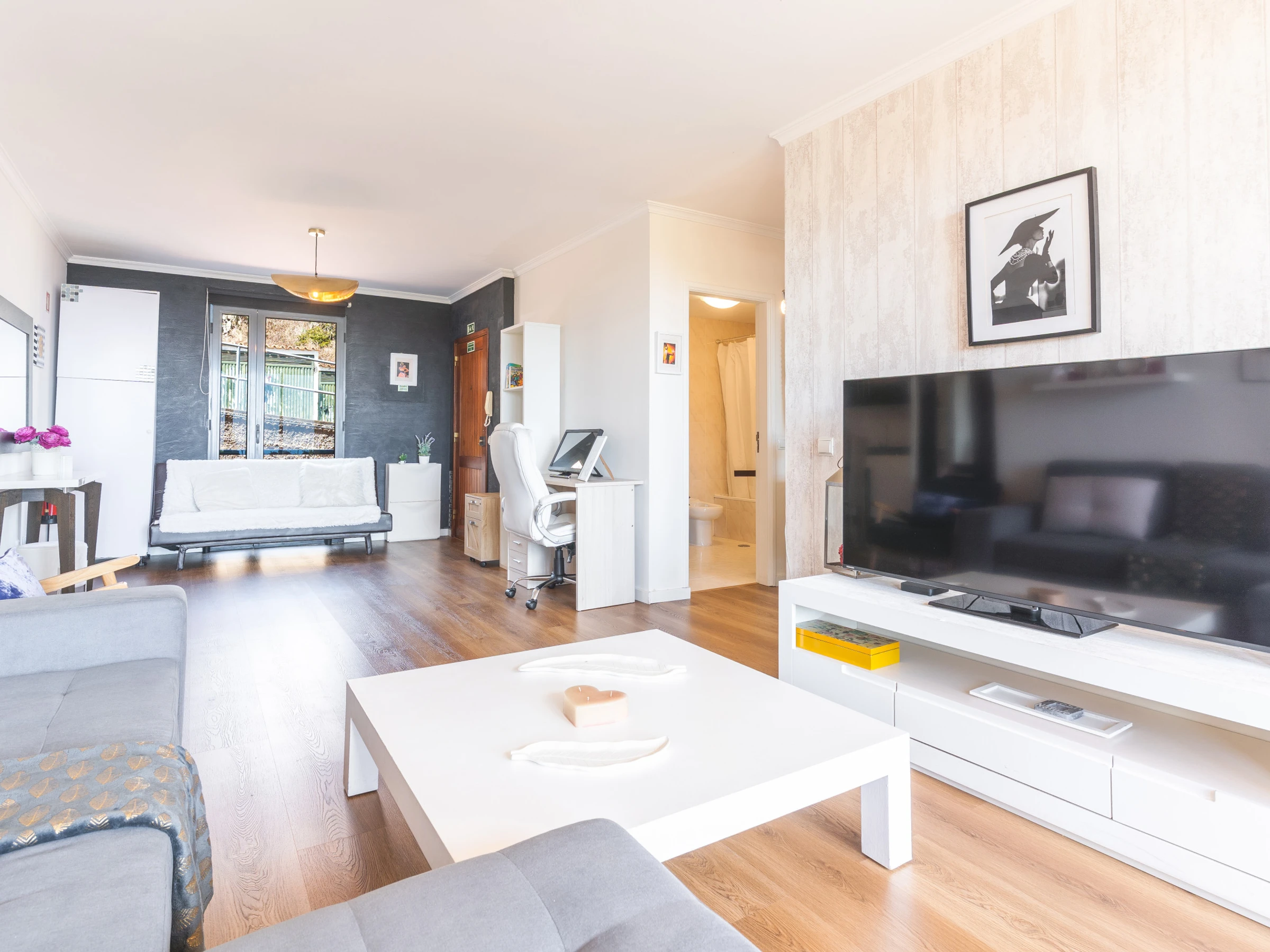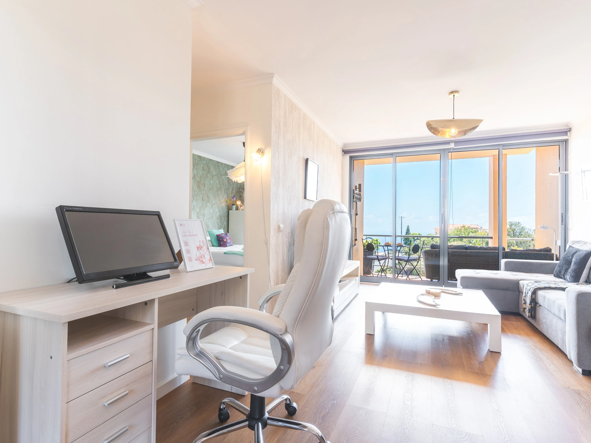 L’un des atouts de l’appartement est sa vue sur la mer, visible depuis le salon et le petit balcon meublé, parfait pour se détendre en admirant l’Atlantique.