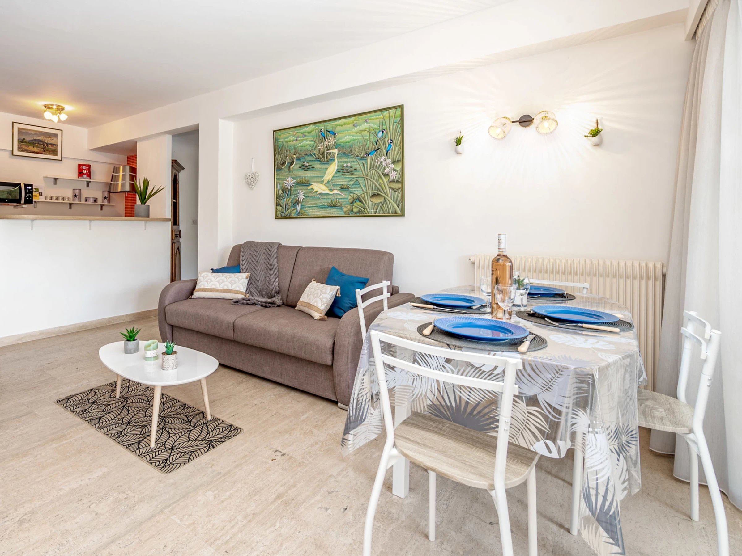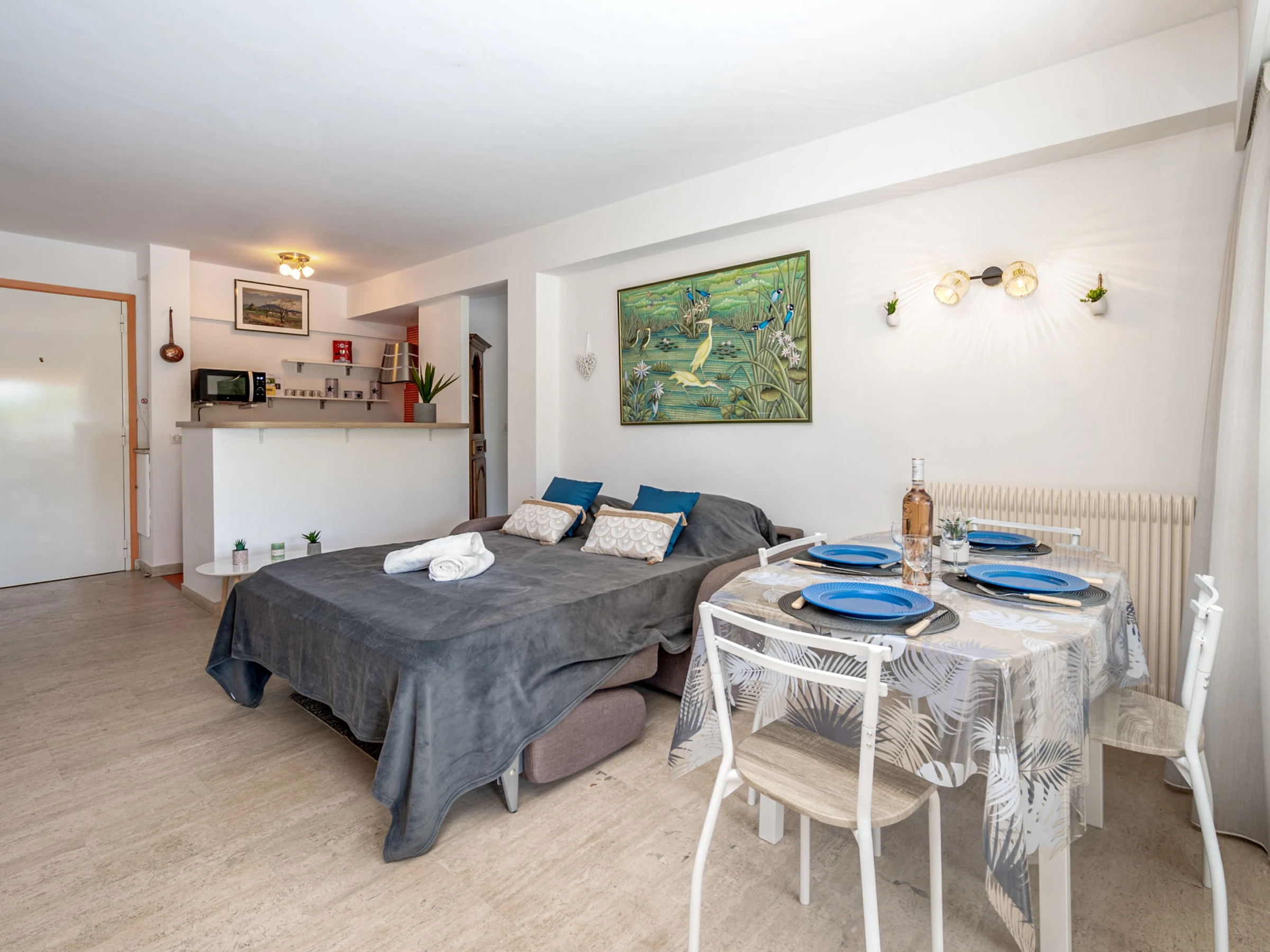 Apt 2 pièces 44 m2 au 1er étage. Aménagement confortable: séjour/salle à manger avec 1 divan-lit double (140 cm, longueur 190 cm), TV (écran plat), air-conditionné. Sortie sur la terrasse. 1 chambre avec 1 grand-lit (140 cm, longueur 190 cm), air-conditionné. Sortie sur la terrasse. Cuisine ouverte (lave-vaisselle, 4 plaques vitrocéramiques, grille-pain, bouilloire électrique, four micro-ondes, congélateur, cafetière électrique). Douche/WC. Terrasse 14 m2, situation est. Meubles de terrasse. A disposition: lave-linge. Internet (Connexion WIFI, gratuit). Veuillez noter: détecteur de fumée. Annonce d'un particulier (art 155, IV du CGI). [hidden]