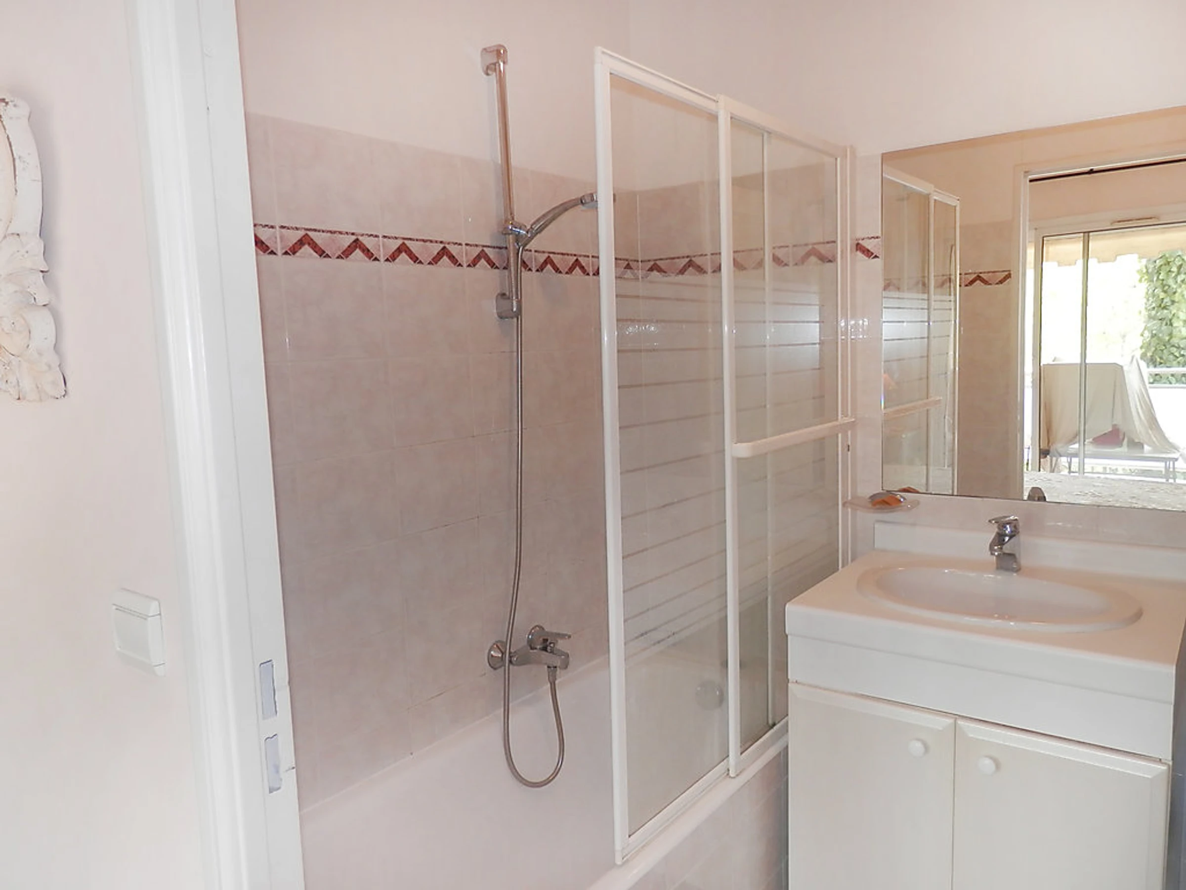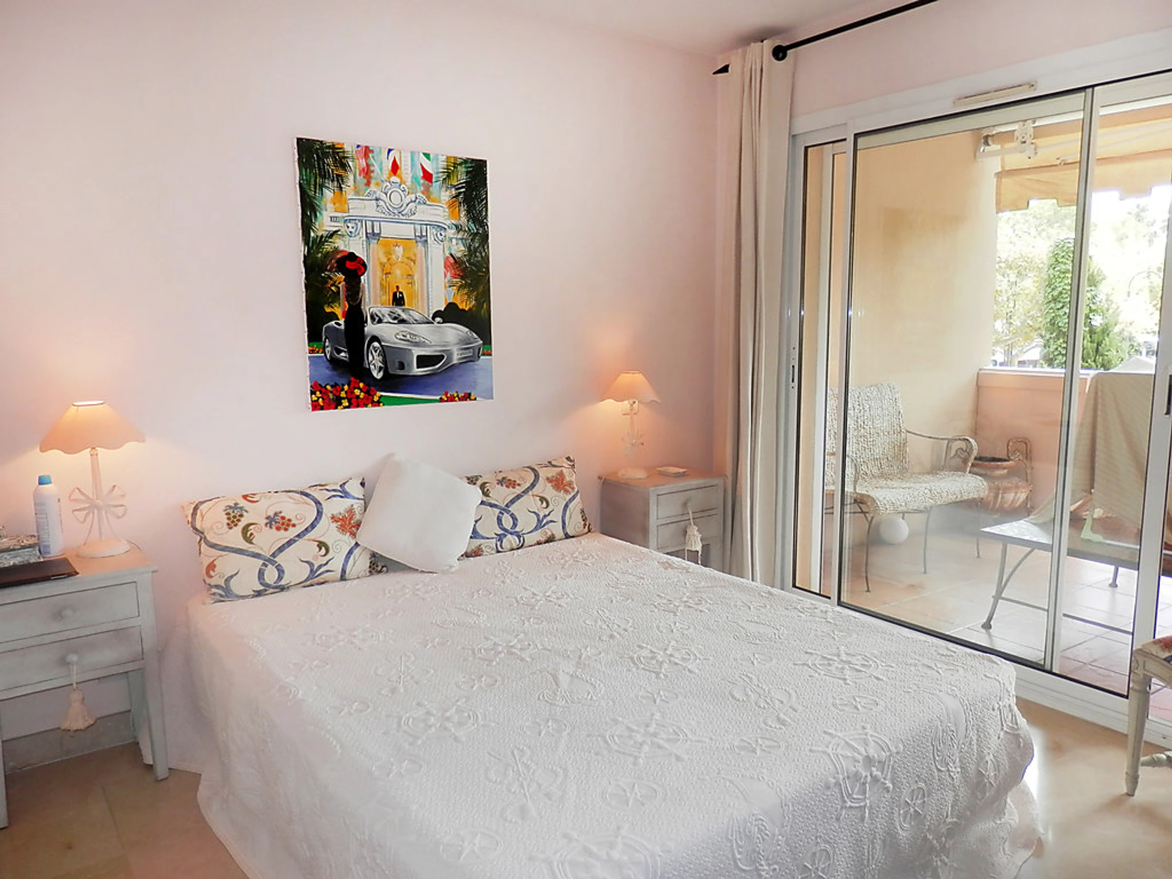 Apt 3 pièces 70 m2 au 1er étage, aménagement très agréable et de style: séjour/salle à manger avec TV. Sortie sur la terrasse. 1 chambre avec 1 grand-lit (140 cm), bain/WC et TV (écran plat). 1 chambre avec 1 grand-lit (160 cm), bain/bidet/WC. Sortie sur la terrasse. Cuisine (4 plaques de cuisson, four, lave-vaisselle, congélateur). WC séparé. Chauffage électrique. Grande terrasse 20 m2, couverte, situation sud. Meubles de terrasse. A disposition: lave-linge. Garage No 17. Veuillez noter: logement pour non fumeurs. Services supplémentaires obligatoires sur le site: Taxe de séjour enfants (par personne et par jour), Taxe de séjour 1.3EUR par personne et par jour, Taxe de séjour bébés (0-2) (par personne et par jour)