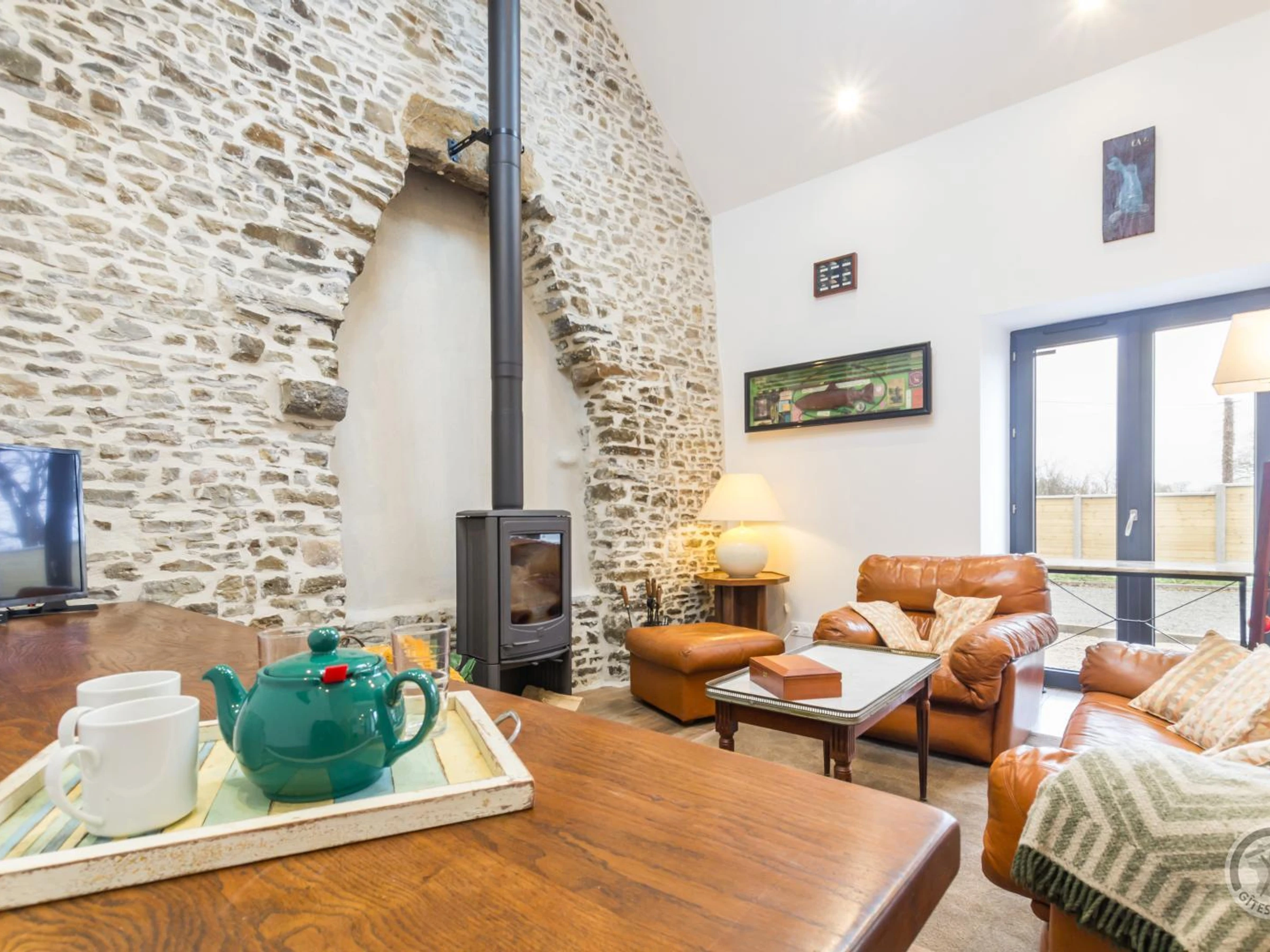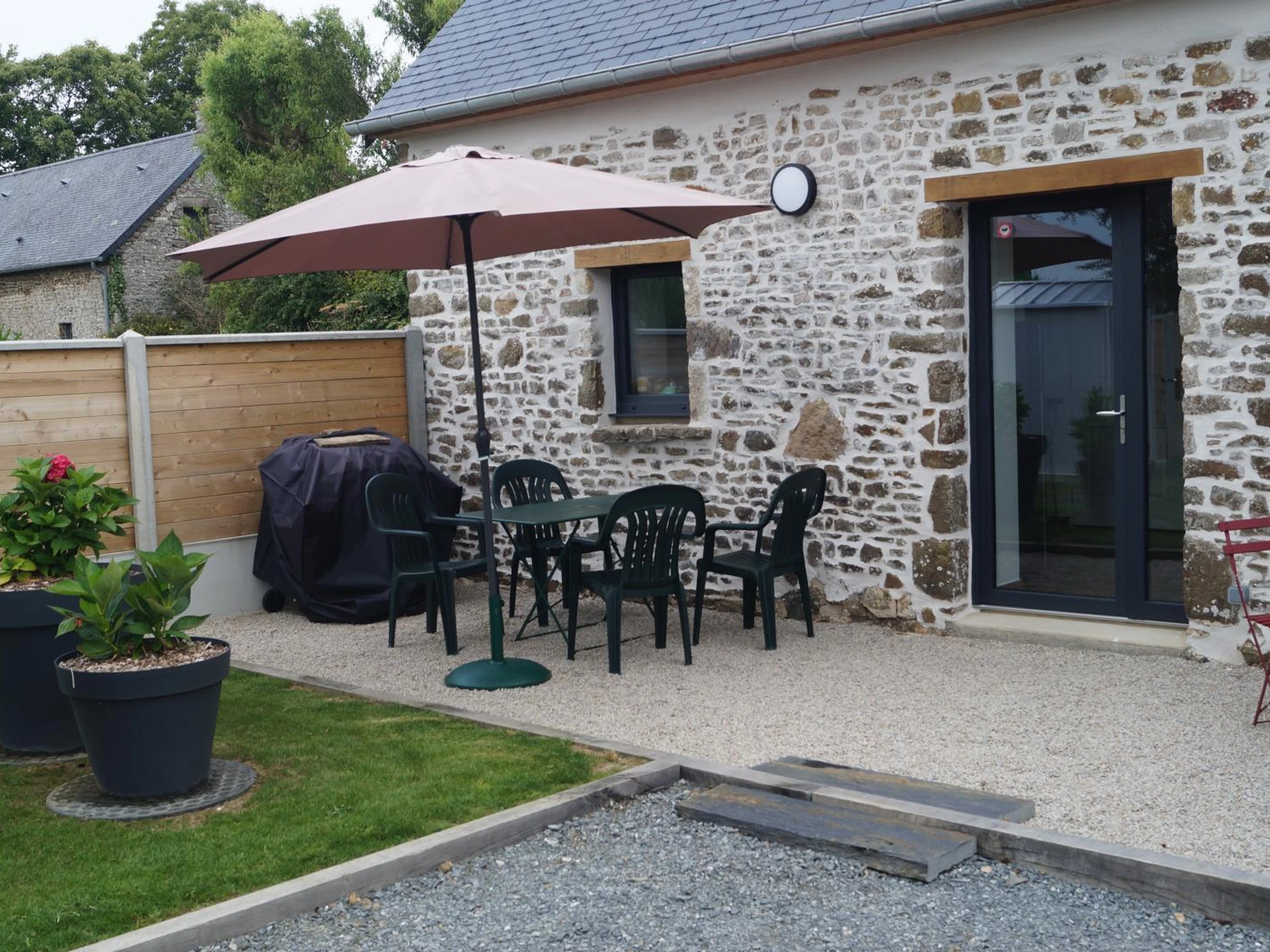 Maison indépendante. Séjour avec poêle à bois (TV par satellite, chaine hifi bluetooth). Coin-cuisine équipé (four, plaques induction 4 feux, lave-vaisselle, réfrigérateur avec congélation, micro-ondes, machine à expresso). Wc indépendant. Salle d'eau (lave-linge et sèche-linge). Débarras. A l'étage, palier mezzanine avec bureau. Chambre (1 lit 160x200). Draps et linge de toilette fournis. Lits faits à l'arrivée. Service ménage en supplément. Chauffage électrique en supplément. Jardin clos privé. Salon de jardin. Transats. Plancha. Parking. Perchée sur sa colline en retrait du havre de Portbail, cette maisonnette débute avec vous un nouveau chapitre de sa longue histoire... Autrefois chapelle, devenue un temps pressoir, la voilà aujourd'hui gîte douillet grâce aux efforts de Christian et Pascale les propriétaires. Habitant la maison voisine, ils ont entièrement réhabilité ce petit édifice très authentique et imaginé un intérieur confortable pour 2 personnes. Vous apprécierez notamment le salon généreux autour du poêle à bois, la décoration personnalisée avec les oeuvres de toute la famille et la cuisine parfaitement équipée. Passionné de cuisine, Christian a doté le gîte de nombreux ustensiles et matériels de qualité. De quoi tester les bons produits locaux! La côte des Isles et le Cotentin vous attendent.