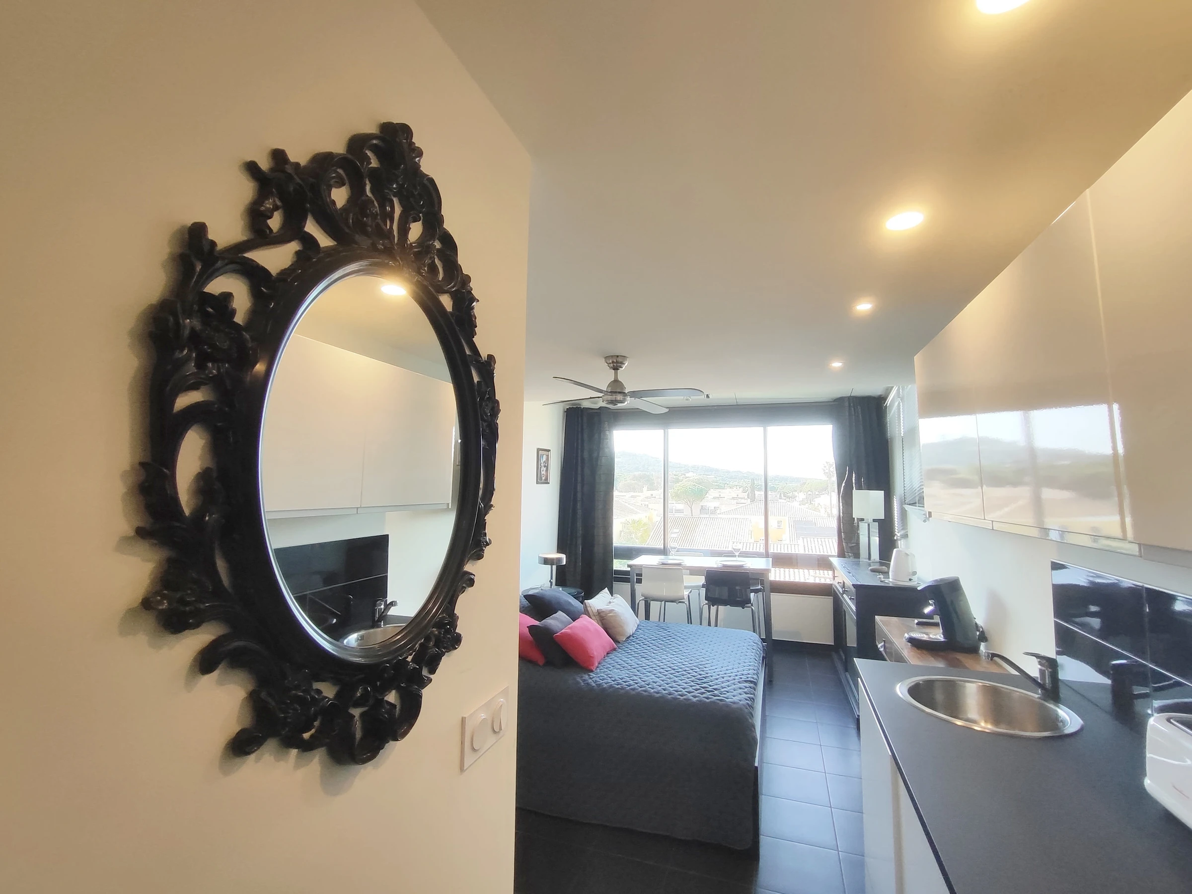 Studio pour 2 personnes, situé Résidence Port Vénus, avec accès gratuit à la piscine. Au 3ème étage avec ascenseur, côté piscine. Séjour avec lit en 140 cm. Coin cuisine avec micro-ondes, cafetière Senséo, gille-pain et bouilloire. Salle d'eau avec WC. Pas de de terrasse. Parking privé n°R315.