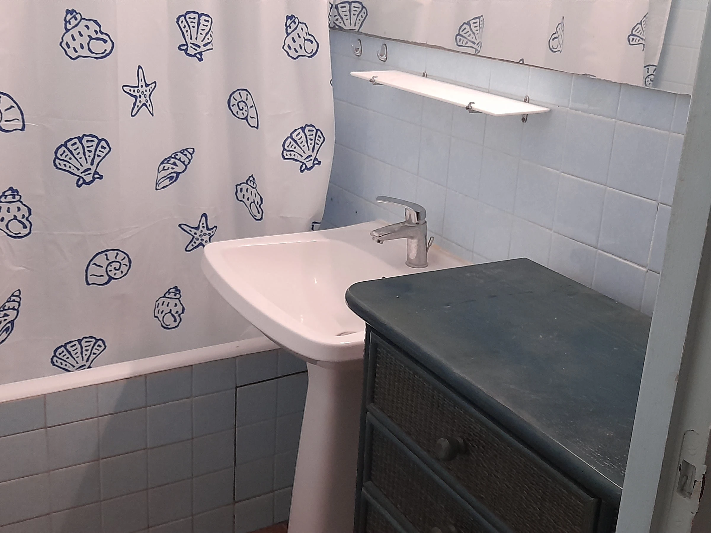 Studio 2 personnes, état d'usage, situé à Héliopolis Entrée E, au 2ème étage avec ascenseur côté rue. Séjour avec un lit en 140 cm. Coin cuisine avec grand réfrigérateur, micro-ondes, bouilloire, télévision, raffraichisseur d'air et ventilateur plafonnier. Salle de bain. Wc séparés. Terrasse avec store banne. Pas de parking.