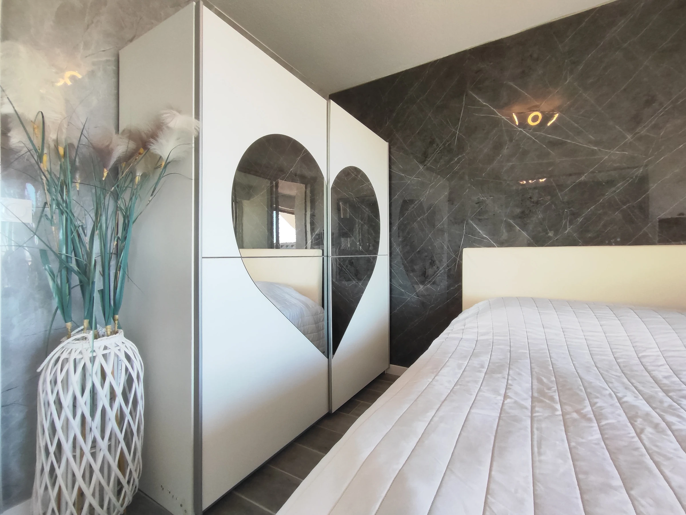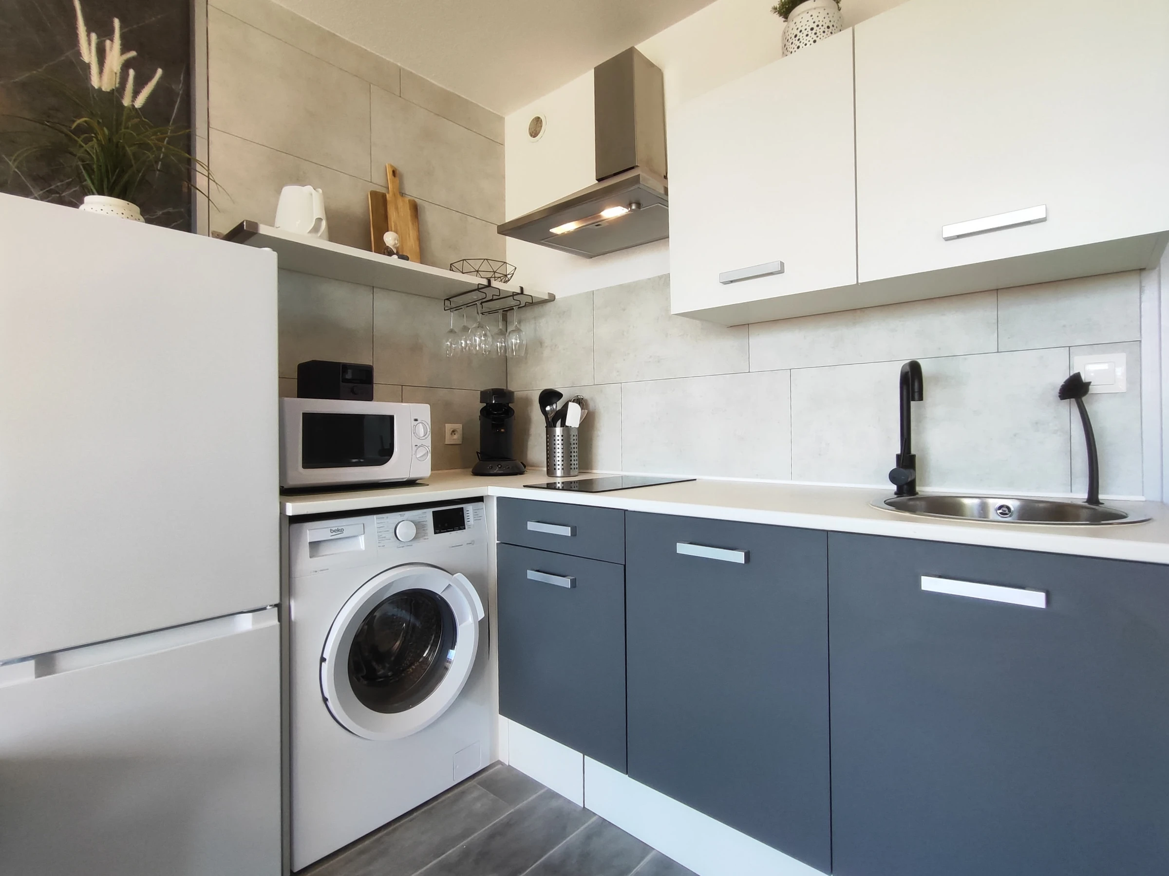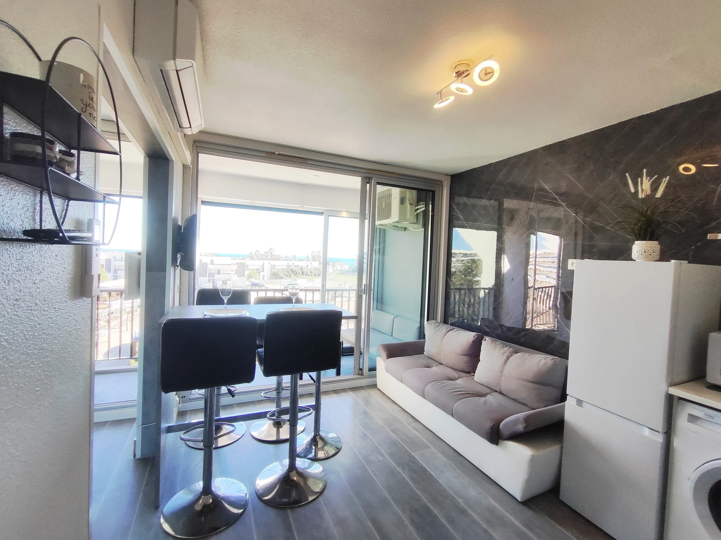 Joli appartement climatisé pour 2/4 personnes, situé à Héliopolis entrée FGH, au 3ème étage sans ascenseur. Séjour avec coin cuisine avec micro-ondes, cafetière, Senséo, bouilloire, aspirateur, lave linge.. Coin chambre avec un lit dans en 160 cm. Un canapé dans le séjour. Salle d'eau WC séparés. 2 Balcons communicants (10 m² ). Parking n° 30.