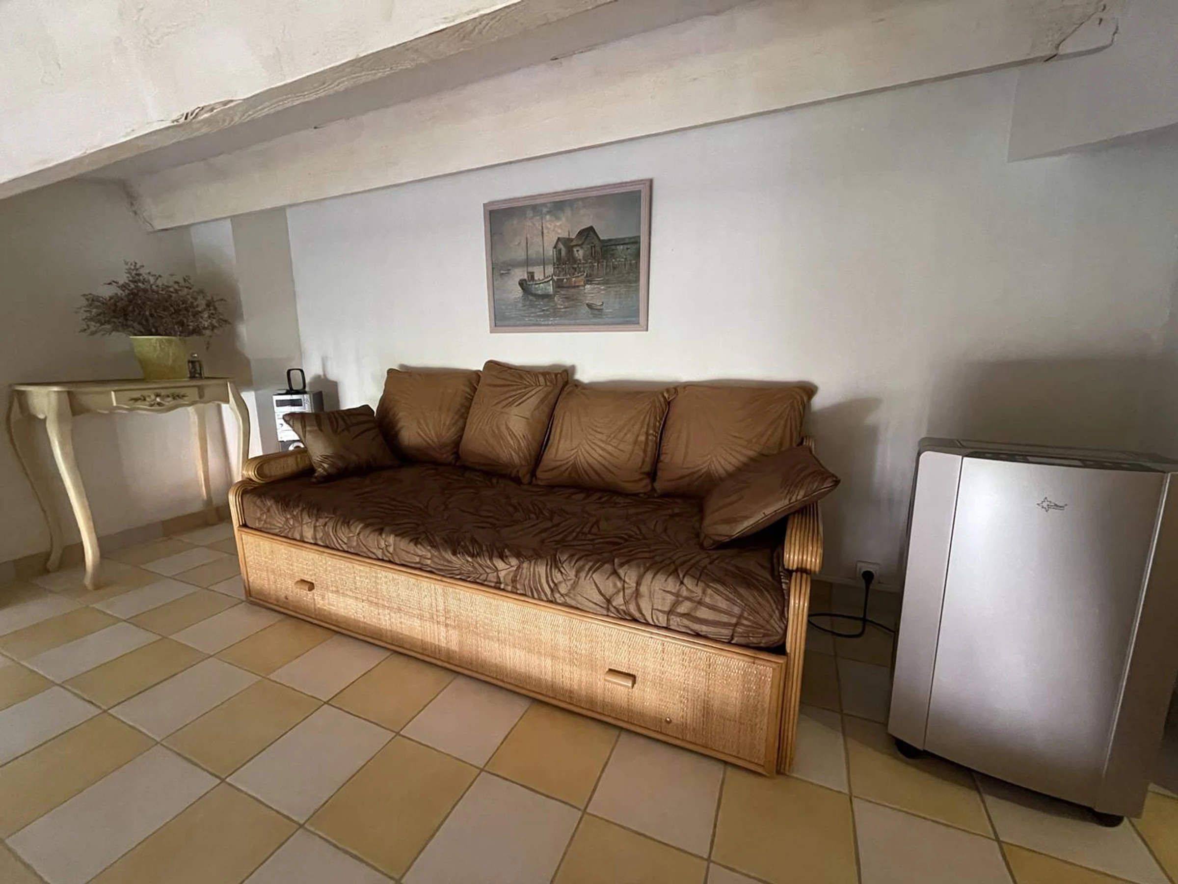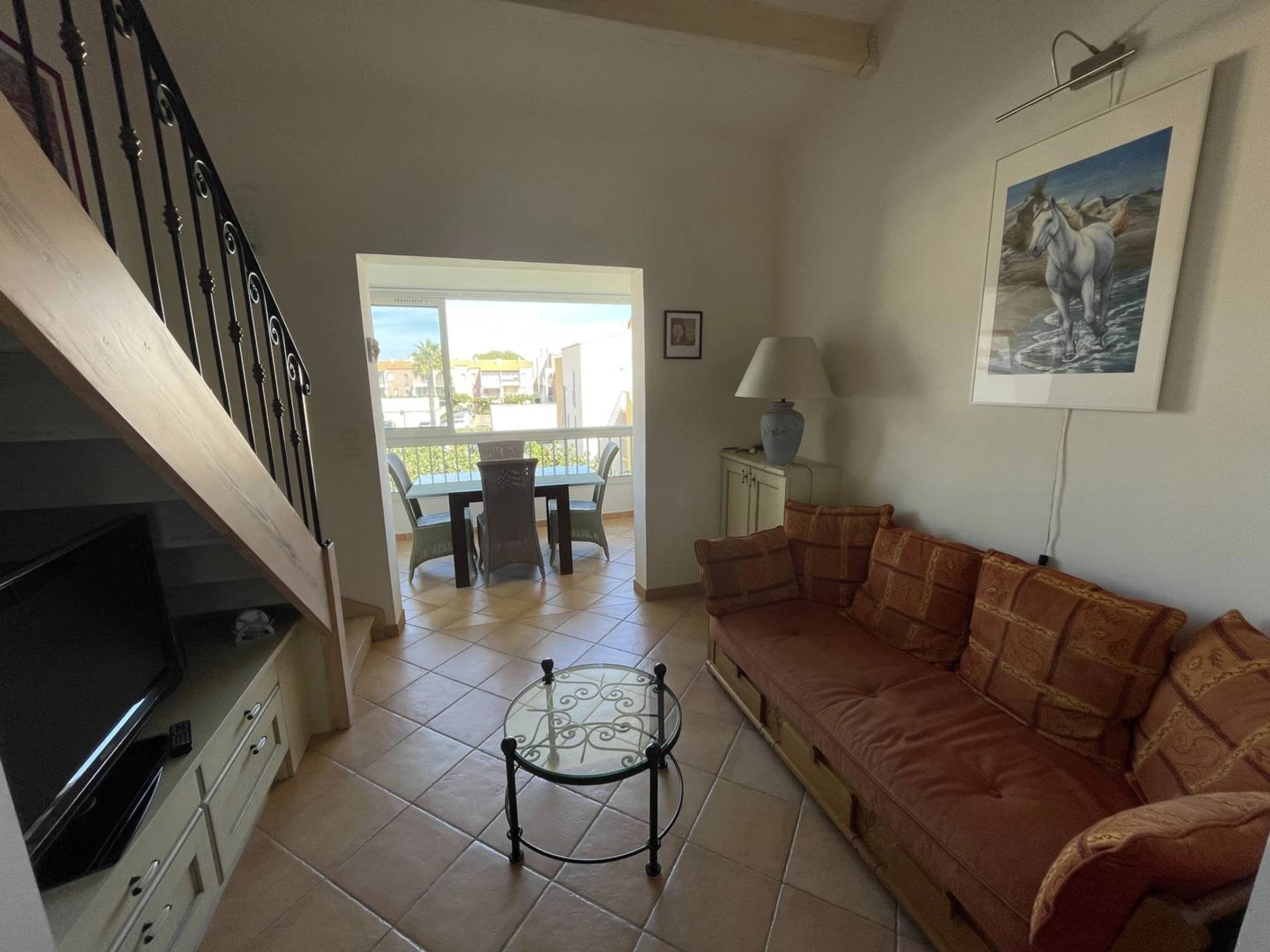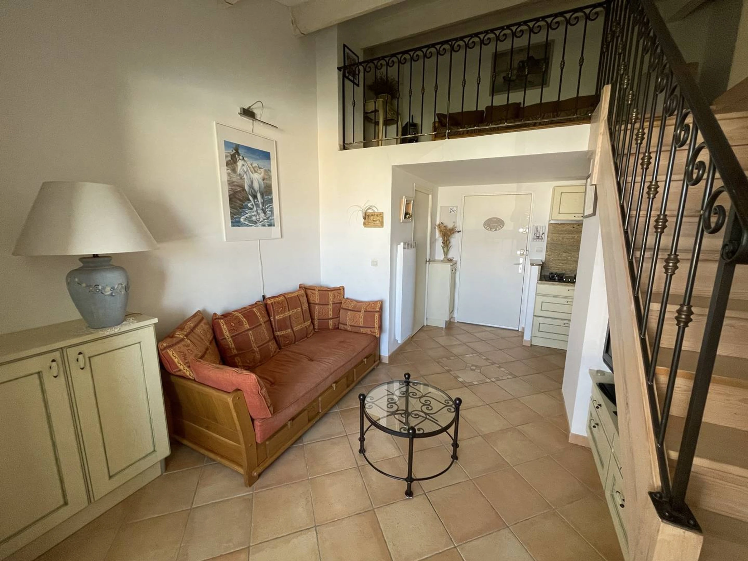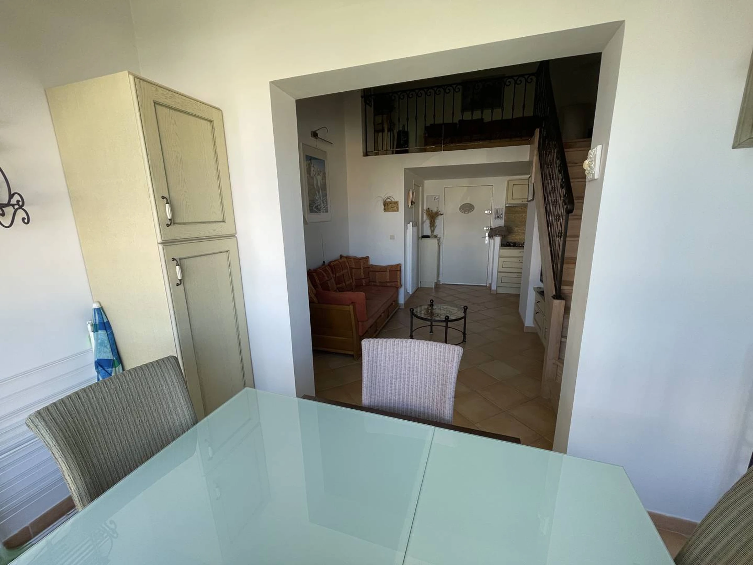 Cet appartement situé au 2ème et dernier étage il comprend au rez-de-chaussée une pièce à vivre avec une cuisine ouverte entièrement équipée (type cafetière : filtre), un espace salon, une loggia, une chambre avec un lit double, une salle d'eau et un wc indépendant. A l'étage une mezzanine avec un lit simple et une banquette faisant office de quatrième couchage. Le tout donne sur les jardins et la piscine de la résidence. Pour plus de confort il y a une place de parking privative. Cette location est parfaite pour une famille souhaitant passer de belles vacances sous le soleil du Cap d'Agde sans avoir à prendre la voiture. En effet tout est accessible à pied en quelques minutes : la plage, le centre port, les bars, restaurants, commerces, activités nautiques et animations diverses ainsi que les nombreux marchés qui rythment la saison estivale. En outre la résidence possède de nombreux services : piscine avec pataugeoire, salle de sport, laverie, aire de barbecue et pique nique ombragée.