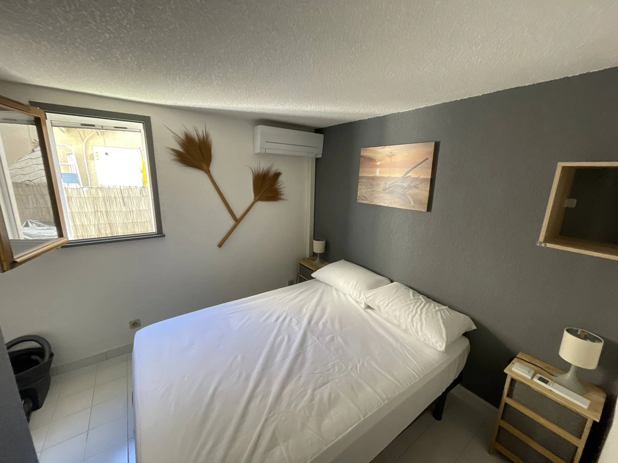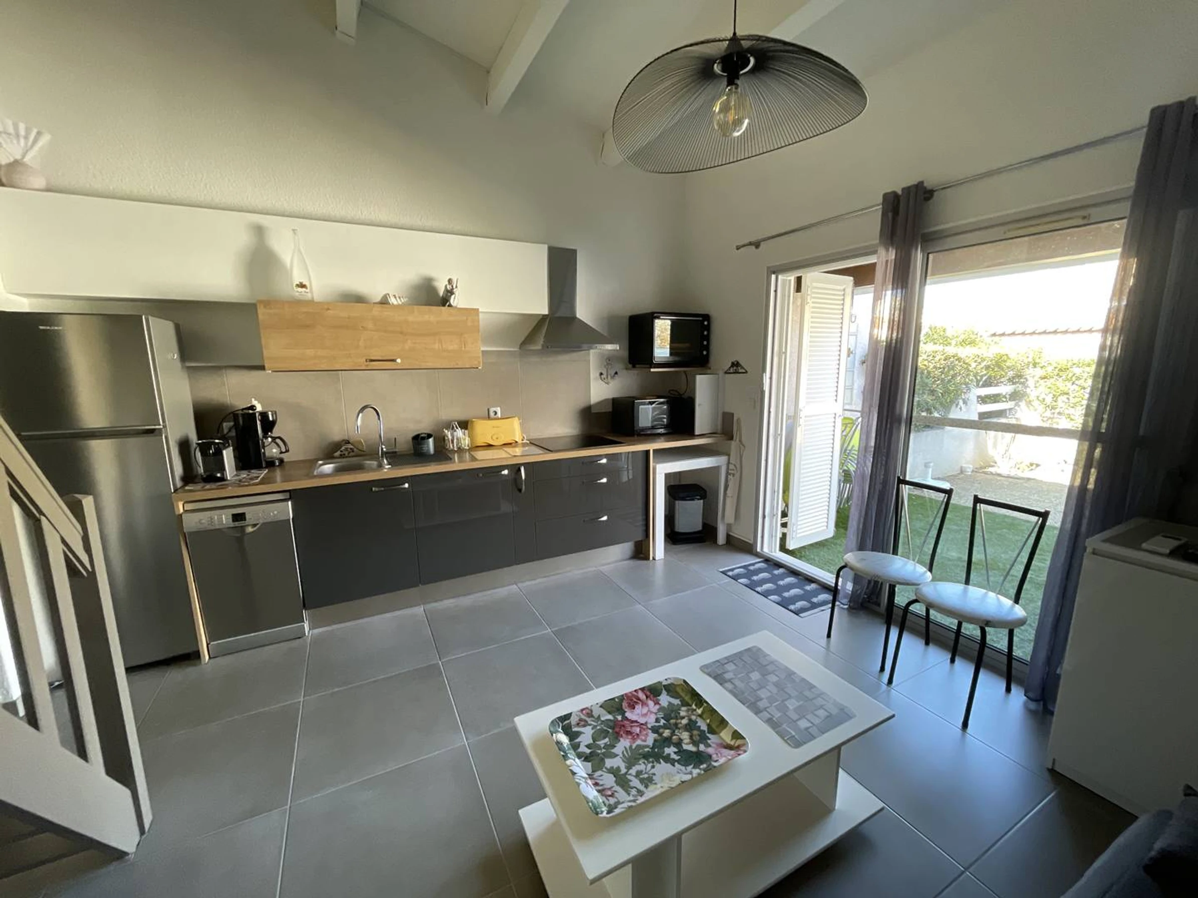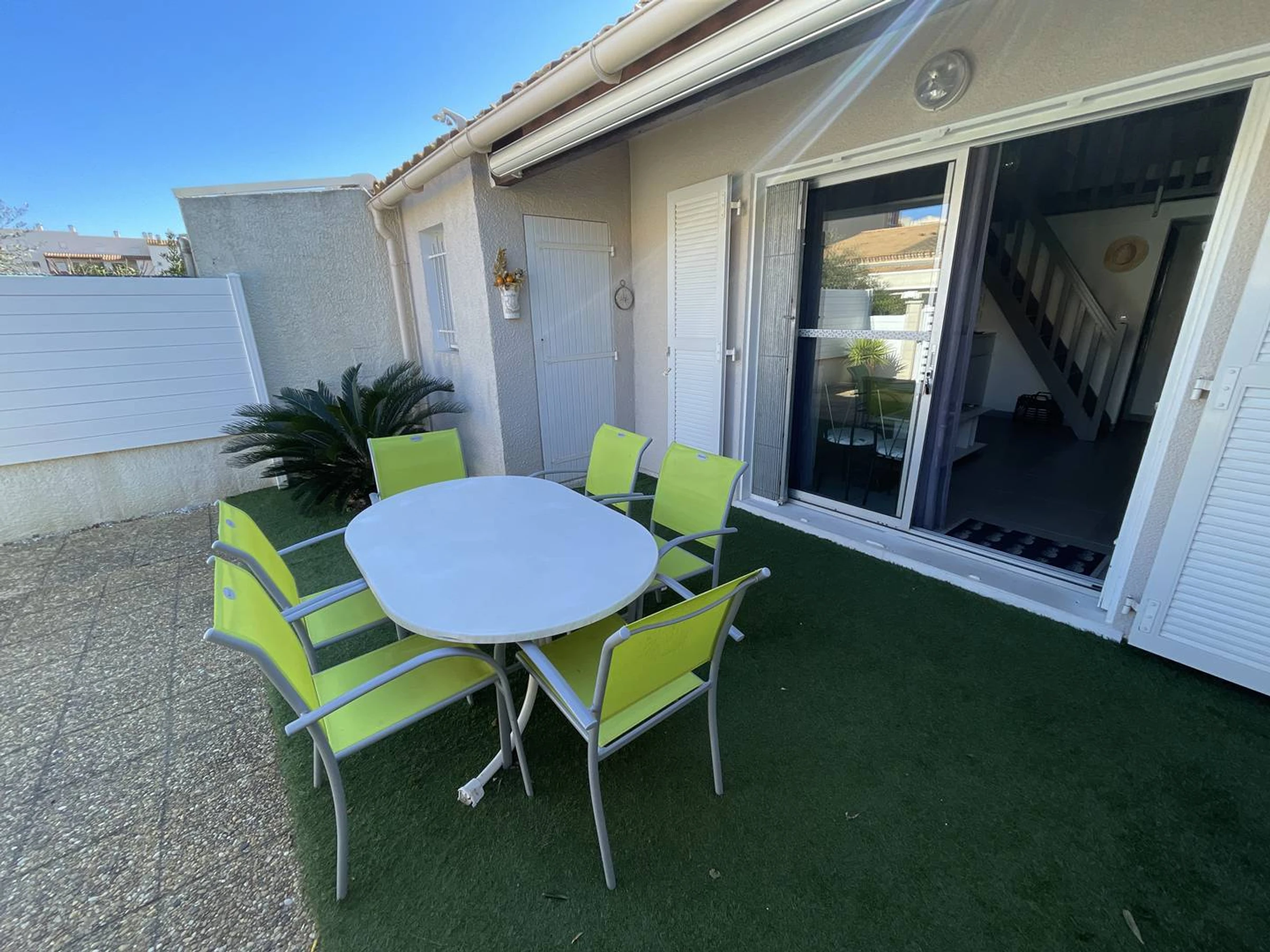 Cette agréable villa climatisée se situe dans la résidence les cristallines, à deux pas de la plage Richelieu. Elle comprend au rez-de-chaussée une pièce à vivre avec une cuisine ouverte entièrement équipée, un espace salon avec un canapé convertible, une chambre avec un lit double et un placard, un salle d'eau et un wc indépendant. A l'étage une chambre en mezzanine qui permet d'accueillir deux couchages supplémentaires. Le tout donne sur une vaste terrasse où il est agréable de prendre ses repas et se relaxer en toute tranquillité. Pour plus de confort il y a une place de parking privative et pour le plus grand bonheur des enfants il y a une piscine dans la résidence. Location parfaite pour passer de belles vacances sous le soleil du Cap d'Agde sans avoir à prendre la voiture. Le centre port où l'on trouve les restaurants, bars, commerces, activités nautiques et animations diverses est accessible à pied en quelques minutes, tout comme la plage Richelieu, l'Ile des loisirs et les nombreux marchés qui rythment la saison estivale. Il est également possible de faire de belles balades en vélo en toute sécurité grâce aux nombreux kilomètres de pistes cyclables qui parcourent toute la station.