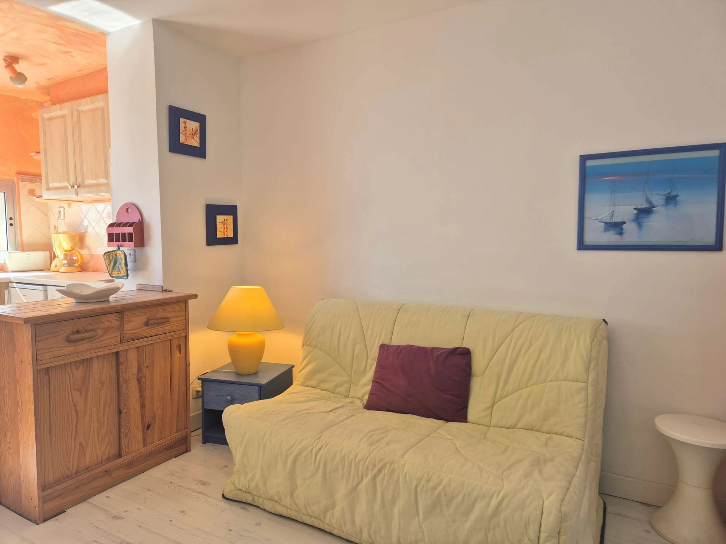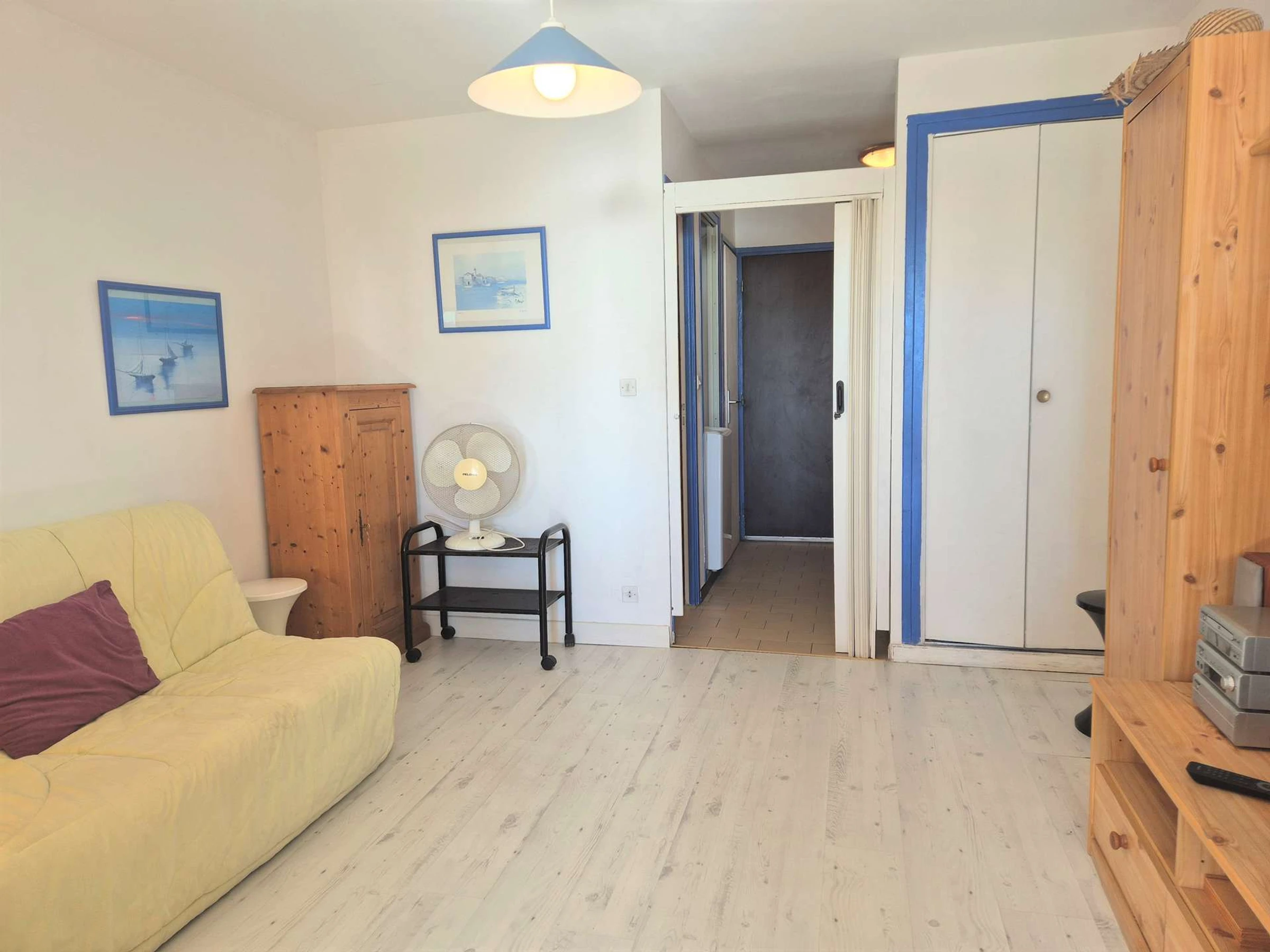 Cette location d'appartement située au 3ème étage, comprend un séjour avec un canapé convertible de type BZ deux places, une cuisine équipée, une salle de douche, un coin cabine avec des lits superposés et des WC séparés.