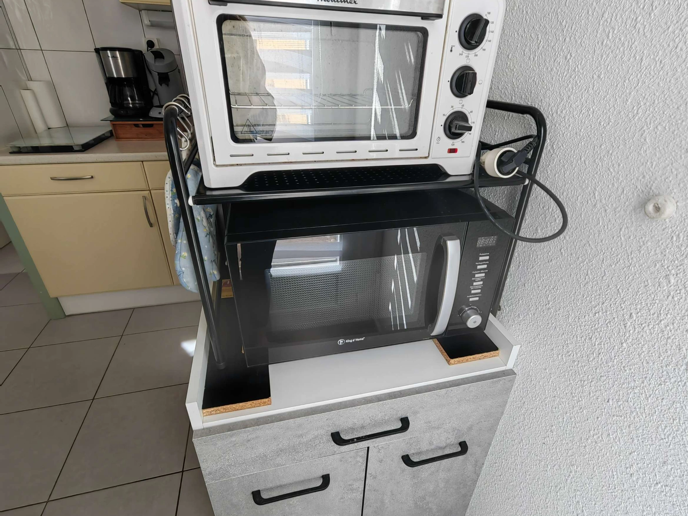 Cet charmant appartement décoré avec goût est composé d'un séjour avec canapé convertible, d'un espace cuisine équipée ( micro onde, mini four, plaque induction 2 feux, frigo, cafetière électrique, cafetier Dolce Gusto, grille pain).