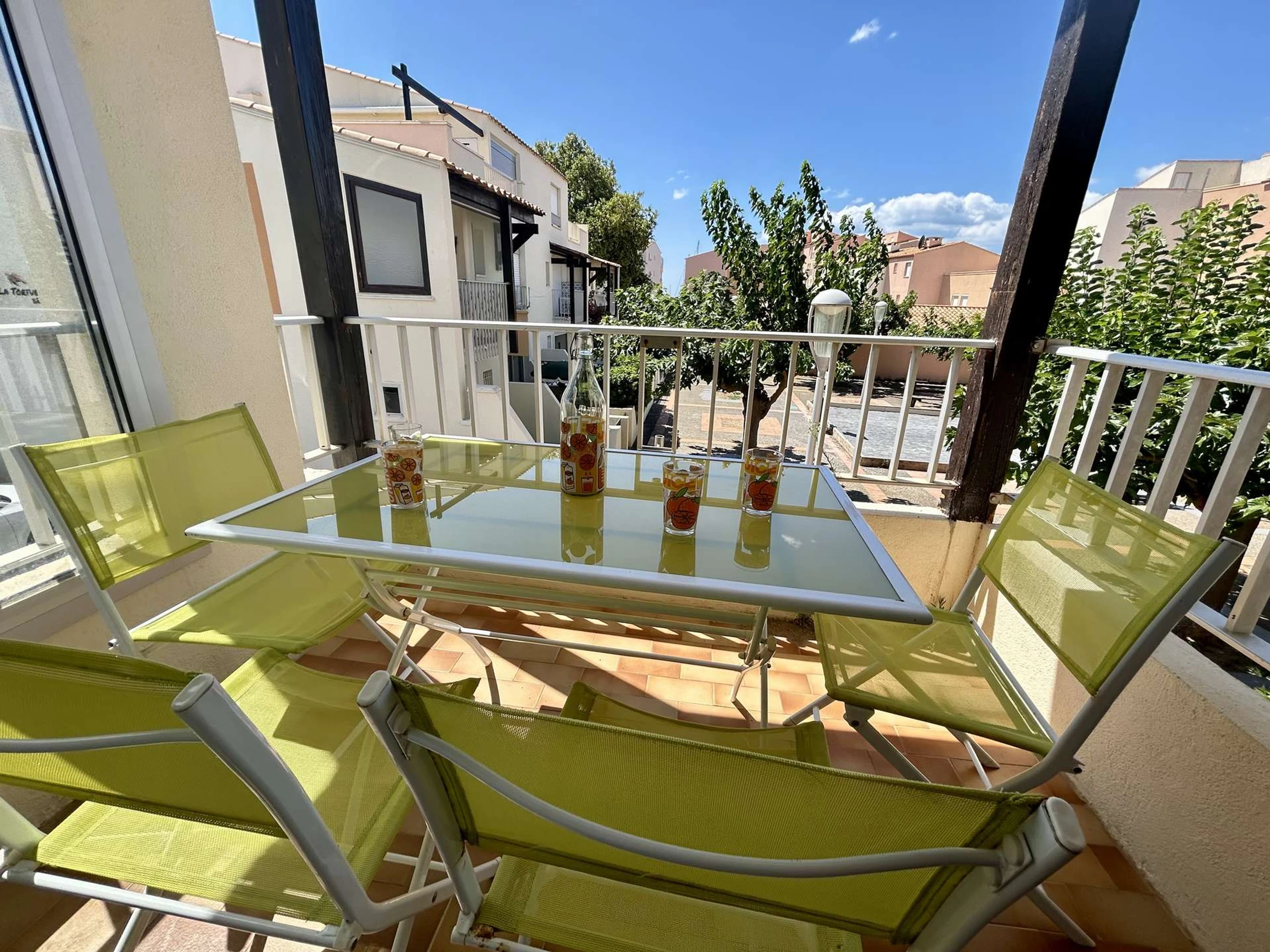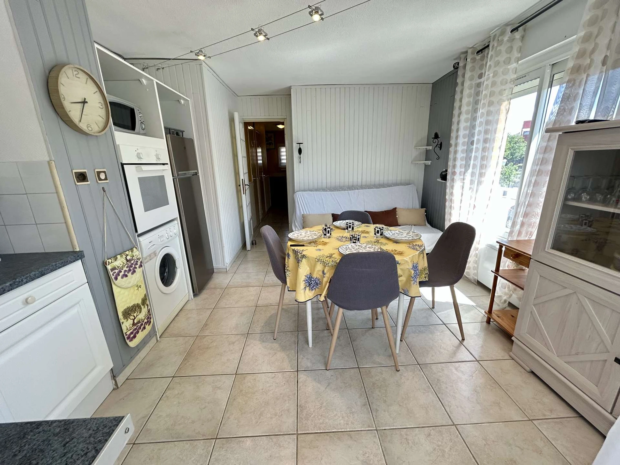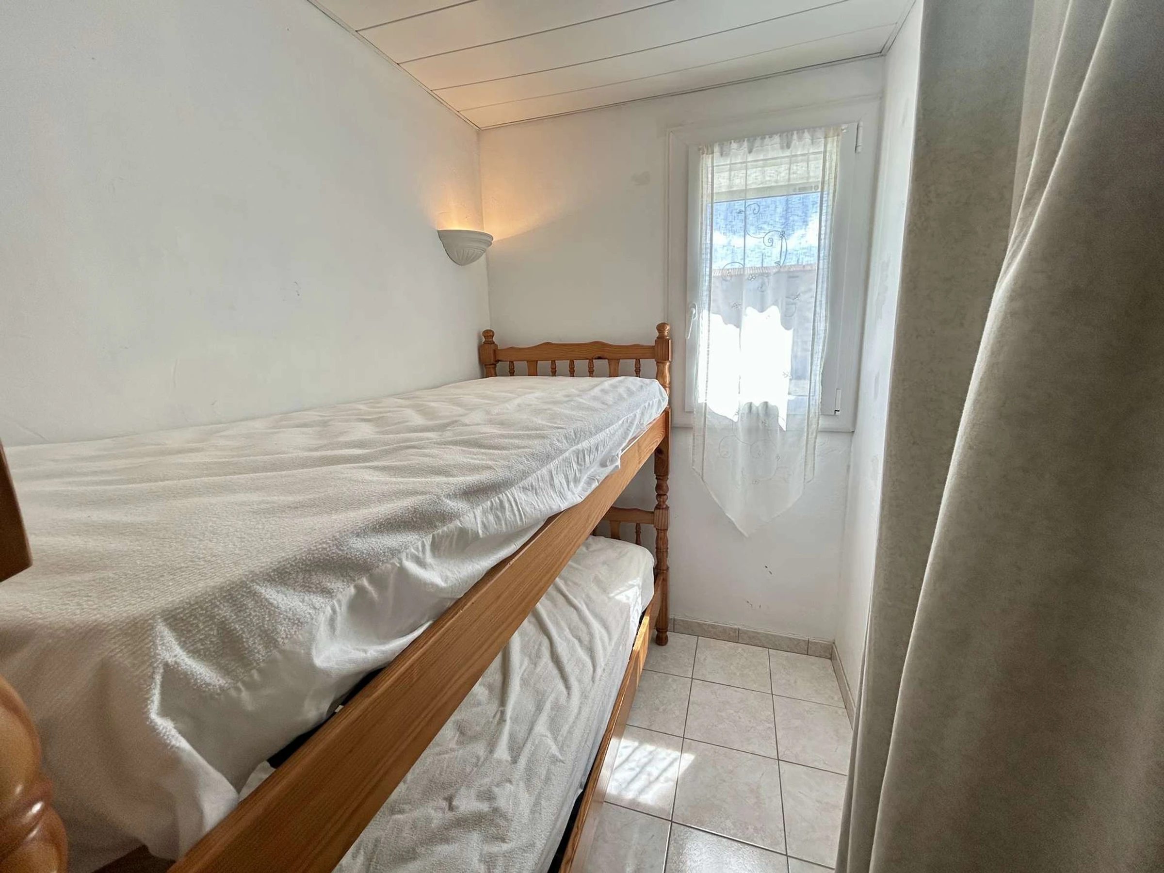 Cet appartement de vacances, situé au 1er étage, comprend un séjour avec un canapé et télévision, une chambre avec lit en 140, une cabine avec 2 lits superposés, un coin cuisine, une salle de bain et WC indépendant .