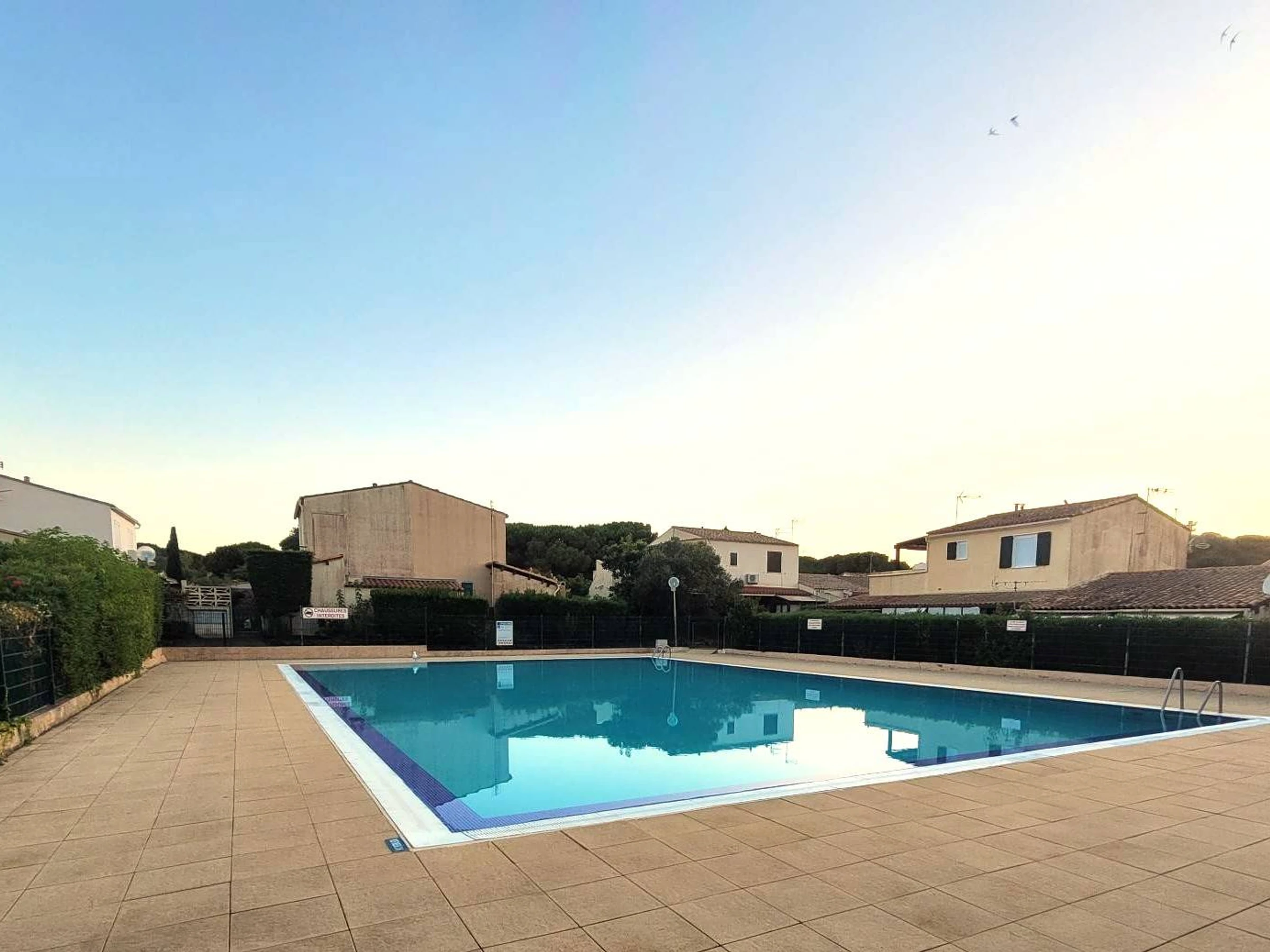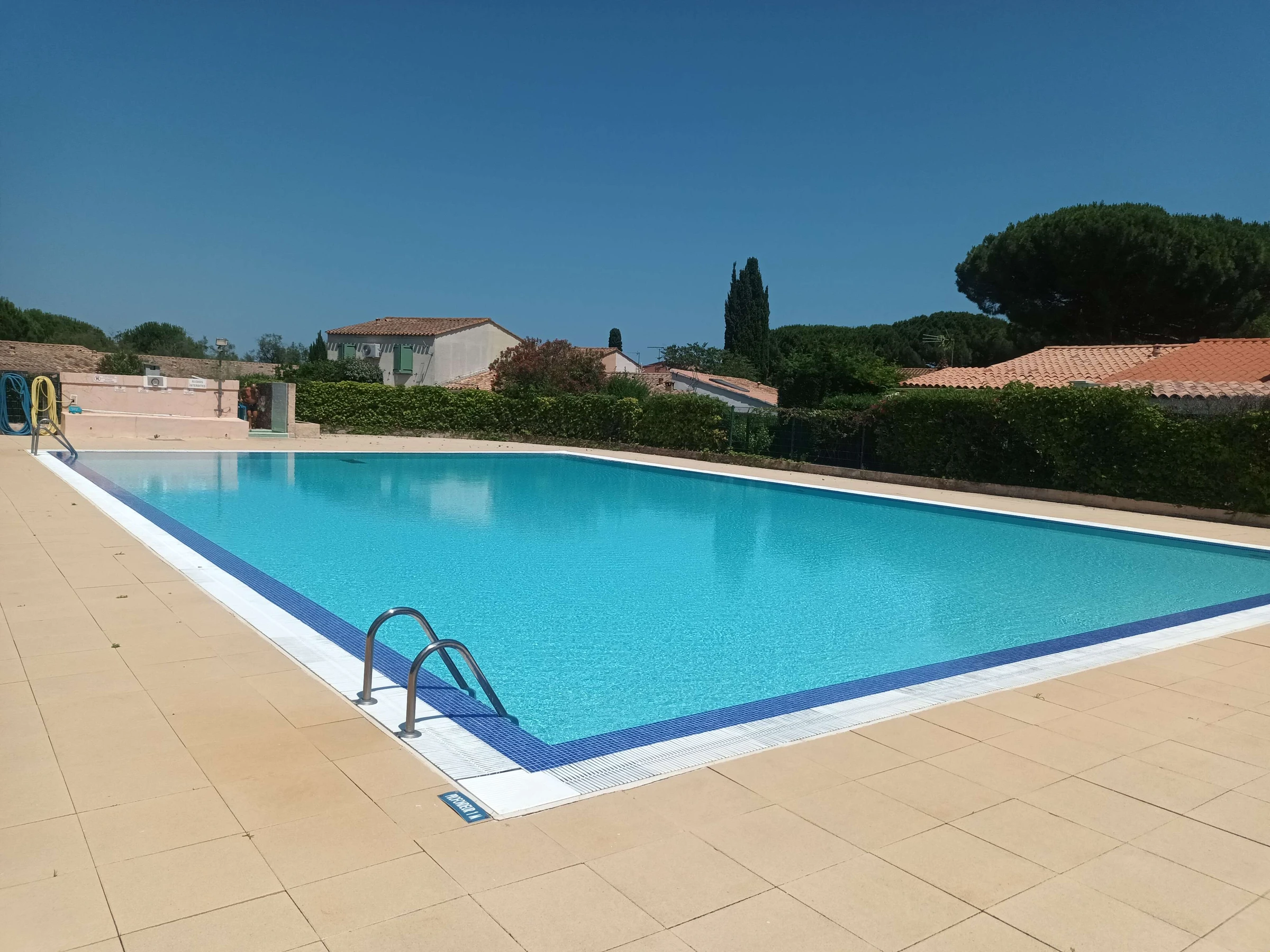 En commun: jardin (clôturé) plantes et arbres, piscine rectangulaire clôturée (21 x 14 m, profondeur 100 - 150 cm,ouverte du 15 Mai au 15 Septembre, horaires d'ouverture de la piscine: 08:30-20:30).