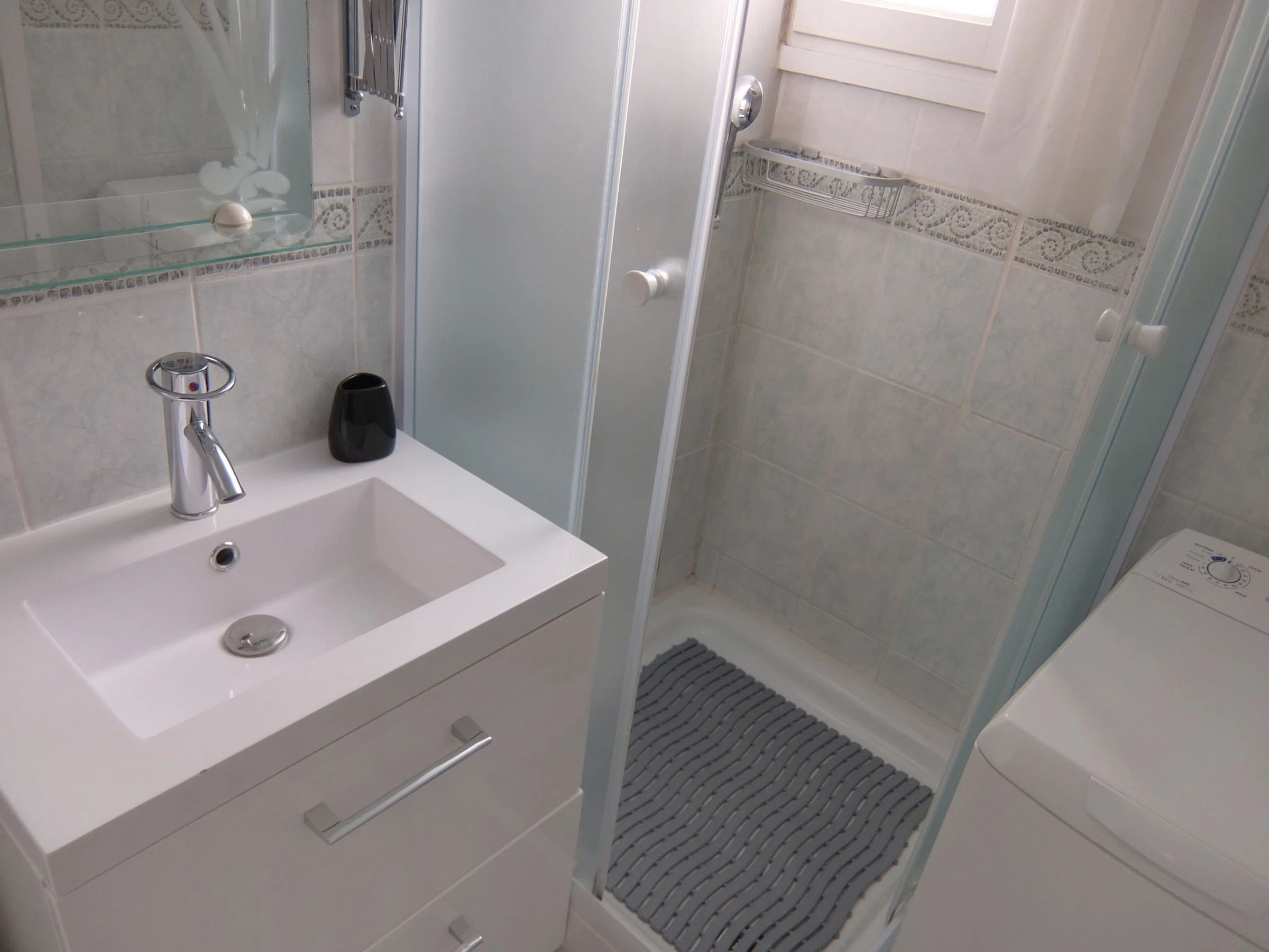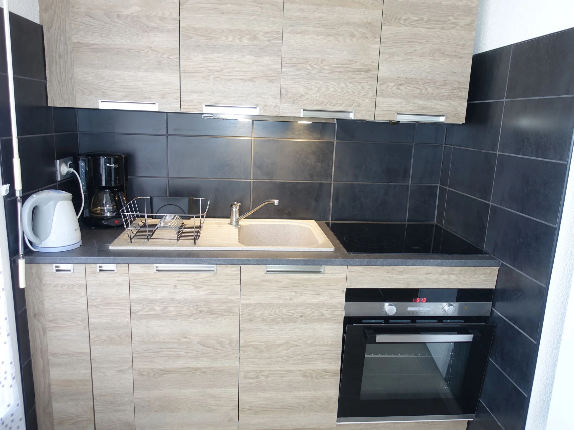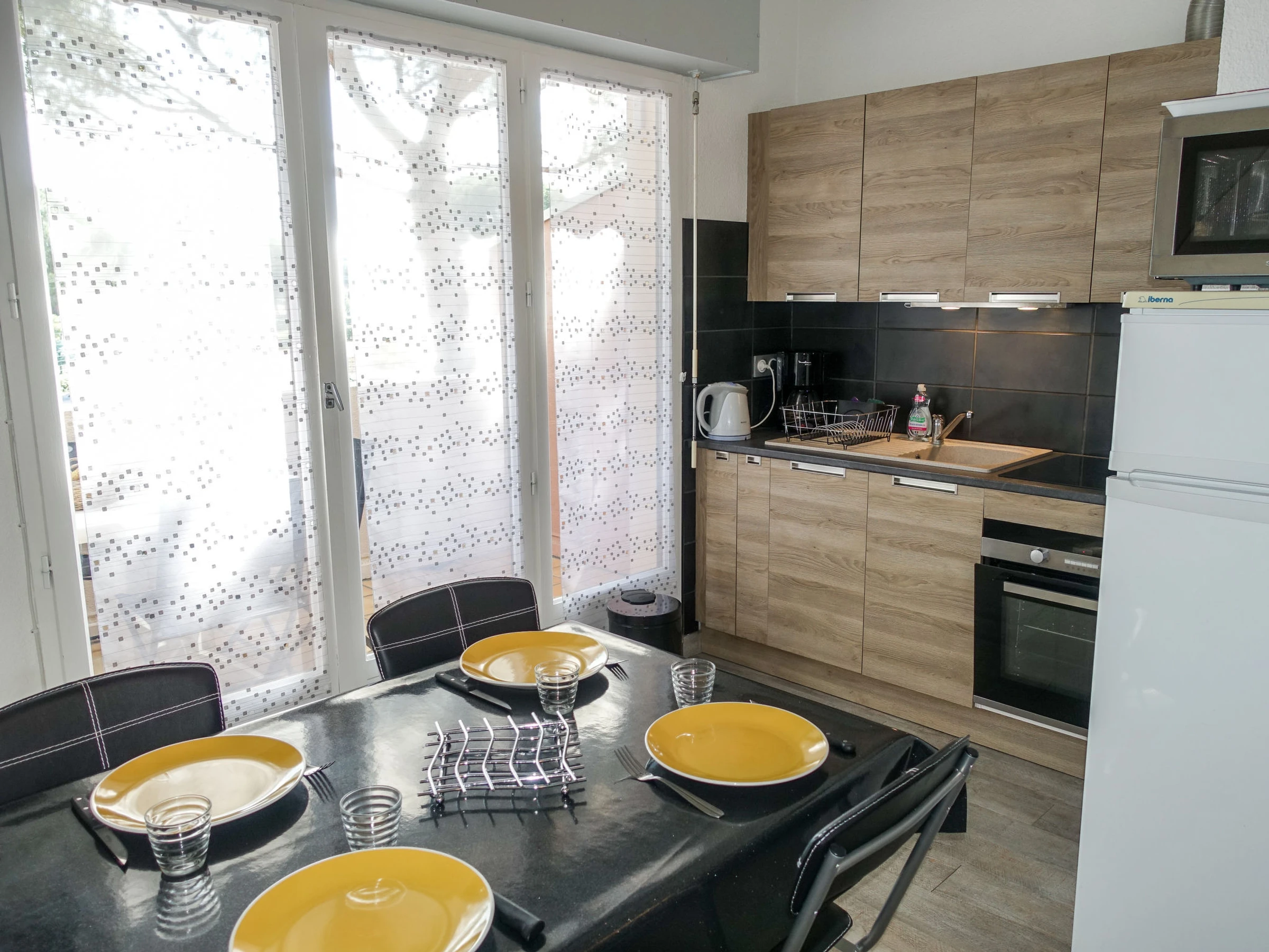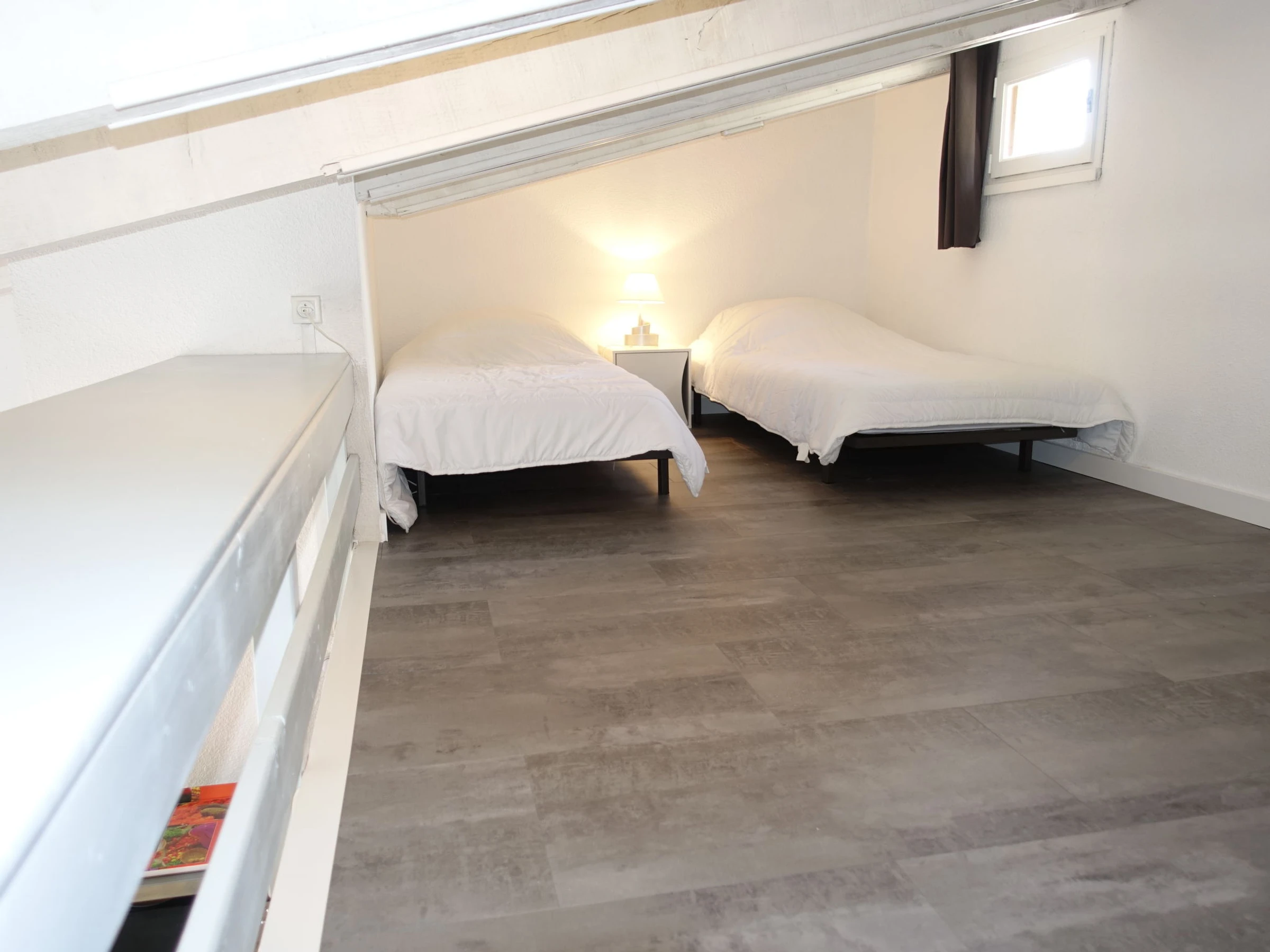 Apt 2 pièces 41 m2 sur 2 niveaux au 1er étage. Logement idéal pour 2 adultes + 2 enfants. Partiellement rénové en 2017, aménagement fonctionnel: séjour/salle à manger 12 m2 avec TV (écran plat), air-conditionné et chauffage à air chaud. Sortie sur la terrasse. 1 chambre avec 1 grand-lit (140 cm, longueur 190 cm). Cuisine ouverte (four, 4 plaques vitrocéramiques, four micro-ondes, congélateur, cafetière électrique). Douche/WC. Chauffage électrique. À l'étage supérieur: galerie ouverte avec 2 lits (90 cm, longueur 190 cm). Terrasse 7 m2. Meubles de terrasse. A disposition: lave-linge. Internet (Connexion WIFI, gratuit). Place de parking No 223. Veuillez noter: adapté(e) aux familles. Détecteur de fumée.