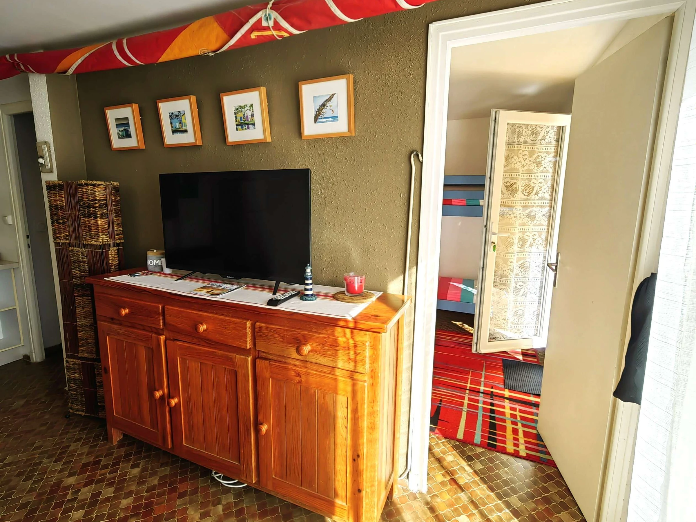 Idéal pour 6 personnes, il se compose d'un salon avec un canapé convertible (double couchages), une cuisine équipée (3 feux gaz + un électrique, une four, une micro-onde, réfrigérateur, cafetière électrique Krups, lave-vaisselle), d'une salle de bain avec douche, lavabo, WC et lave-linge, d'une chambre avec un lit double en 140 et un lit superposé avec 2 lits en 90 et pour finir d'une seconde chambre avec un lit en 140.