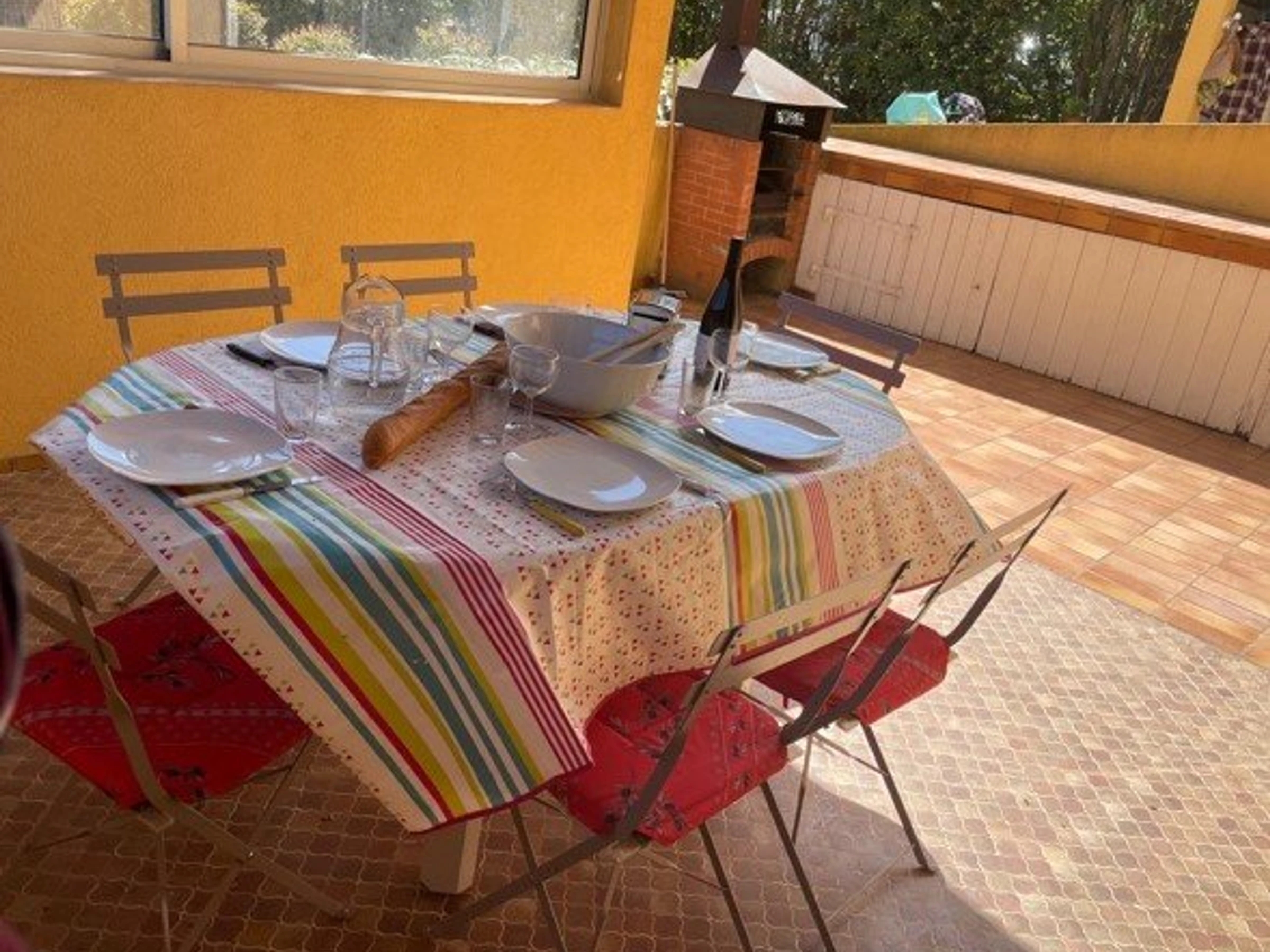 Vous pourrez profitez de la terrasse couverte pour y prendre vos repas, et grillades car elle dispose d'un barbecue.