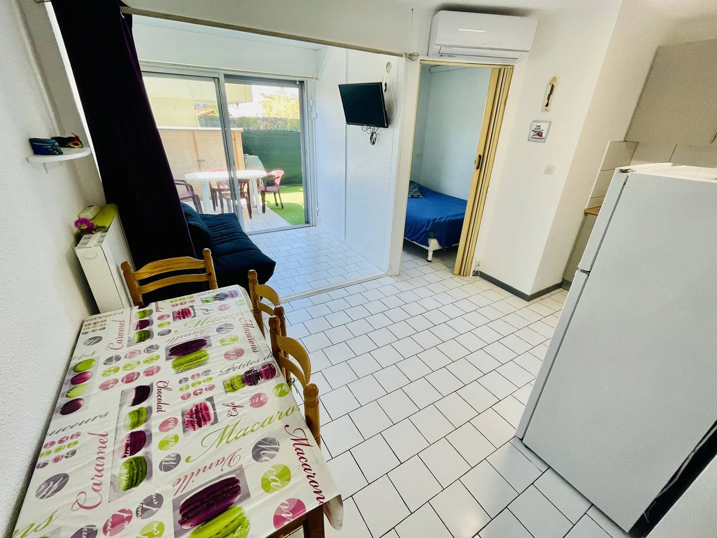 Cet appartement permettant d'accueillir 6 personnes se situe au rez-de-chaussée de la résidence sécurisée Port Gabriel, proche du centre port et de la plage, accessibles à pied en quelques minutes. Il se compose d’un salon séjour avec climatisation (canapé lit 140*190, téléviseur), d’une cuisine entièrement équipée (réfrigérateur, four, micro-ondes, plaques électriques, cafetière (senseo) , bouilloire), d’une chambre avec deux lits superposés 140*190 permettant d’accueillir 4 couchages supplémentaires, d’une salle d’eau et d’un wc indépendant. Le tout donne sur une terrasse fermée équipée d’un salon de jardin permettant de prendre les repas à l’extérieur en toute tranquillité. A proximité de la plage et des commerces, dans une résidence calme, cette location est parfaite pour un couple avec enfants. Il y a une place de parking privée à l'intérieur de la résidence. Cap d'Agde