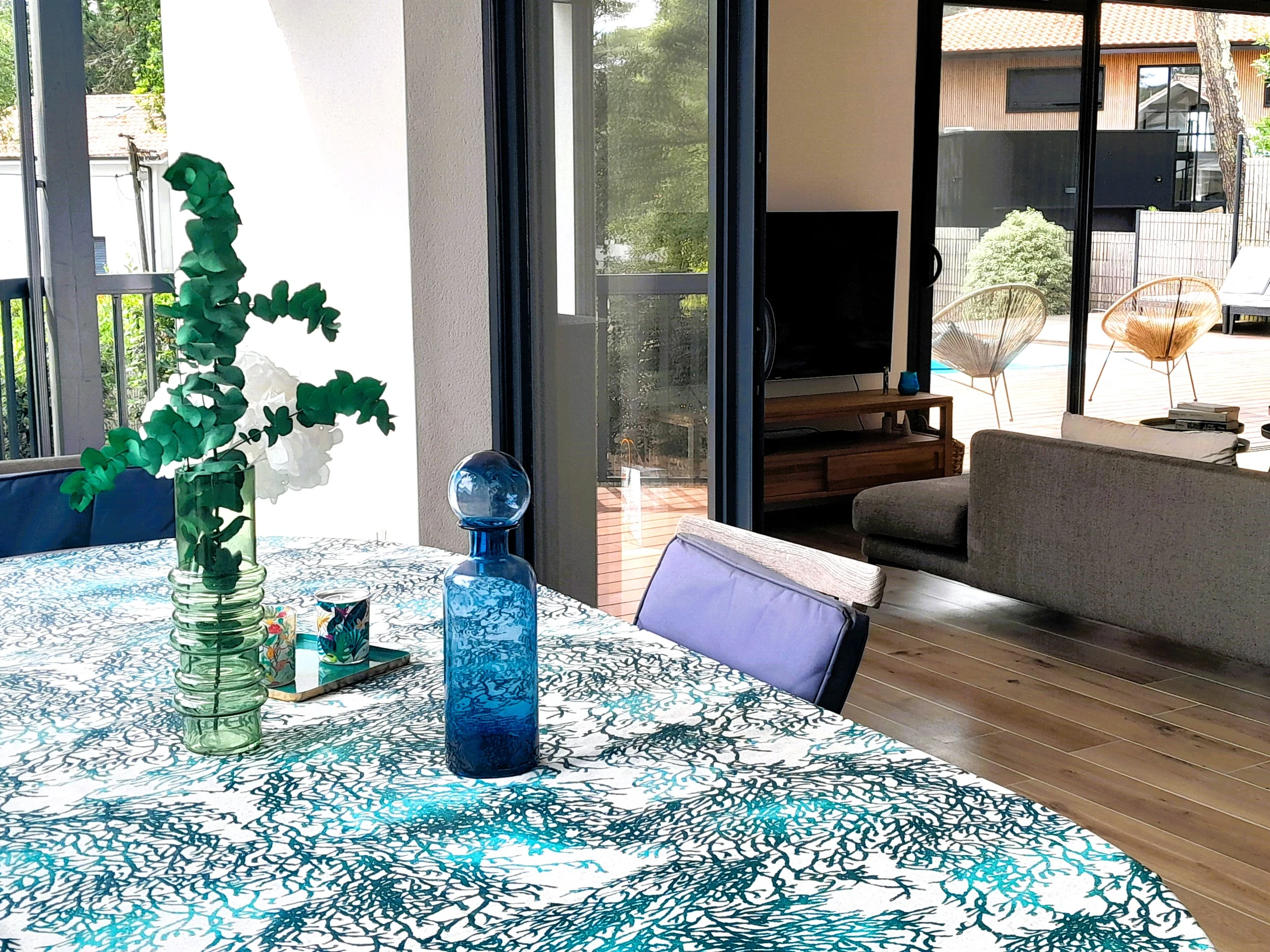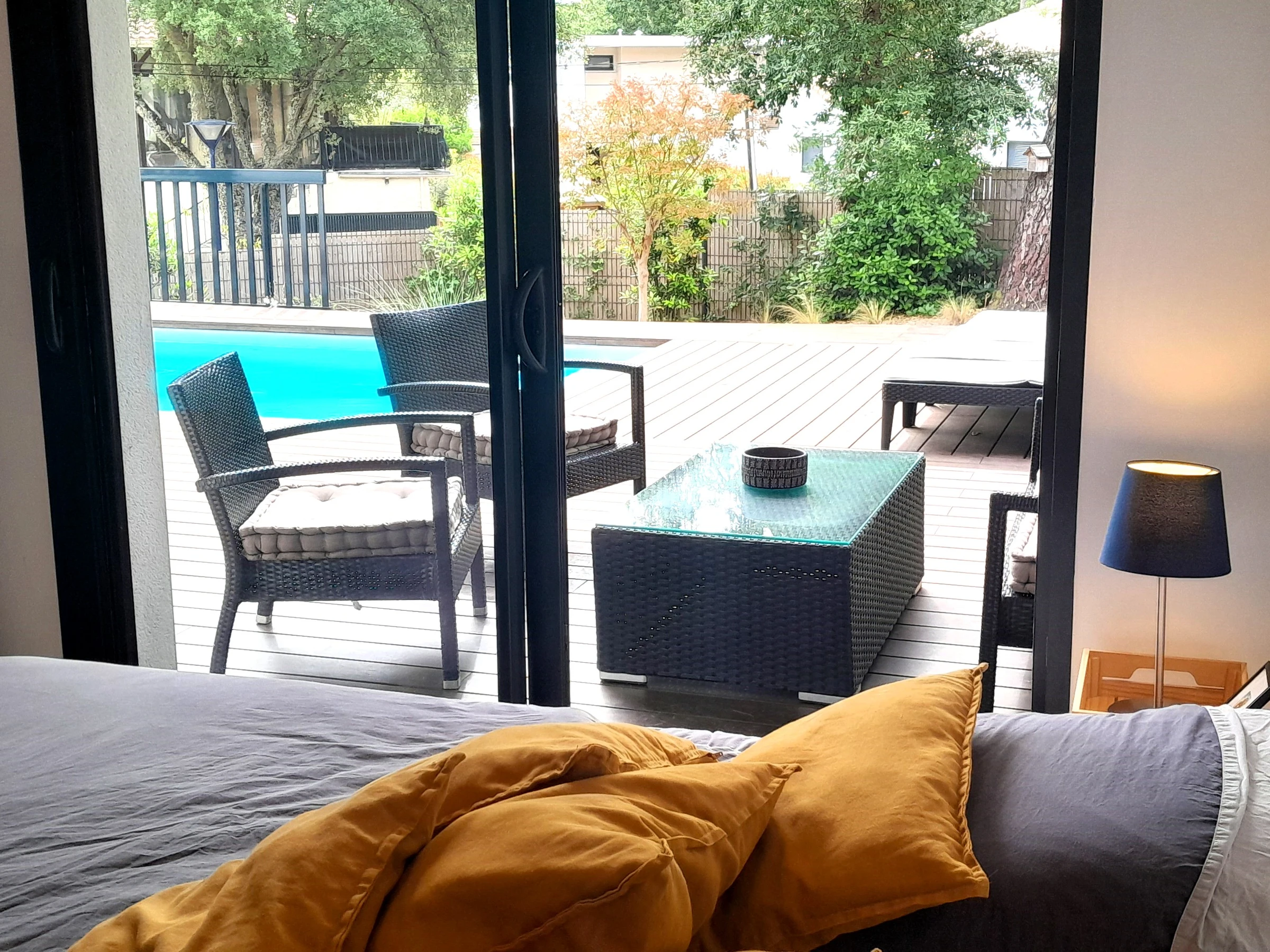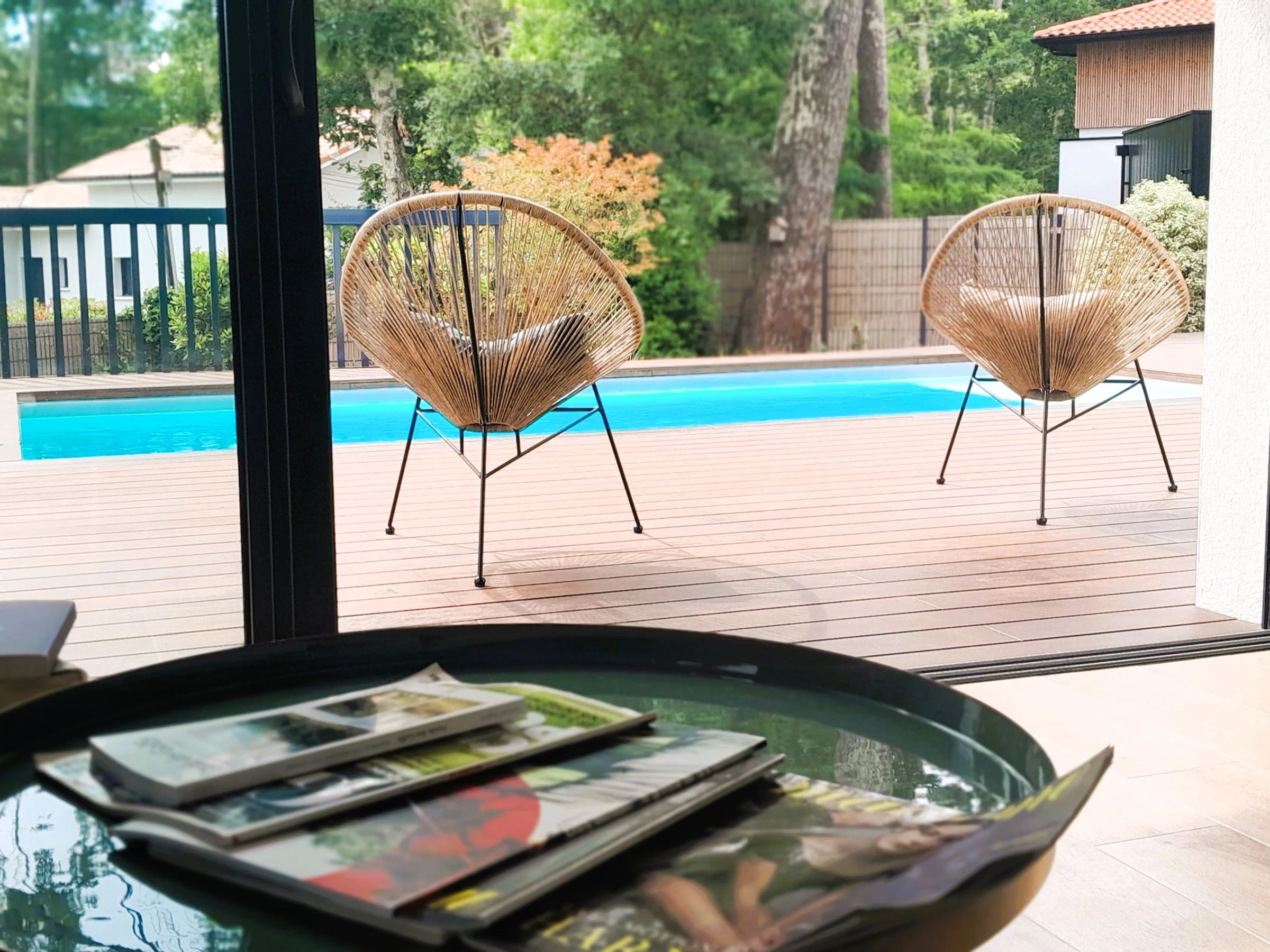 Située dans un quartier calme, à 5mn des plages et du port de Capbreton, elle est idéale pour se ressourcer et passer des vacances inoubliables. Vous pourrez profiter d'une grande cuisine toute équipée ouverte sur le salon avec accès direct à la piscine. Ainsi qu'une terrasse couverte pour prendre vos repas. La partie nuit est composée de 4 chambres au total. Au rez-de-chaussée vous trouverez 2 chambres avec salle d'eau commune. A l'étage on trouvera 2 chambres supplémentaires avec salles d'eau privatives. Tous les lits sont en 160. A l'extérieur une grande terrasse parfait pour prendre l'apéritif au bord de la piscine. Vous aurez l'embarras du choix entre vous rafraichir dans la piscine, des parties de pétanque, ou encore une petite sieste sur un transat. Le plus la piscine de 7m / 3m et un accès Wifi à disposition. Vous ne pouvez qu'être séduits par la qualité d'aménagement ainsi que les équipements qu'offre cette villa. Le ménage fin de séjour ainsi que les draps de lits et serviettes de toilette sont inclus dans le prix de la location. A régler avant votre arrivée : taxe de séjour et caution par carte bancaire uniquement