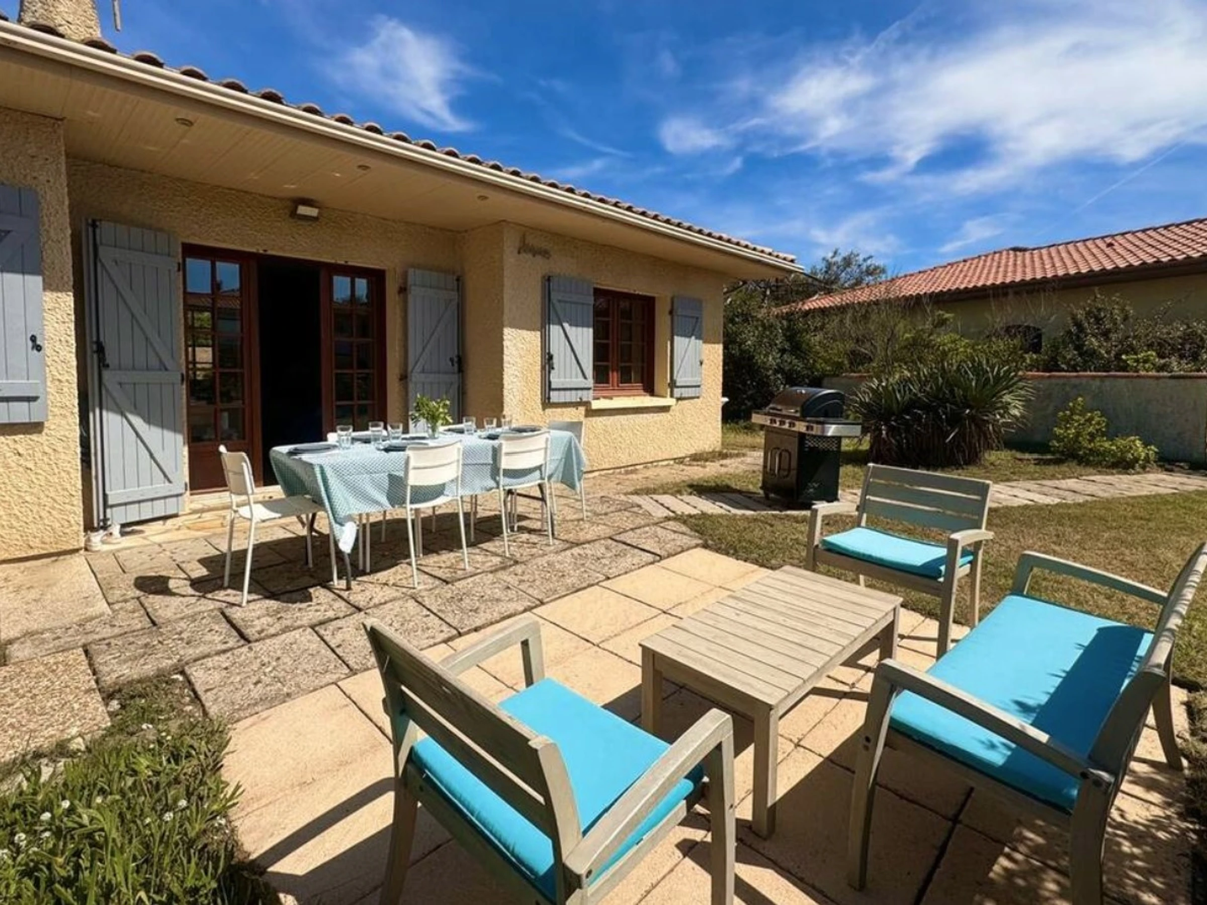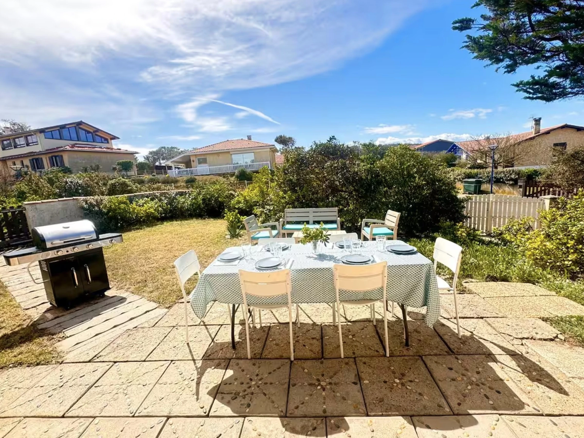 Située dans un quartier calme, cette maison pouvant accueillir jusqu'à 6 personnes se situe à quelques pas du front de mer. La maison dispose d'un salon séjour avec une cuisine indépendante, la cuisine est entièrement équipée, avec une cafetière Nespresso et une cafetière filtre pour satisfaire tous les amateurs de café. La partie nuit se compose de deux chambres : une première chambre avec un lit double en 140, et une seconde chambre avec deux lits superposés en 140x190. Une salle de bain équipée d’une baignoire et d’une machine à laver complètera l'ensemble. À l’extérieur, vous pourrez profiter d’une grande terrasse donnant sur un jardin privatif, avec salon de jardin et barbecue pour vos repas en plein air ou vos soirées d’été. Le quartier est calme. Les commerces ainsi que le centre-ville sont accessibles à pied ou en vélo. A 20 min de Bayonne, 30 min de Biarritz et 40 min de l’Espagne. Vous ne pourrez qu'être séduit par les prestations qu'offrent cette maison, sa localisation idéale pour des vacances en famille ou entre amis. Le ménage de fin de séjour est inclus dans le prix de la réservation. Accès Wifi payant. A régler avant votre arrivée : taxe de séjour et caution logement par carte bancaire. Services en option à prévoir avant l'arrivée :