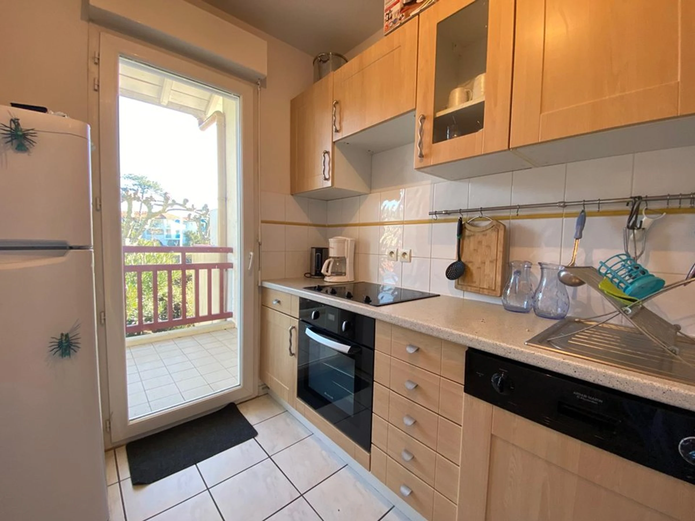 - une cuisine tout équipée avec frigo, congélateur, four, plaques, cafetière à filtre