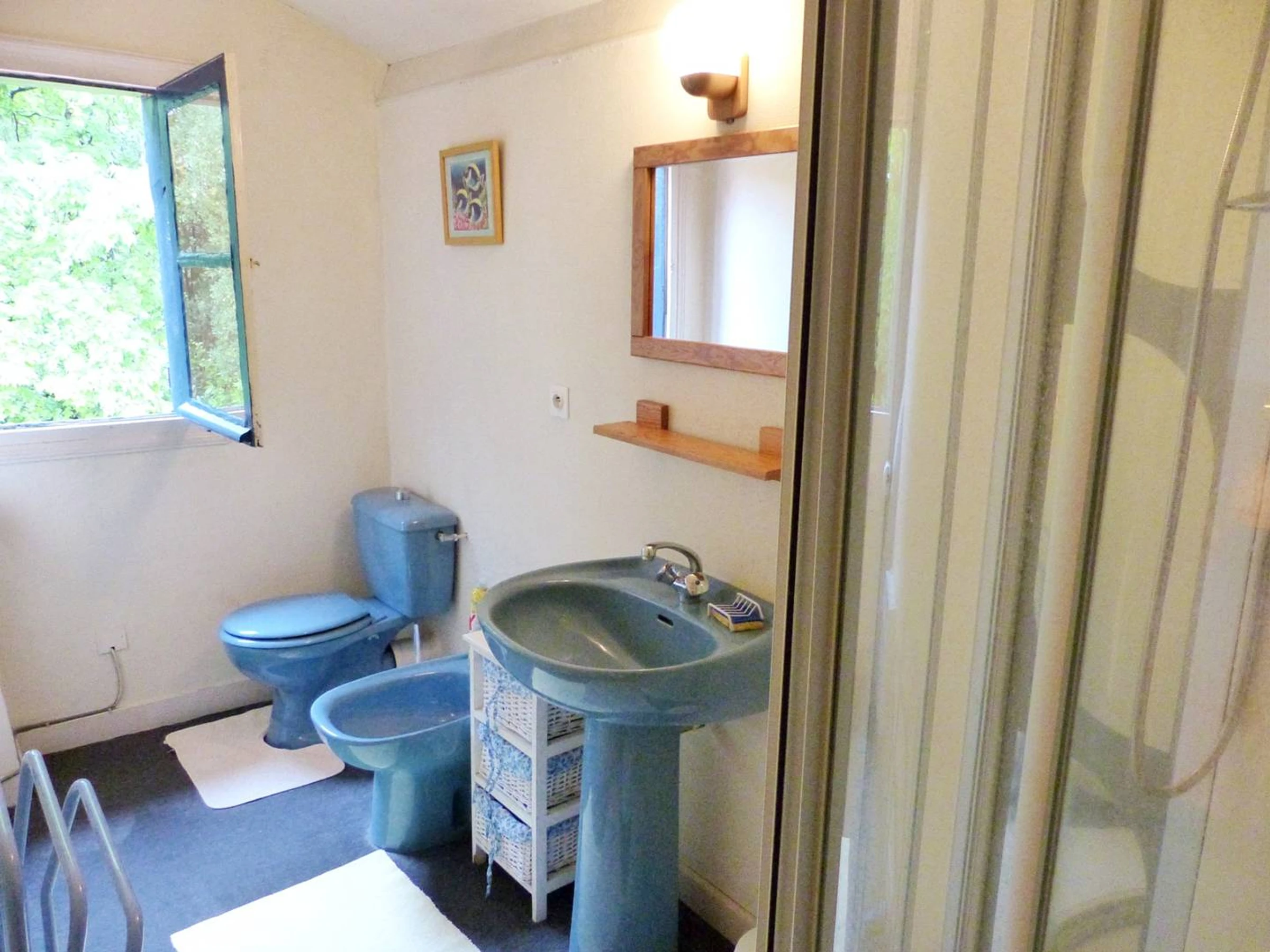 Chambre 4 sur l'arrière (3.40x4) (1 lit en 140) avec sa salle de douche (1.4x3.3): douche, lavabo et WC. Lit parapluie.