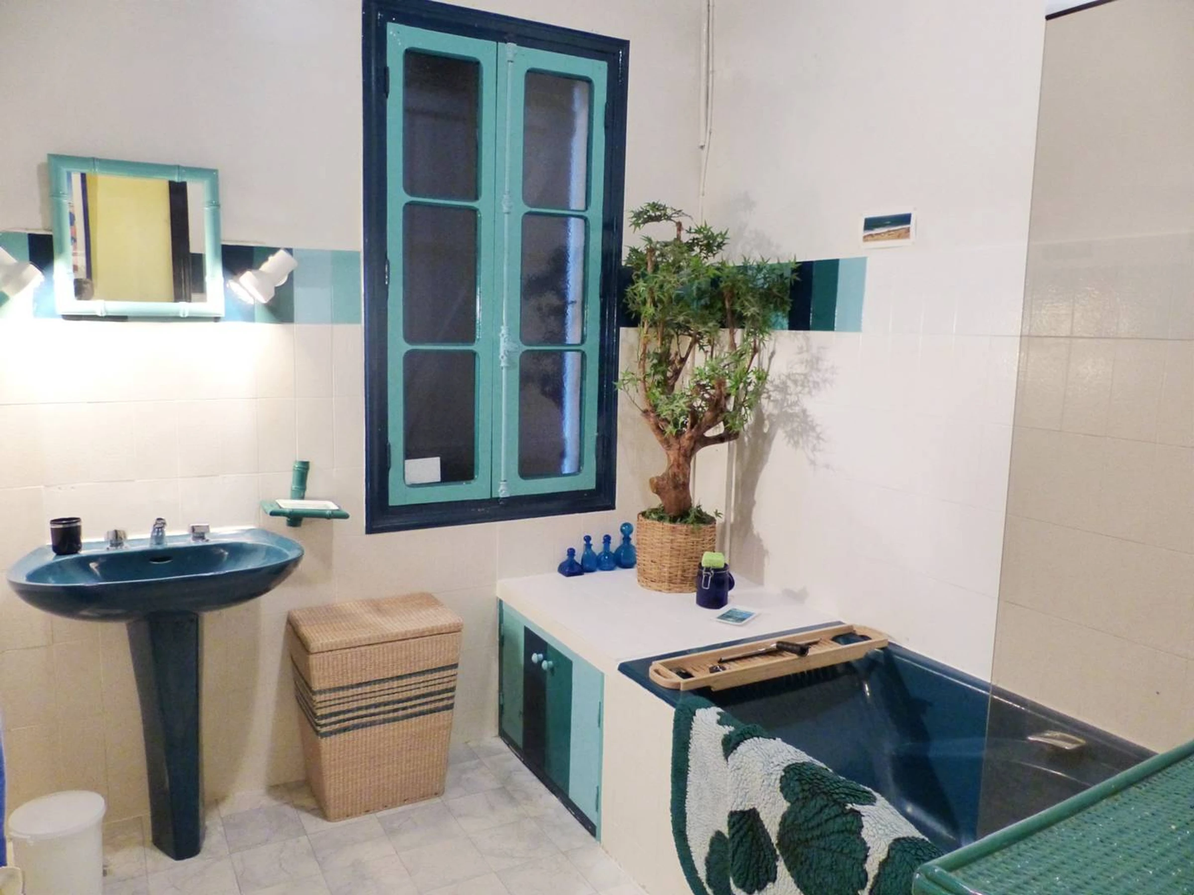 Salle de bains (2.30x2.70): baignoire-douche et lavabo.