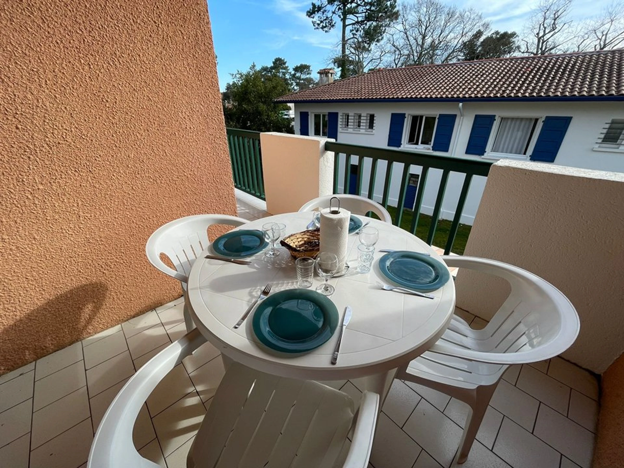 - Une 1ère terrasse avec un accès séjour équipée d'une plancha & d'un salon de jardin exposée Sud/Ouest