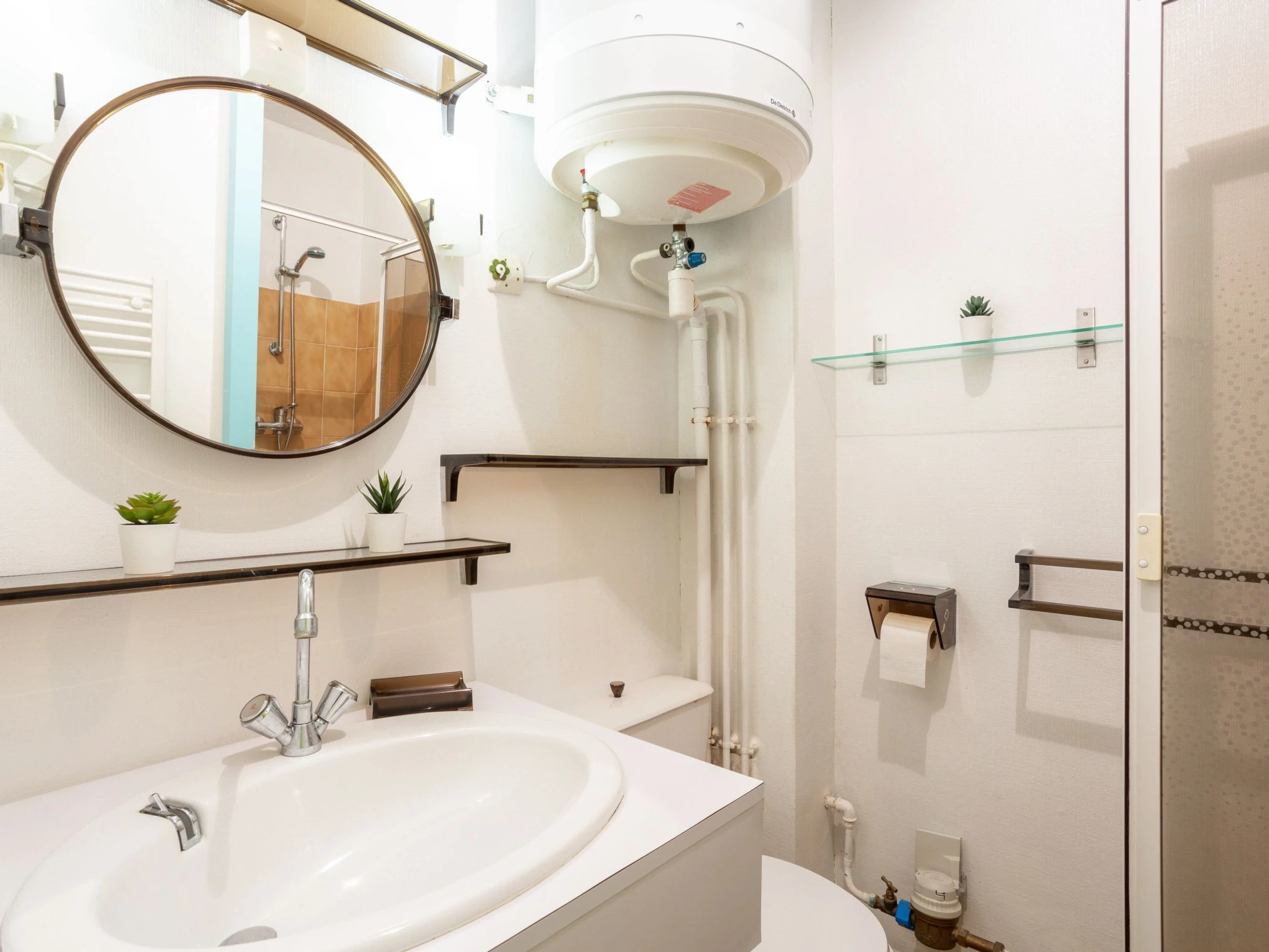 Studio 20 m2, au rez-de-chaussée. Aménagement fonctionnel: séjour/salle à manger avec 1 divan-lit (140 cm, longueur 190 cm), TV (écran plat). Sortie sur la terrasse. Entrée avec 1 lit (80 cm, longueur 190 cm). Coin cuisine (2 plaques de cuisson, four, grille-pain, bouilloire électrique, four micro-ondes, cafetière électrique). Douche/WC. Chauffage électrique. Terrasse 15 m2, couverte, situation est. Meubles de terrasse. A disposition: fer à repasser. Internet (Connexion WIFI, en sus). Veuillez noter: logement non-fumeur. Détecteur de fumée. Annonce d'un particulier (art 155, IV du CGI). [hidden]