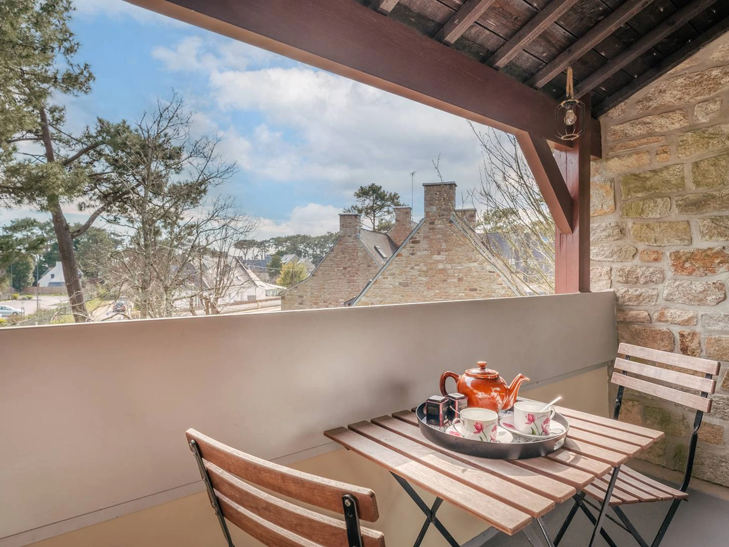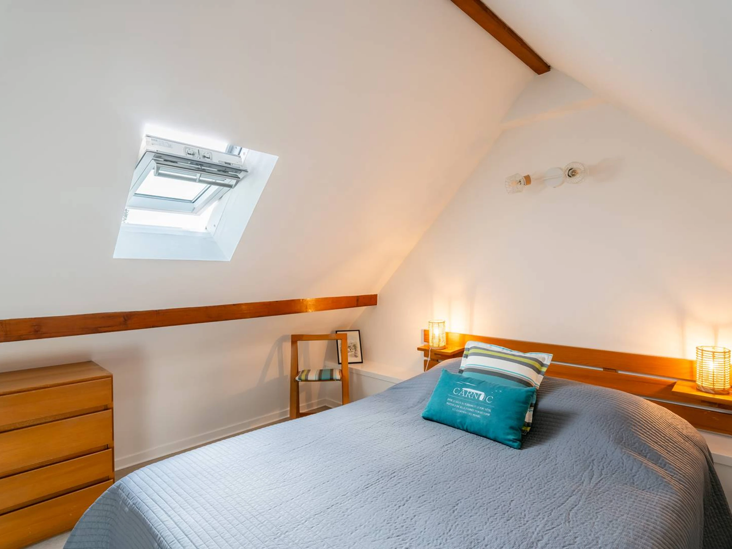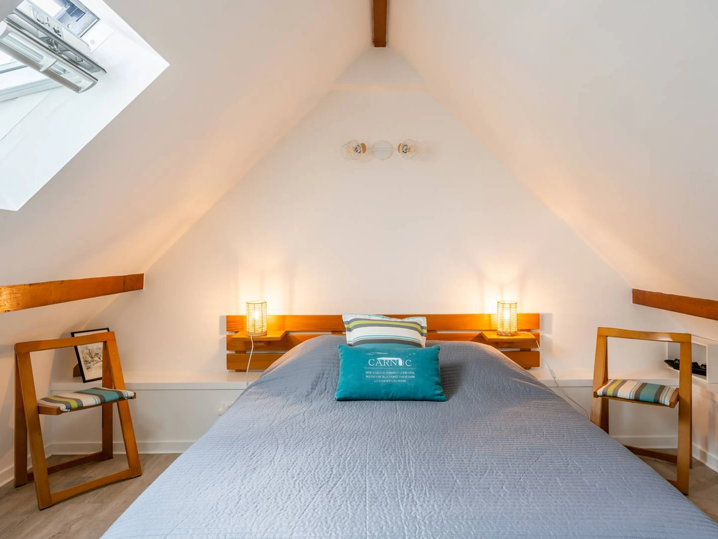 A 300m de la Grande Plage de Carnac, à 50m d'un supermarché, dans un environnement de pins, appartement 3 pièces duplex (env. 39m² au sol et 28m² habitable) pour 5 personnes, avec loggia orientée Sud, situé dans la résidence LES DRUIDES (bâtiment J, 2e étage, porte 54) :