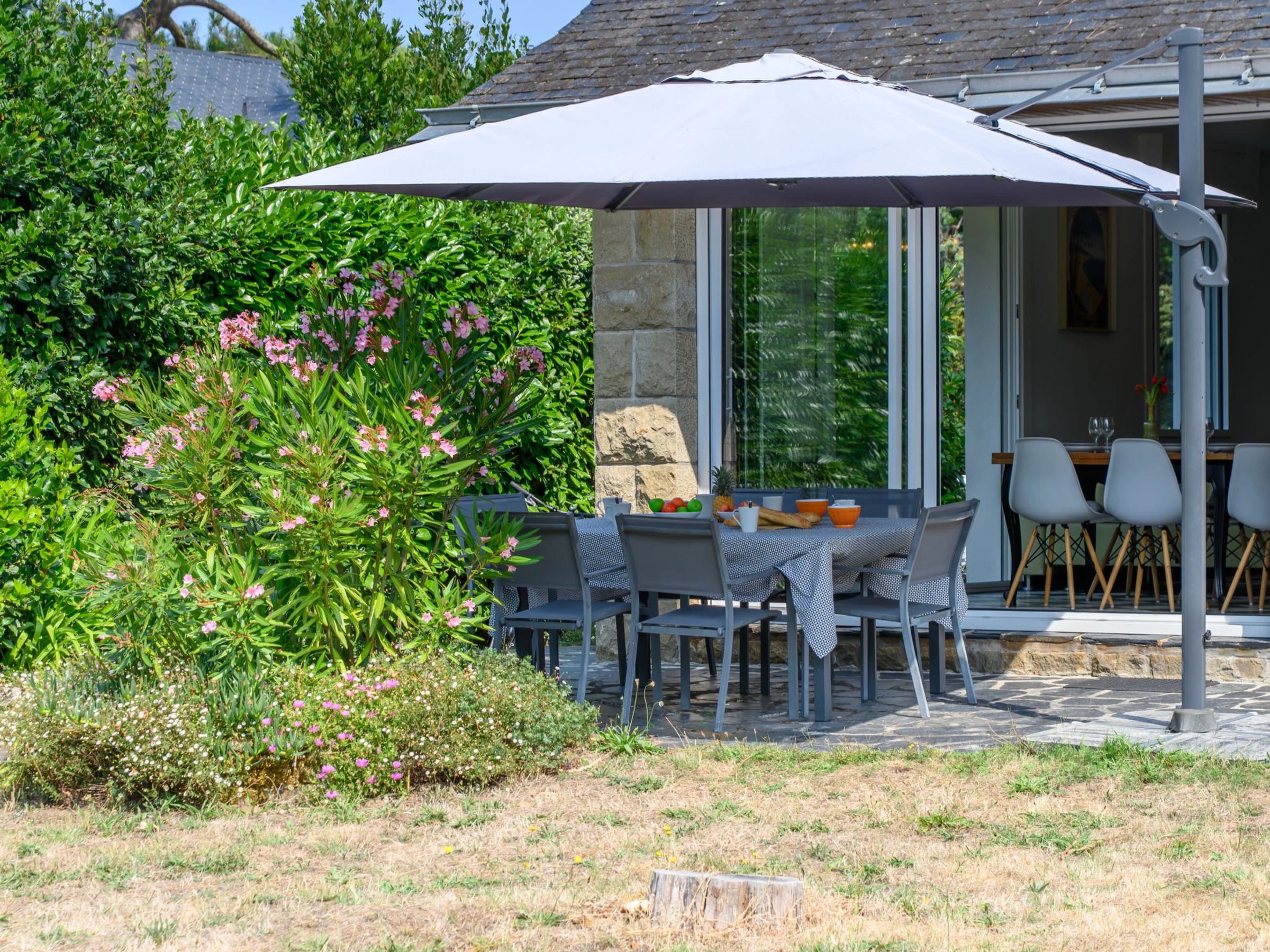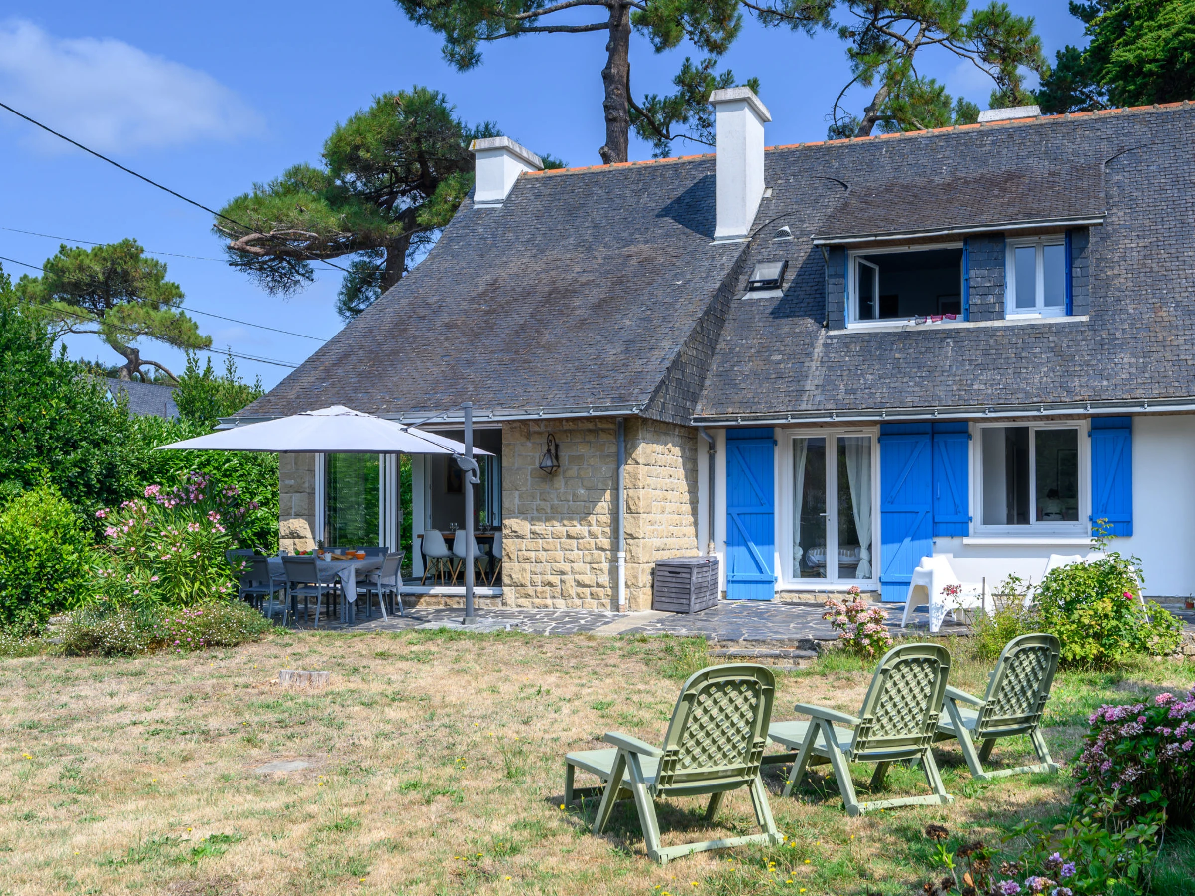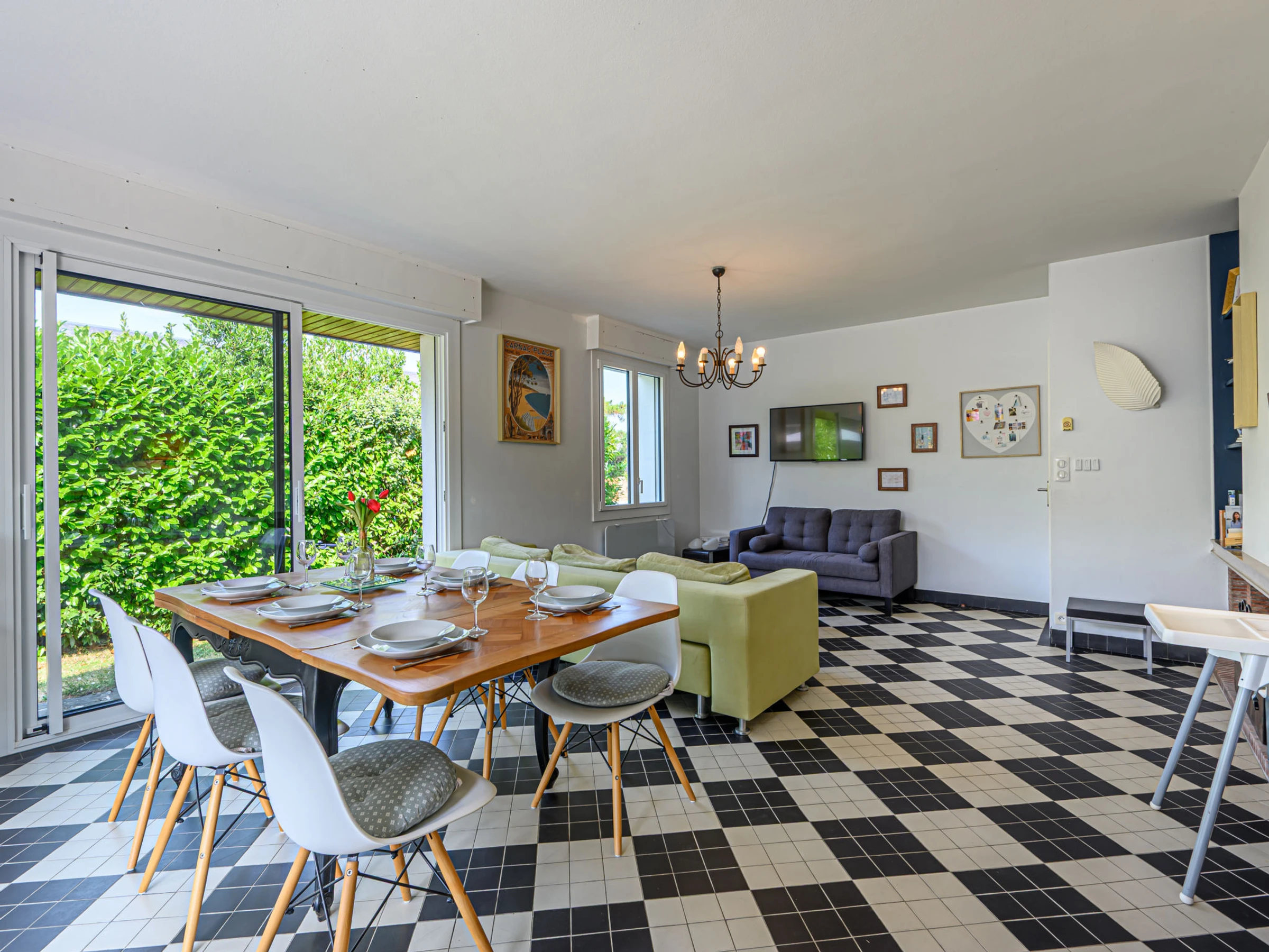 "L'Oasis 1", apt 4 pièces 70 m2, au rez-de-chaussée. Partiellement rénové, aménagement confortable: séjour/salle à manger avec TV (écran plat). Sortie sur la terrasse. 1 chambre avec 1 grand-lit (1 x 160 cm, longueur 200 cm). 1 chambre avec 2 lits (90 cm, longueur 190 cm). 1 chambre avec 1 x 2 lits superposés (90 cm, longueur 190 cm), 1 grand-lit (1 x 140 cm, longueur 190 cm). Cuisine (four, lave-vaisselle, 3 plaques vitrocéramiques, grille-pain, bouilloire électrique, micro-ondes, cafetière électrique). Douche, WC séparé. Sol en pierres naturelles. Terrasse 40 m2, situation sud, grand jardin 800 m2, situation sud. Meubles de terrasse, barbecue. A disposition: lave-linge, sèche-cheveux. Internet (Connexion WIFI, gratuit). Veuillez noter: détecteur de fumée. Annonce d'un particulier (art 155, IV du CGI). [hidden]