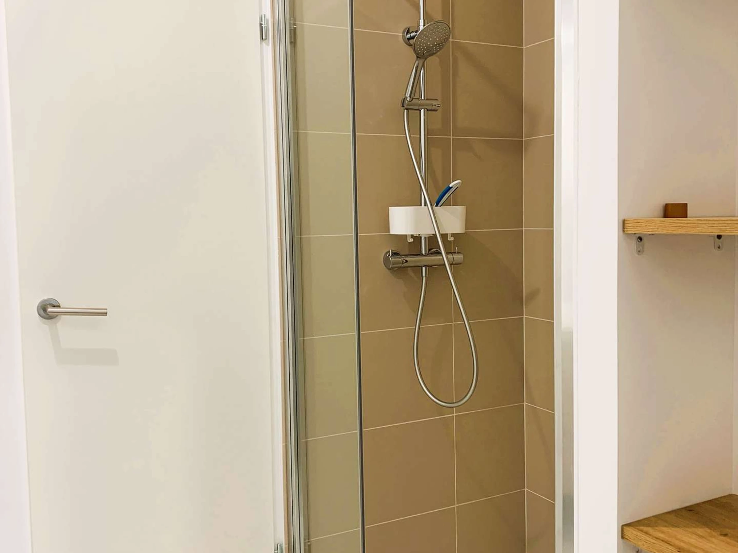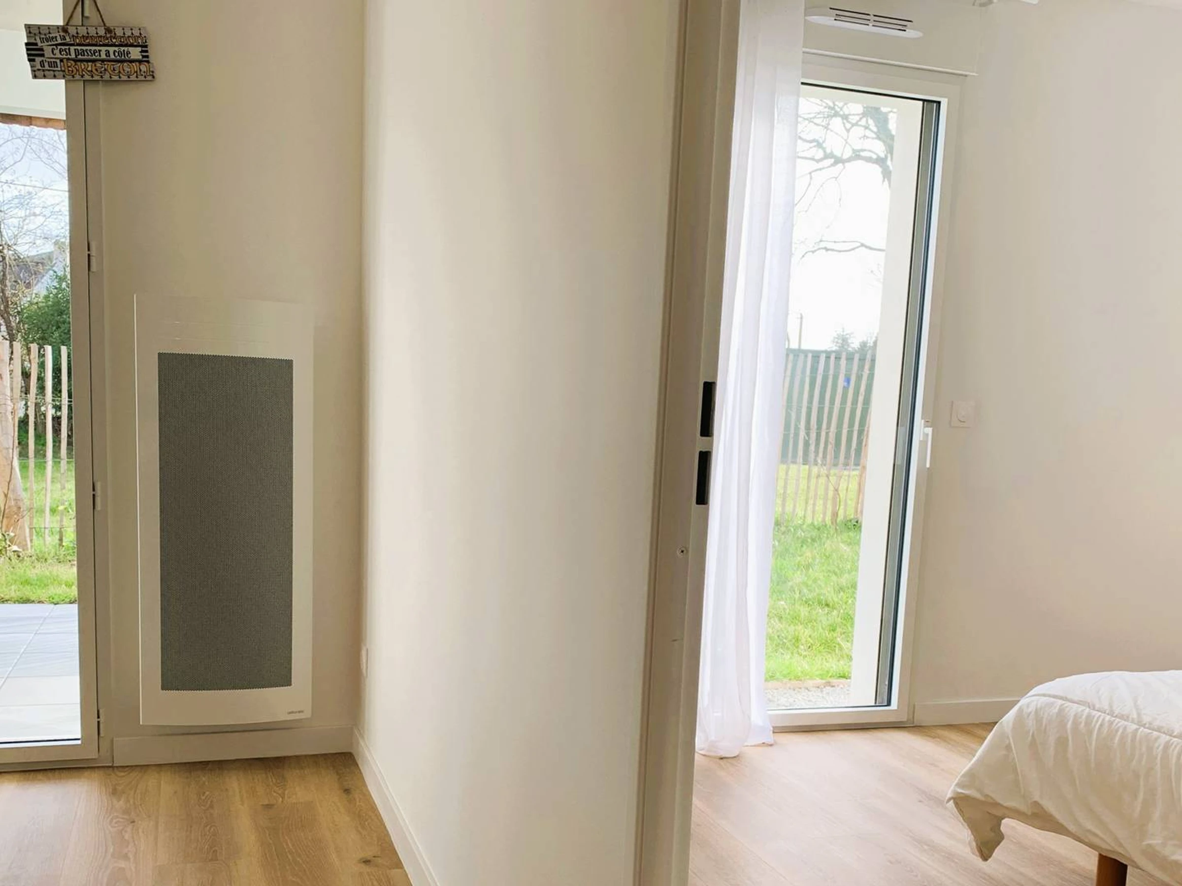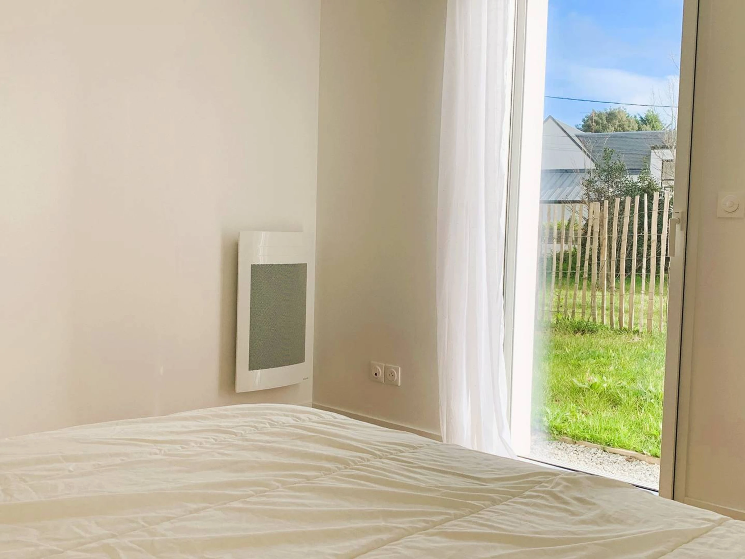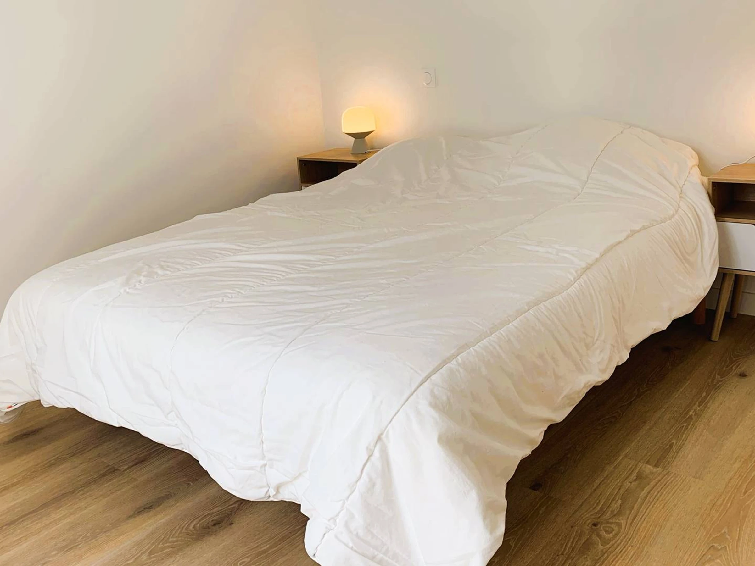 - 1 chambre avec 1 lit double (140, couette) avec accès au jardin