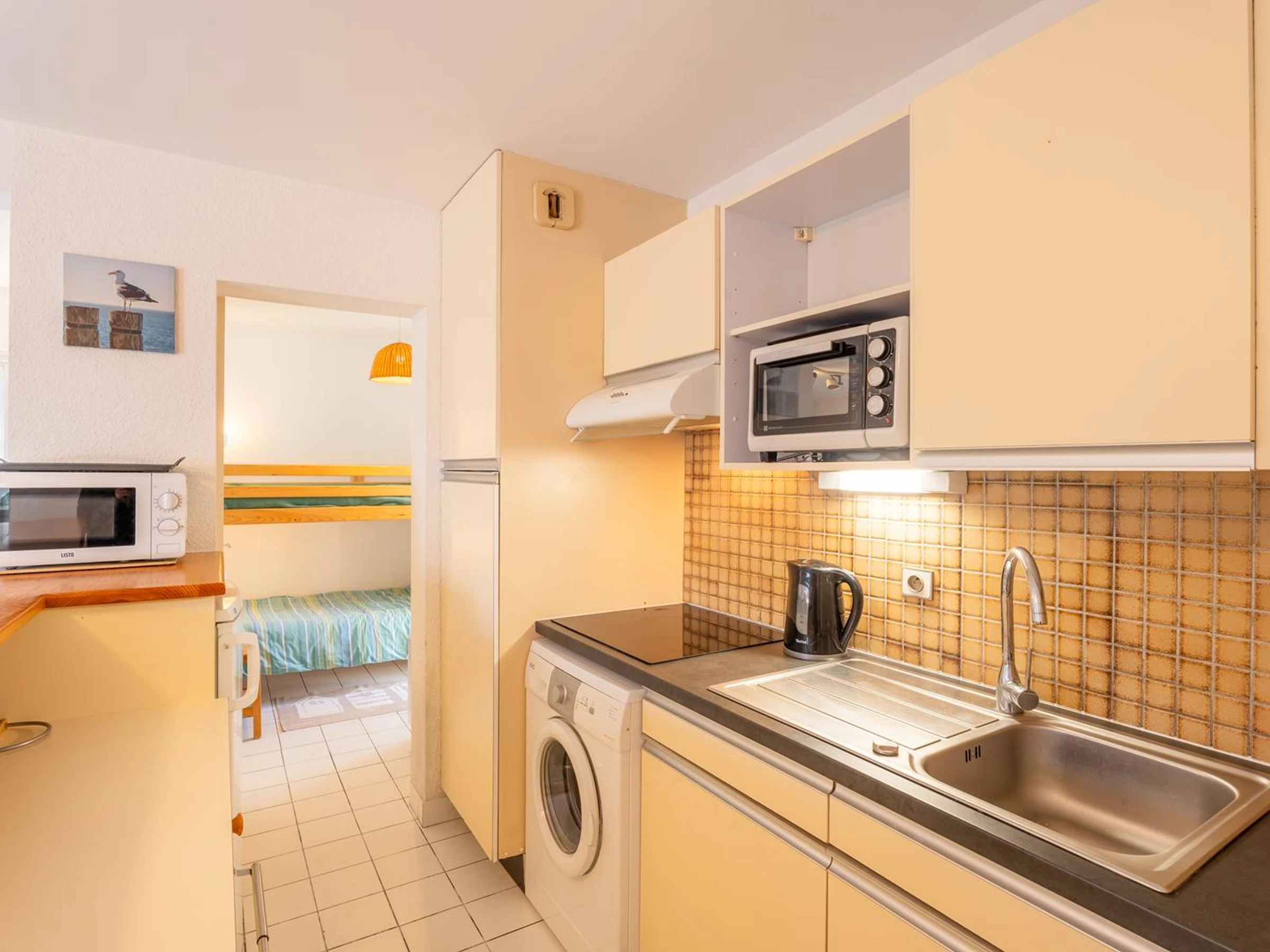 - Coin-cuisine équipé (plaques électriques 4 feux, mini-four, réfrigérateur, lave-linge)