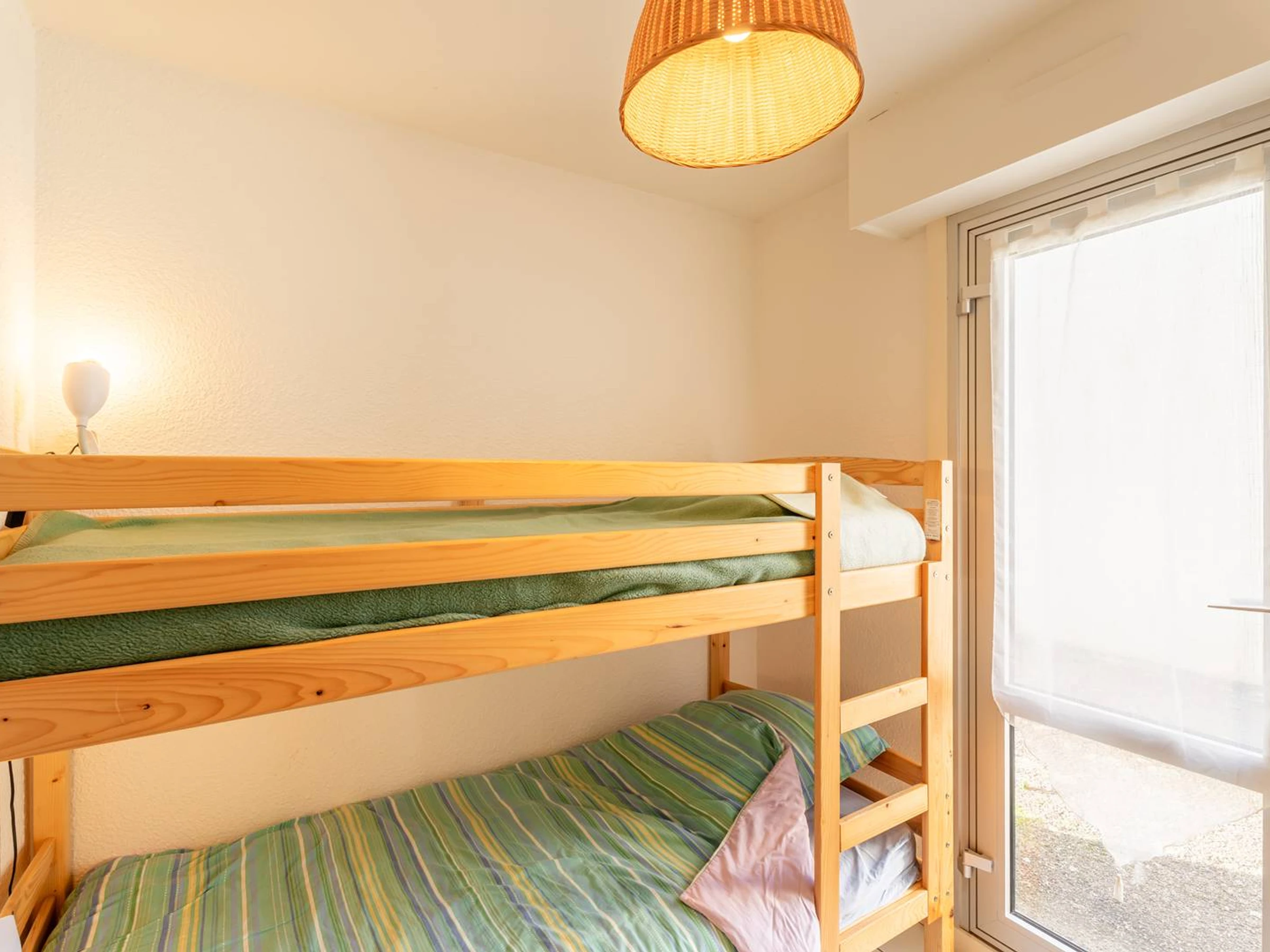 - 1 chambre cabine avec 2 lits individuels superposés (80, couvertures)