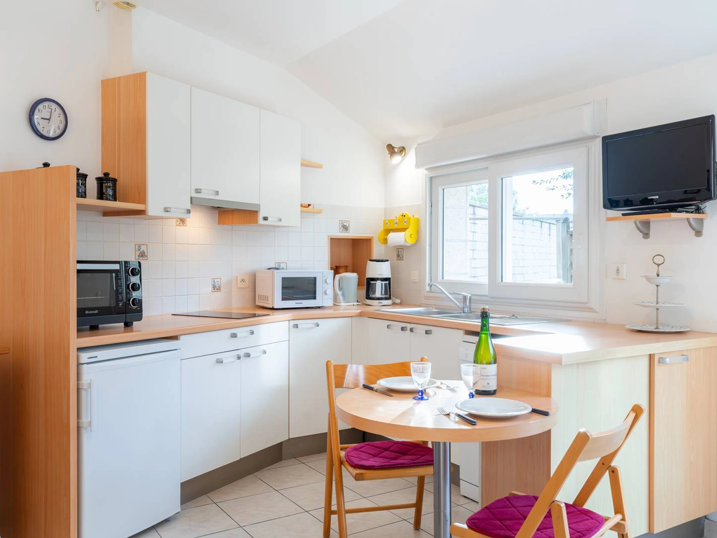 - Coin cuisine ouvert et équipé (plaque vitro 2 feux, four, lave-vaisselle, réfrigérateur, micro ondes)