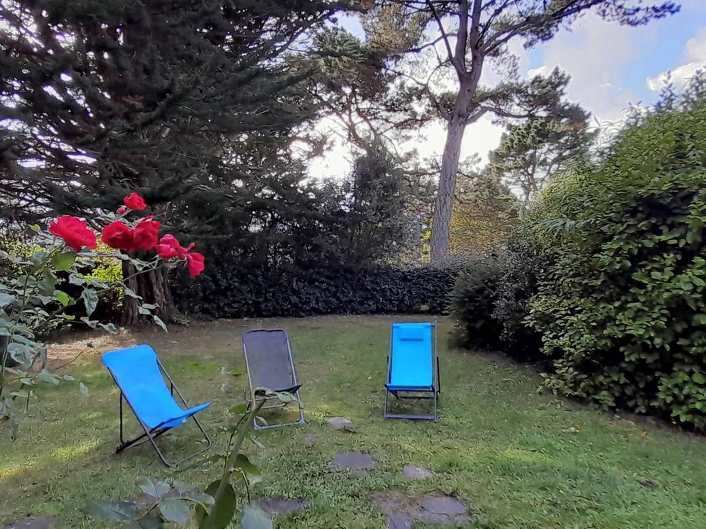 Terrasses et espaces verts délimités par des claustras et des haies. Jardin clos