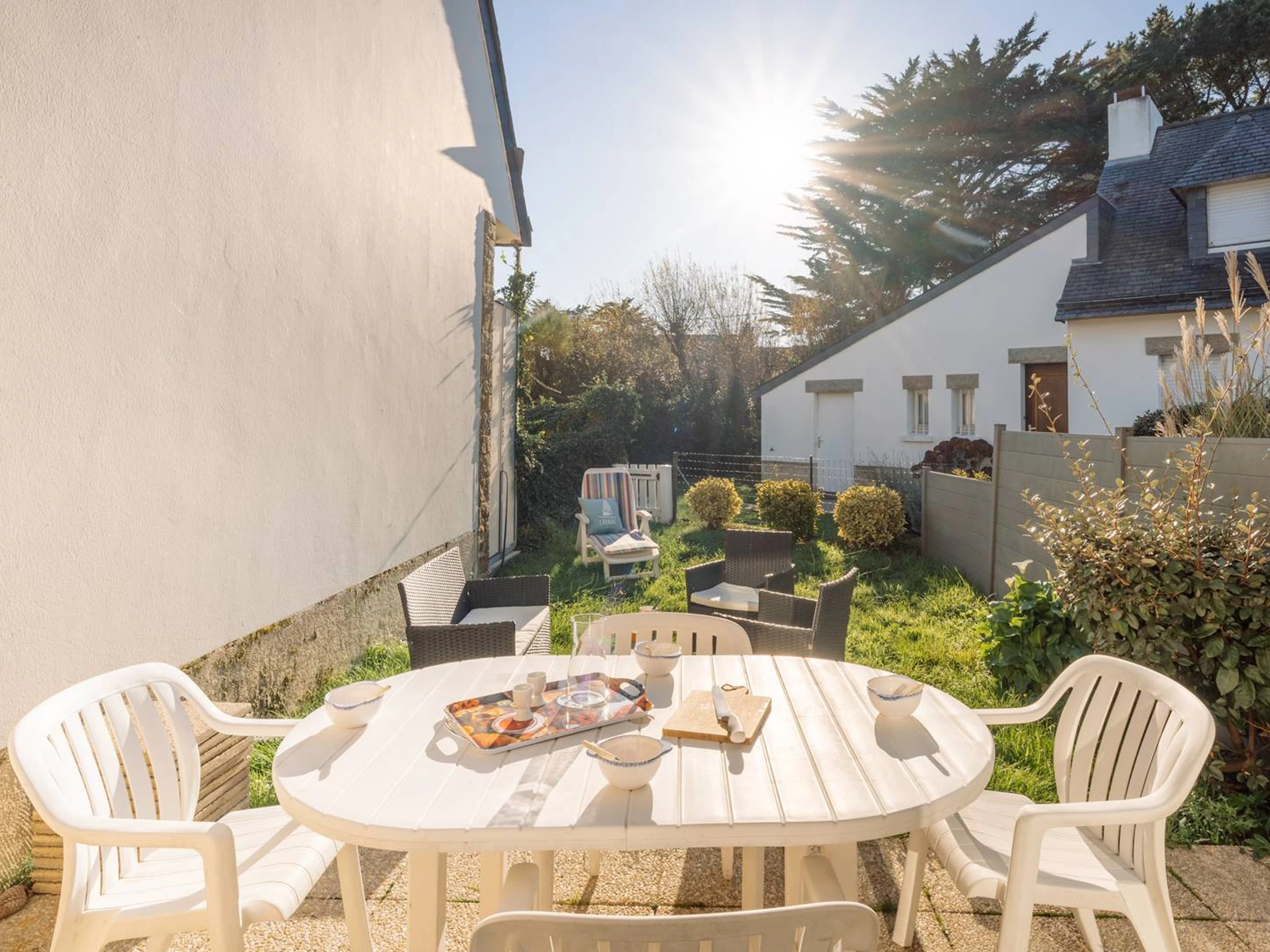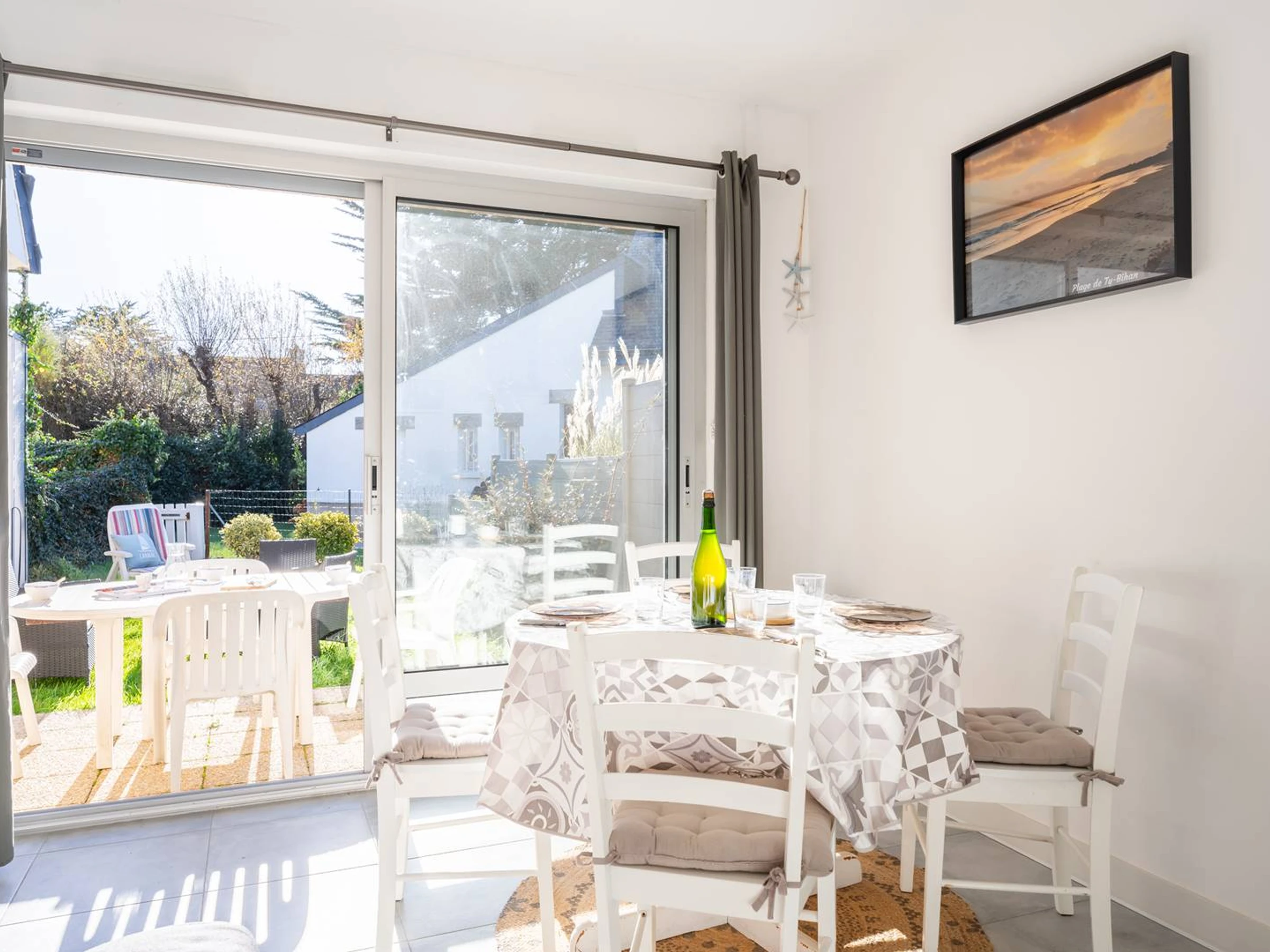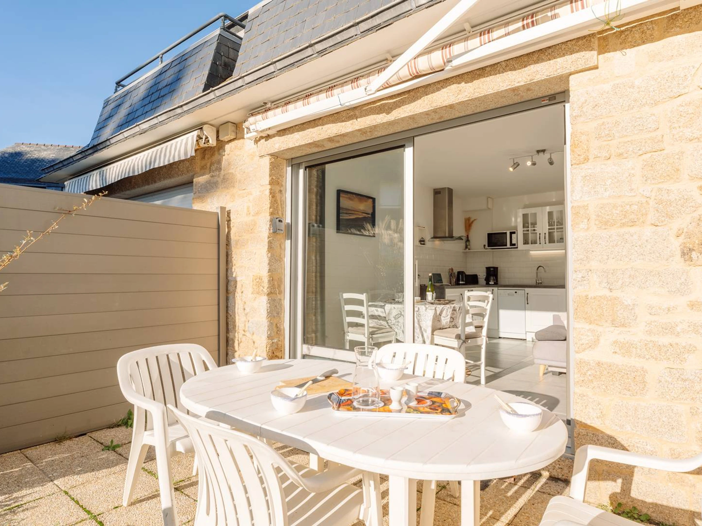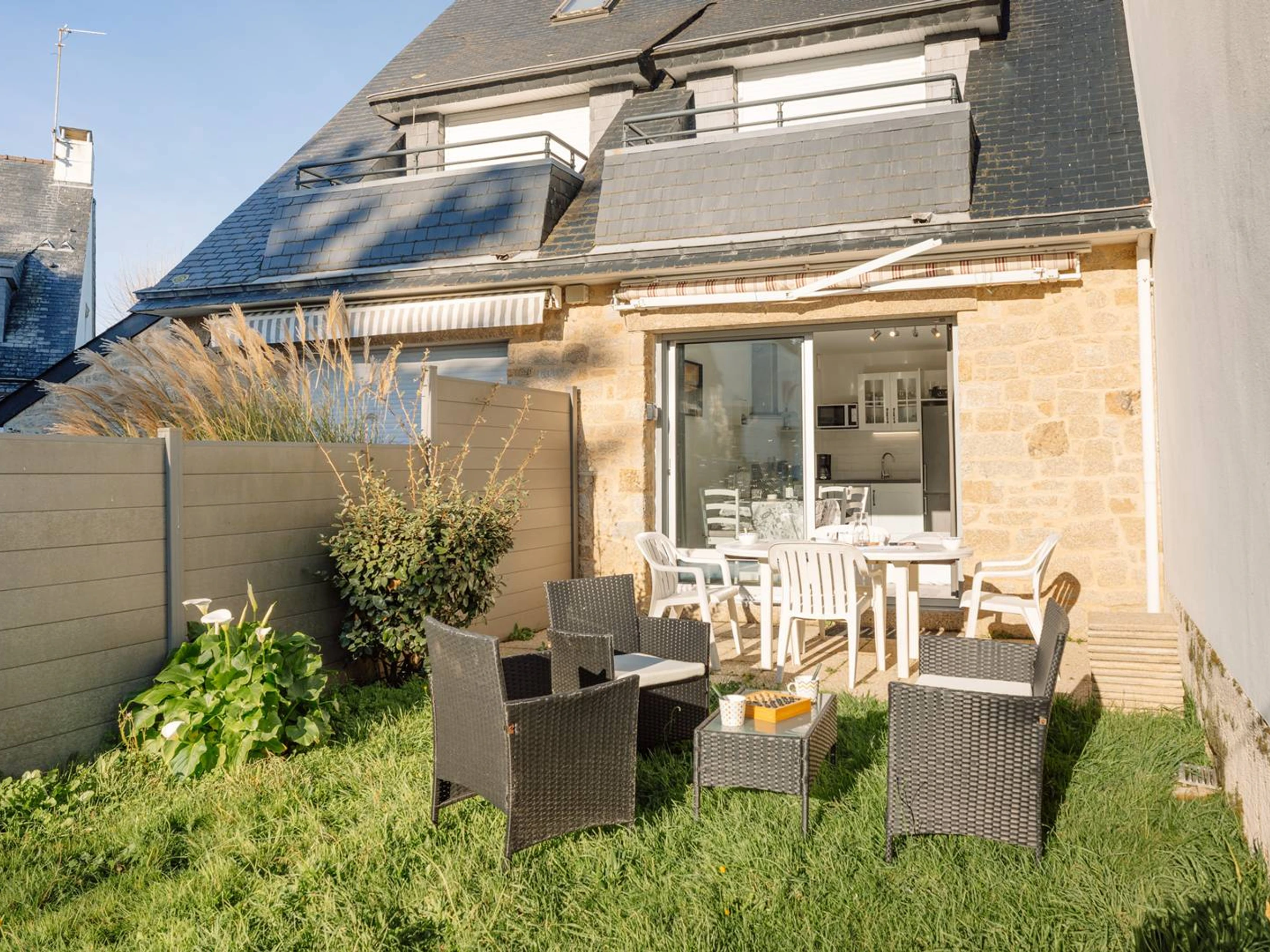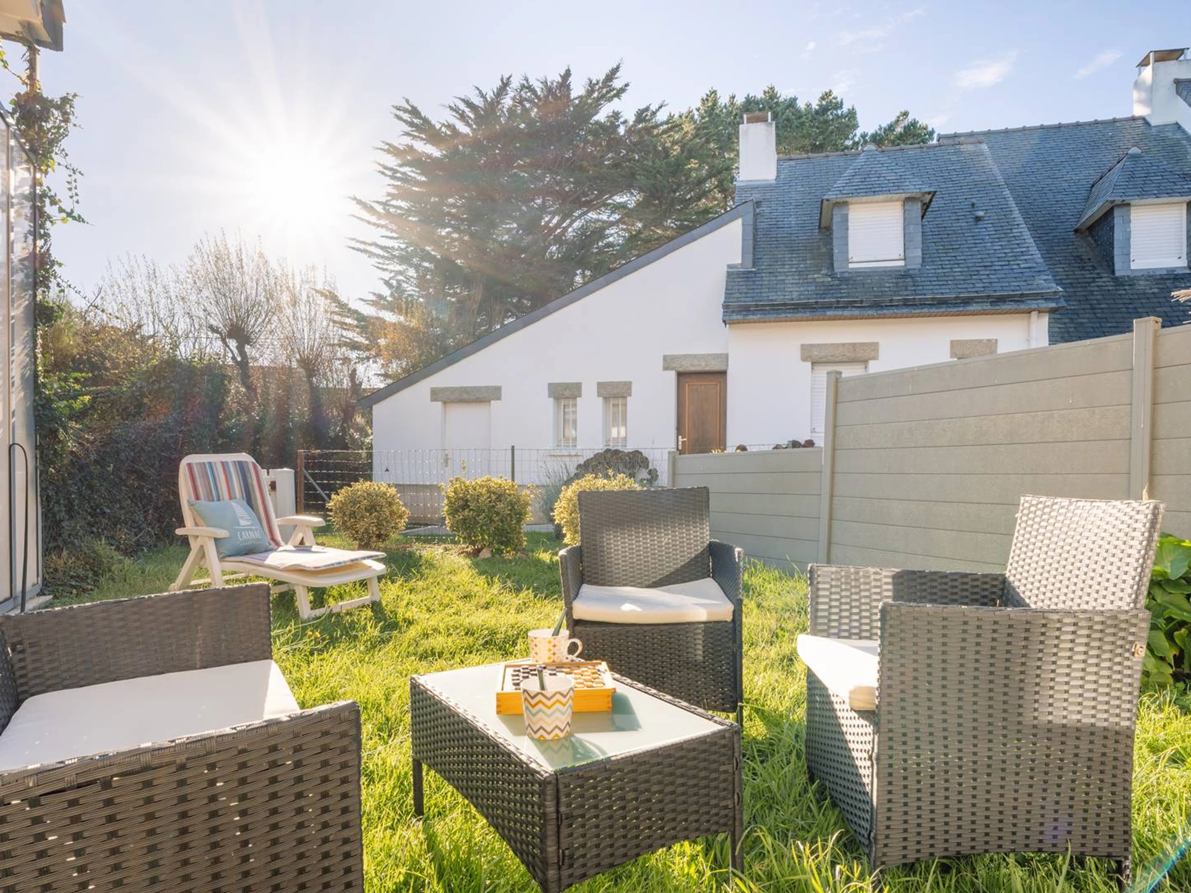 - Séjour avec partie repas (table et chaises) et partie salon (TV, canapé convertible : couchage 2 personnes, 140, couette) donnant sur la terrasse prolongée par un petit jardin privatif clos exposé Sud (meubles de jardin)